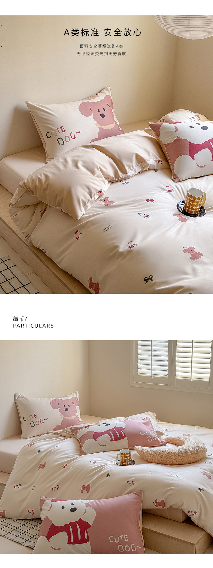 商品名称:Mr.pig猪先生水洗棉 2025新款50贡缎长绒棉数码印花嵌绳四件套 俏皮狗