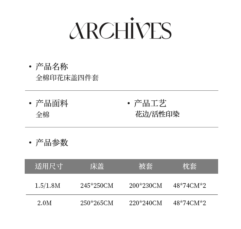 商品名称:美伦美焕 2025新款全棉印花床盖四件套 米馨