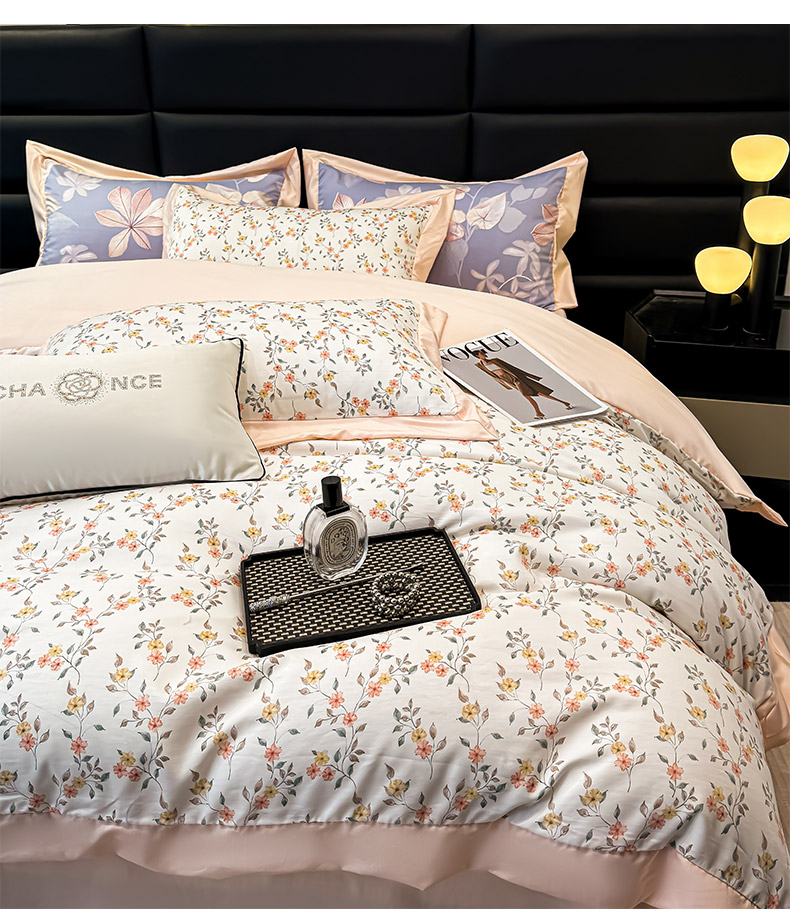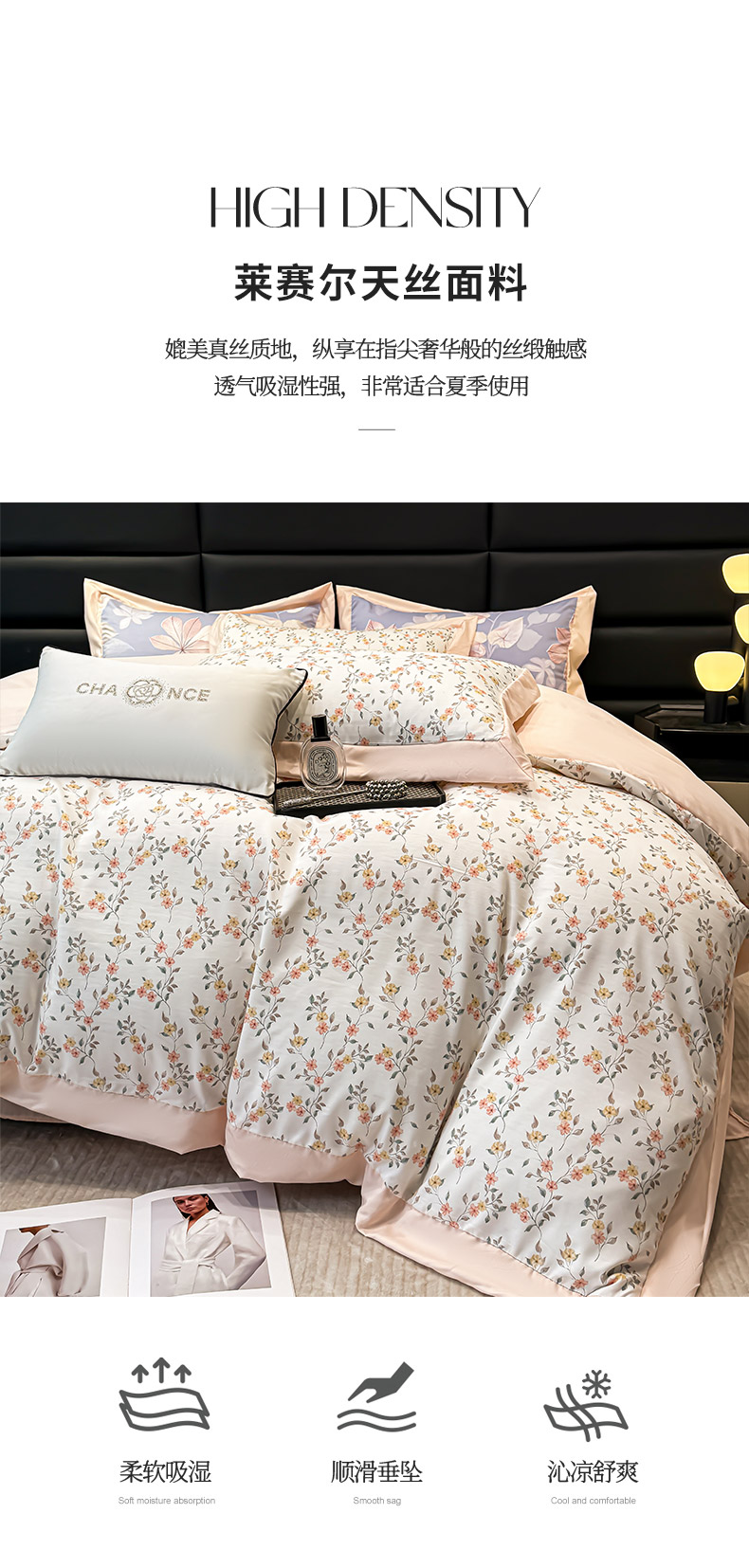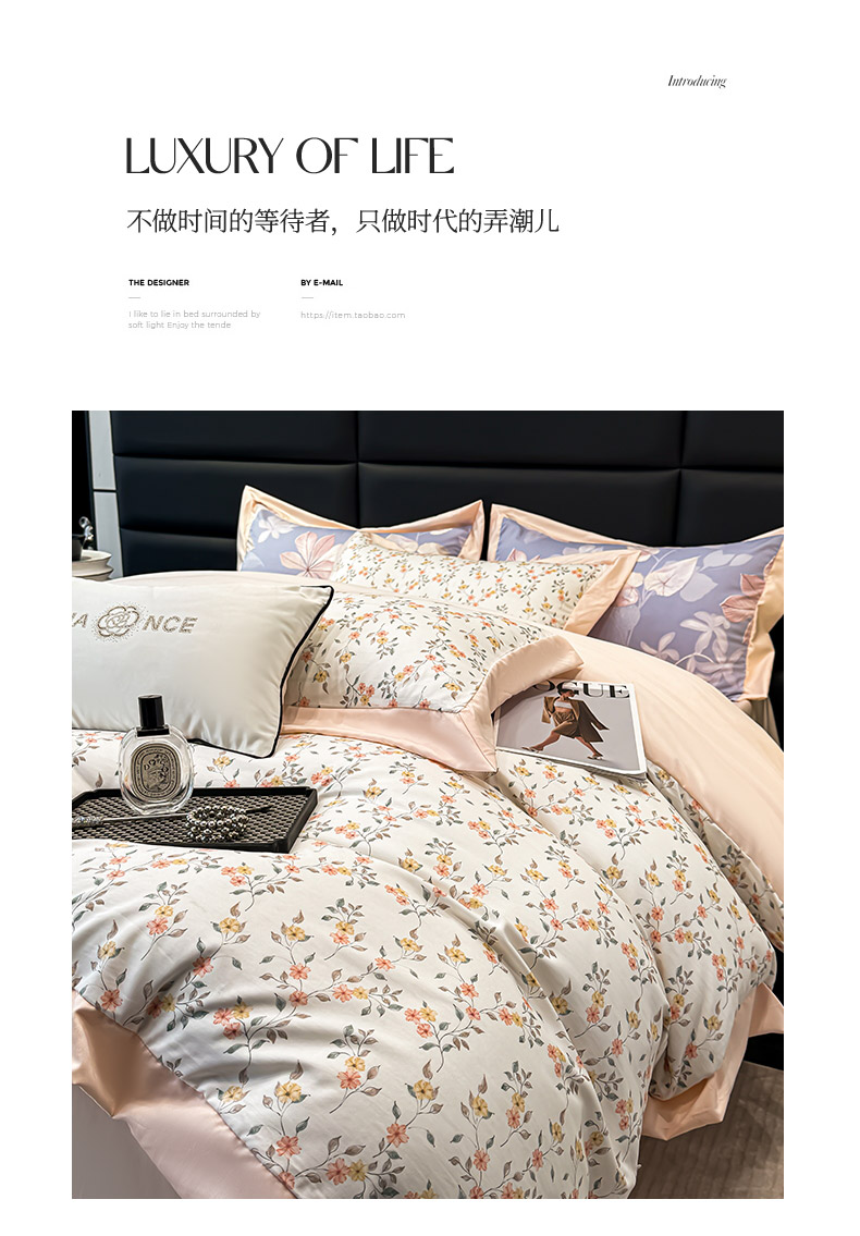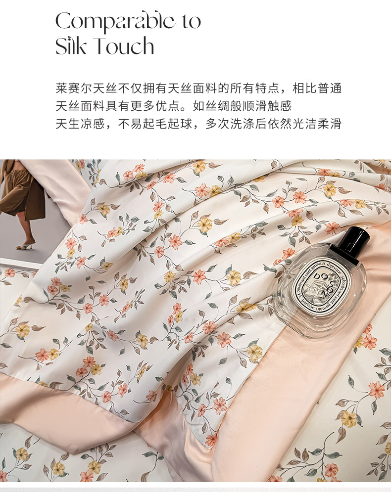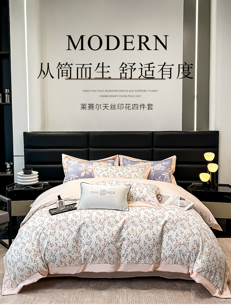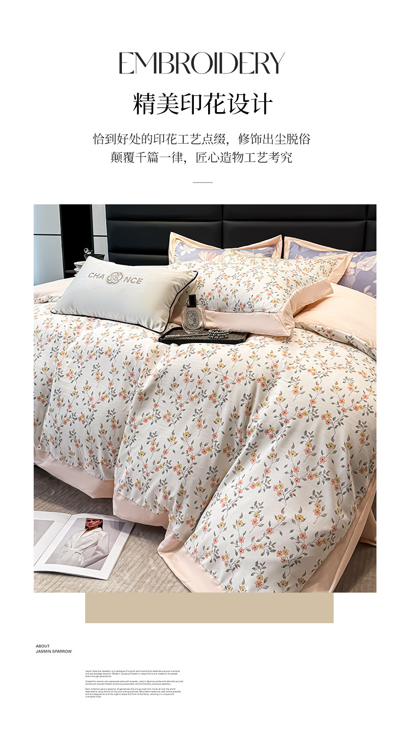 当前位置: 91家纺网 > 商品网购 > 床品套件 > 四件套 > 莱赛尔四件套 > 天一阁 2025春夏新款莱赛尔天丝印花四件套 礼盒装【可配床盖款】 花韵-粉