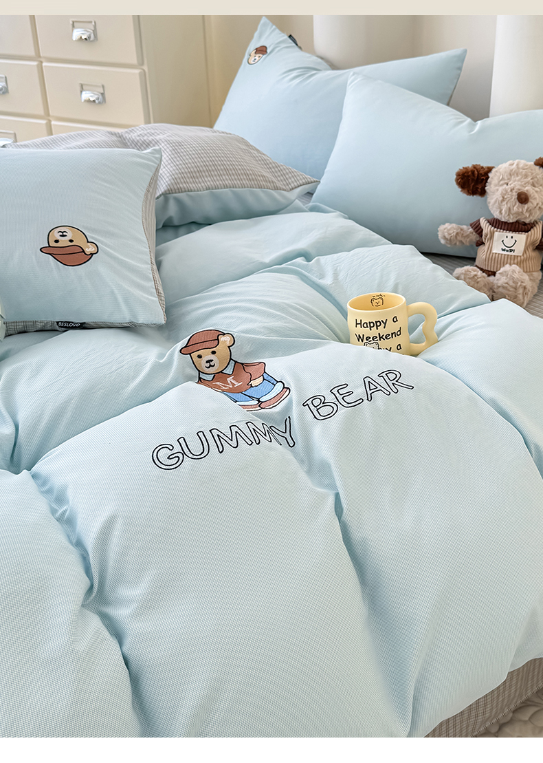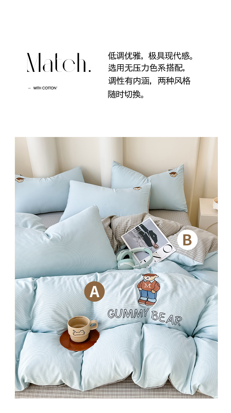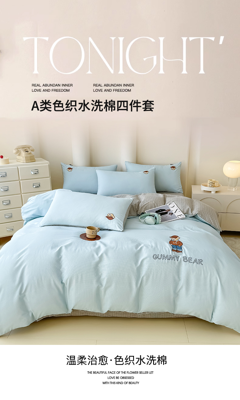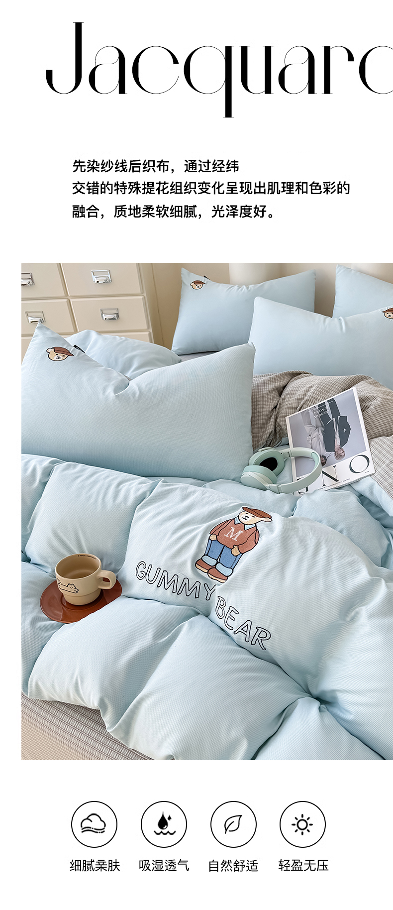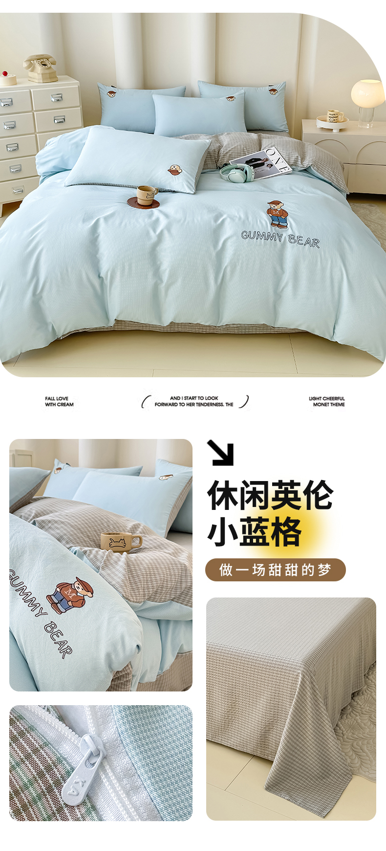 KA家纺 春夏新款A类色织水洗棉四件套 休闲英伦小蓝格