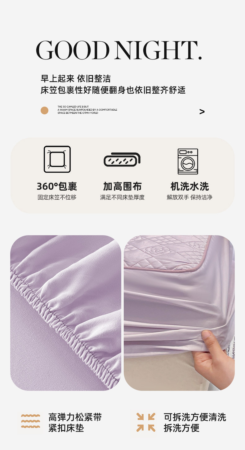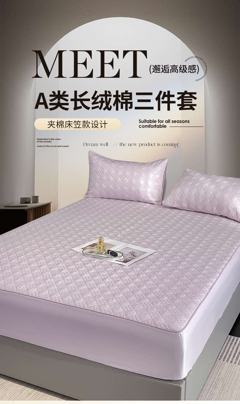 商品名称:2025新款A类母婴级长绒棉夹棉床笠三件套纯棉全棉加厚席梦思床罩床套四季款保护罩 黛紫