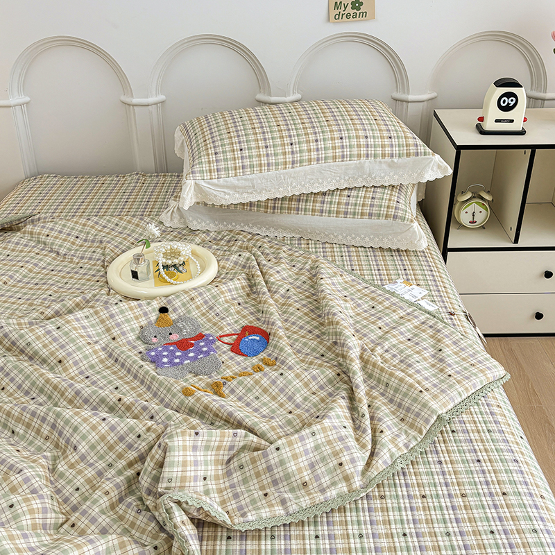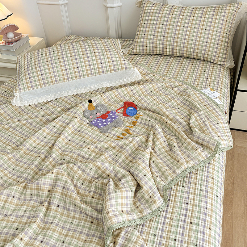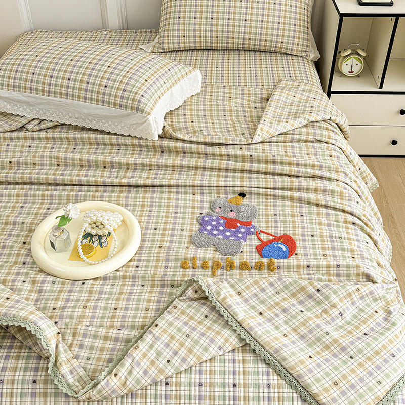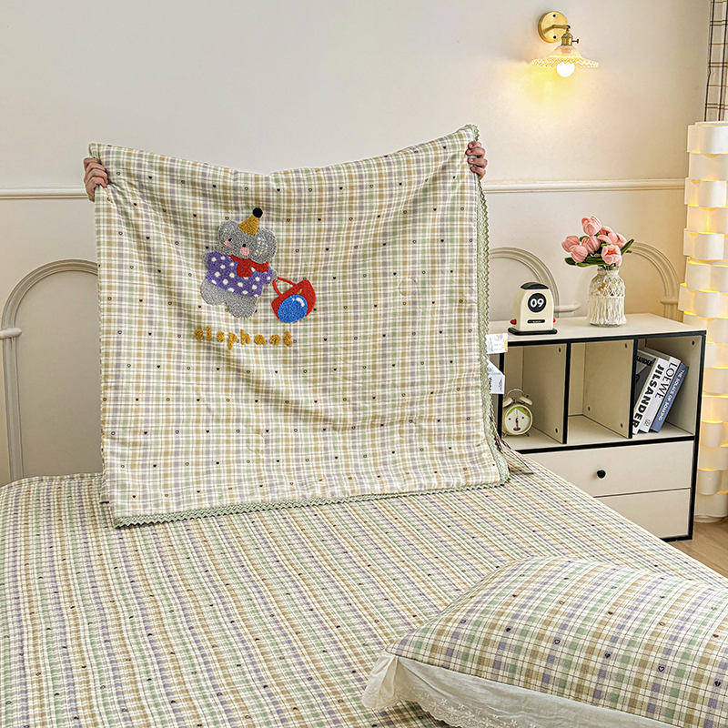 有货2025新款云纱棉毛巾绣夏被+床盖三件套 小象