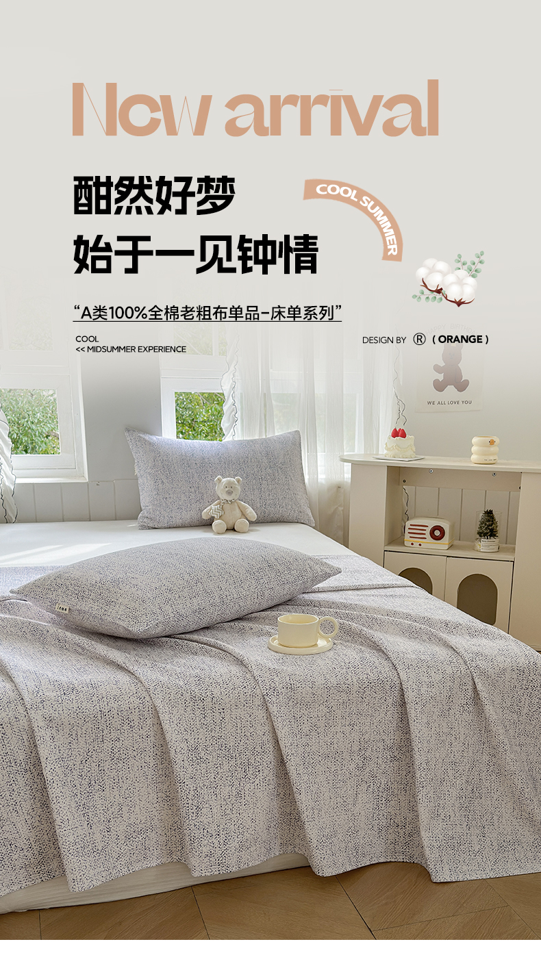 莱登卡奴 新款A类100%全棉老粗布单品系列-床单 清晨织梦
