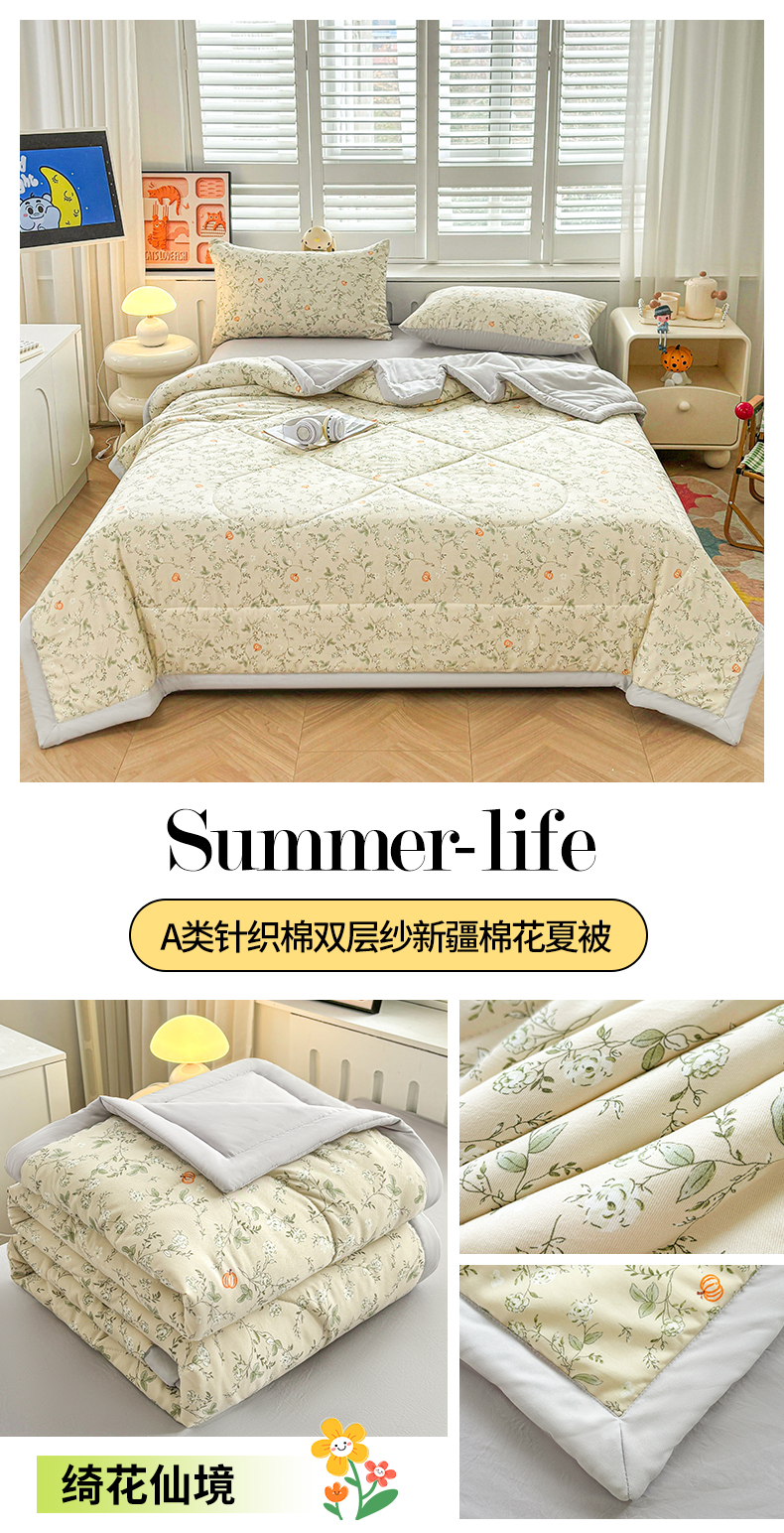 商品名称: 壹张床 2025新款A类针织棉双层纱100%新疆棉花夏凉被《包检测》(提供买家秀) 绮花仙境