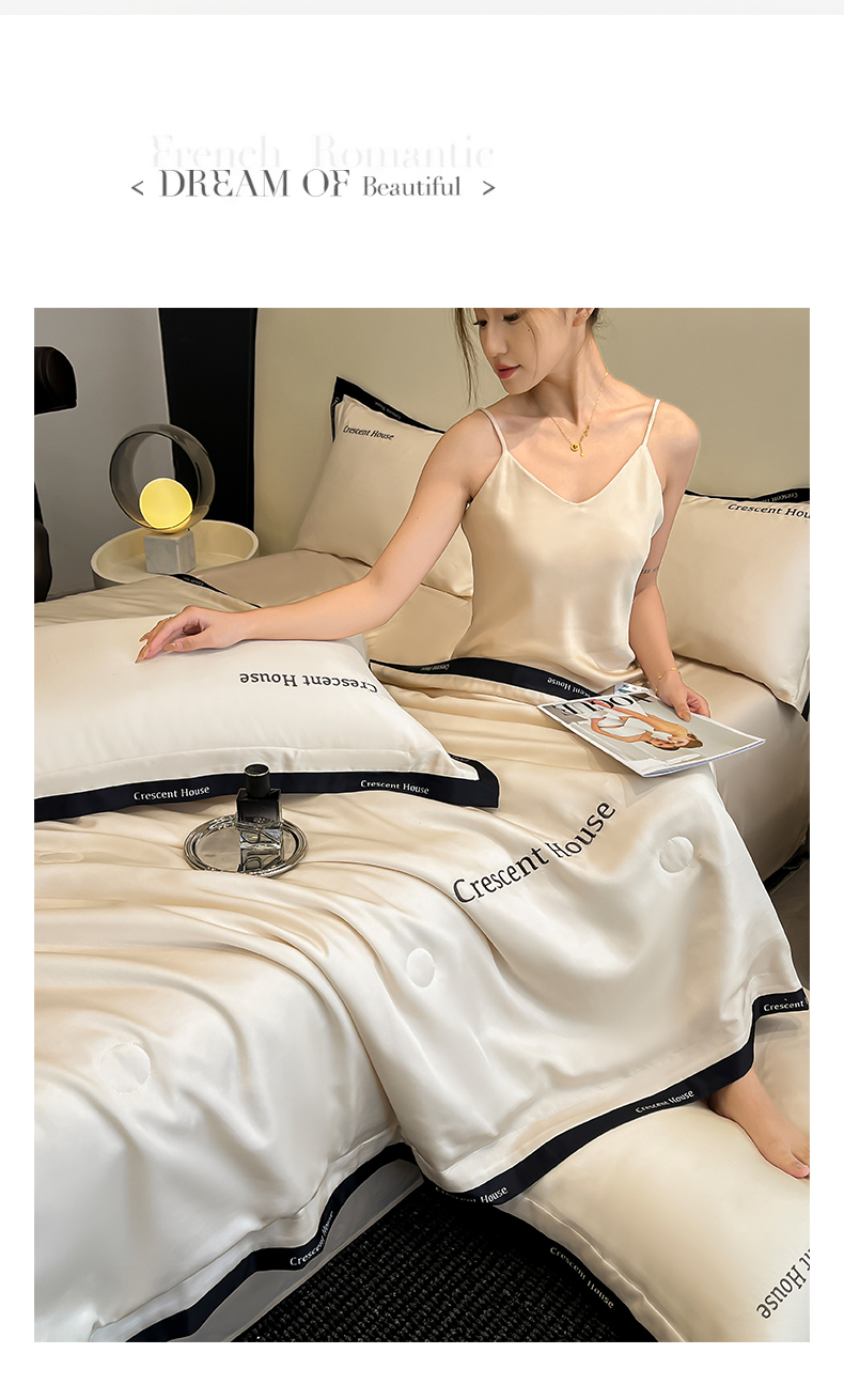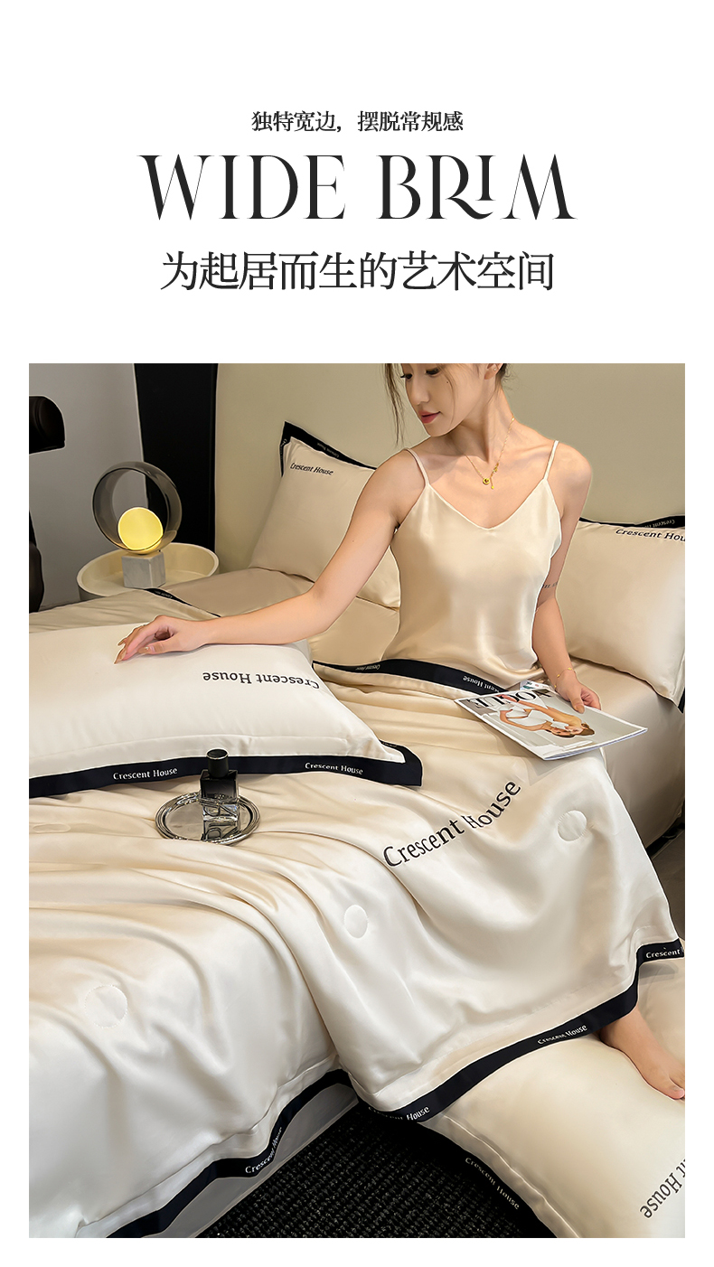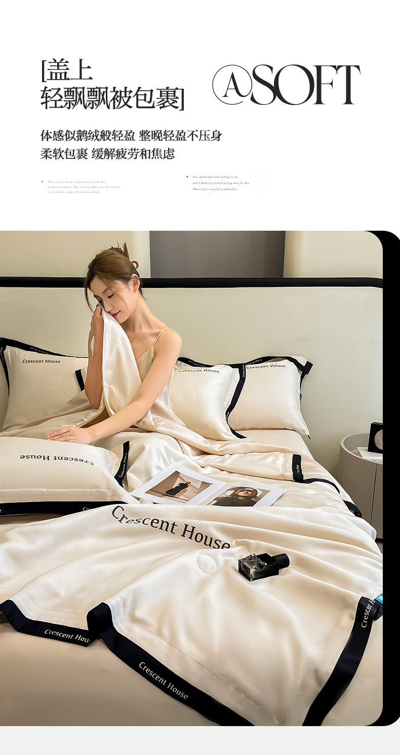 当前位置: 91家纺网 > 商品网购 > 床品套件 > 四件套 > 夏被四件套 > 笙意家纺 2025新款水洗冰丝夏被四件套-卡瑞娜系列 奶昔白+梧桐杏