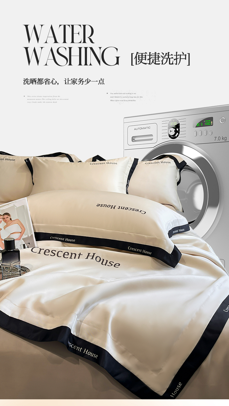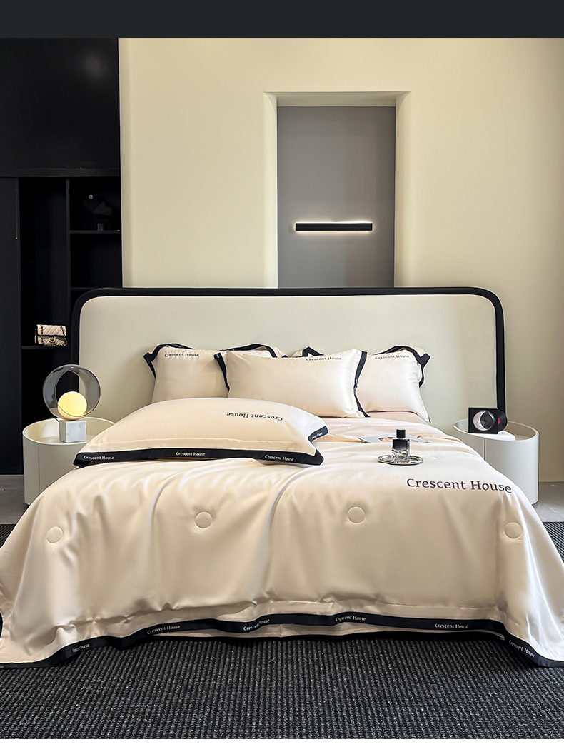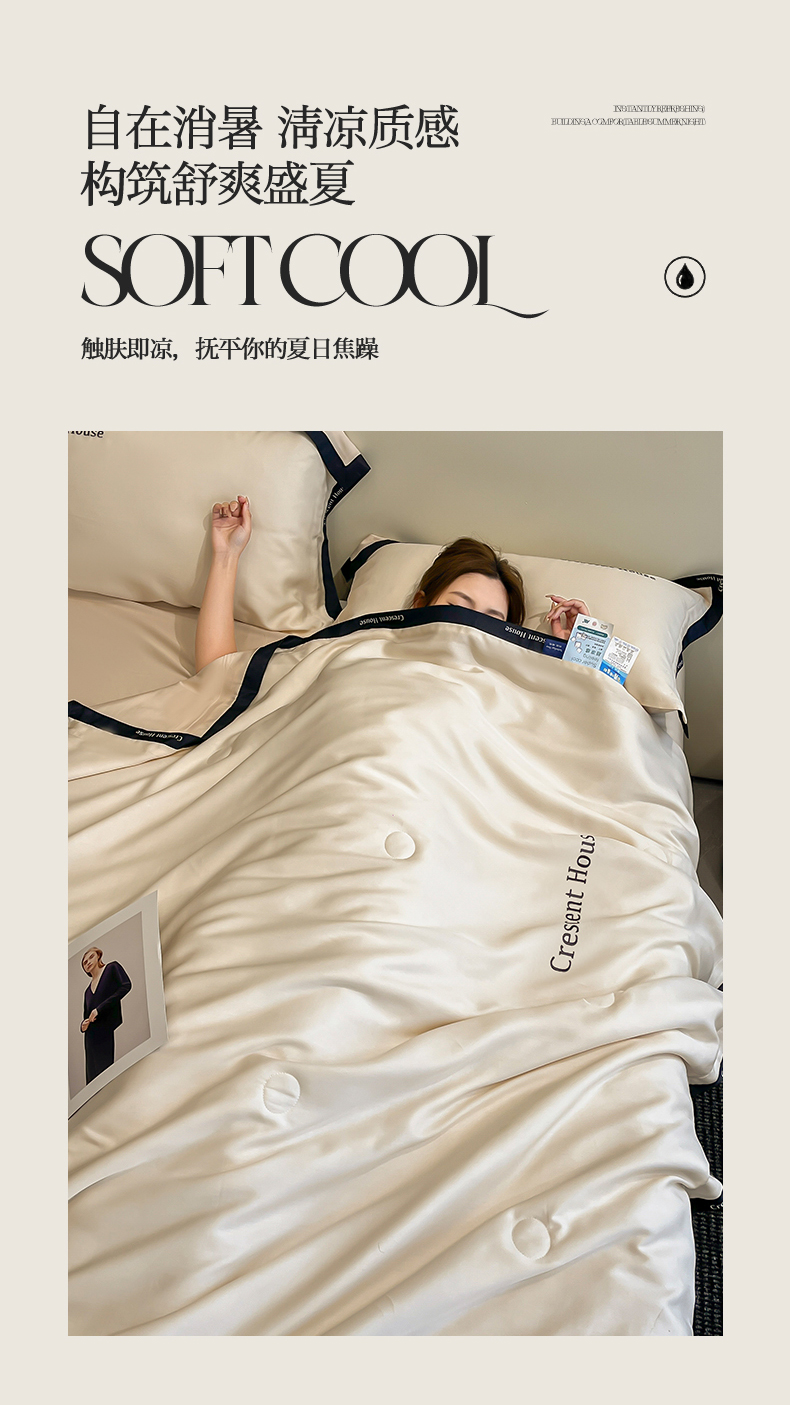 当前位置: 91家纺网 > 商品网购 > 床品套件 > 四件套 > 夏被四件套 > 笙意家纺 2025新款水洗冰丝夏被四件套-卡瑞娜系列 奶昔白+梧桐杏