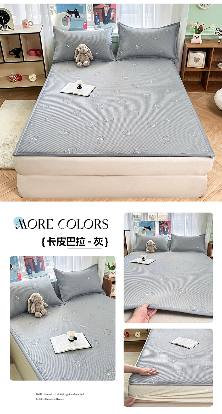 莱米家纺 2025新款冰感凉豆豆凉席床笠款 卡皮巴拉—灰