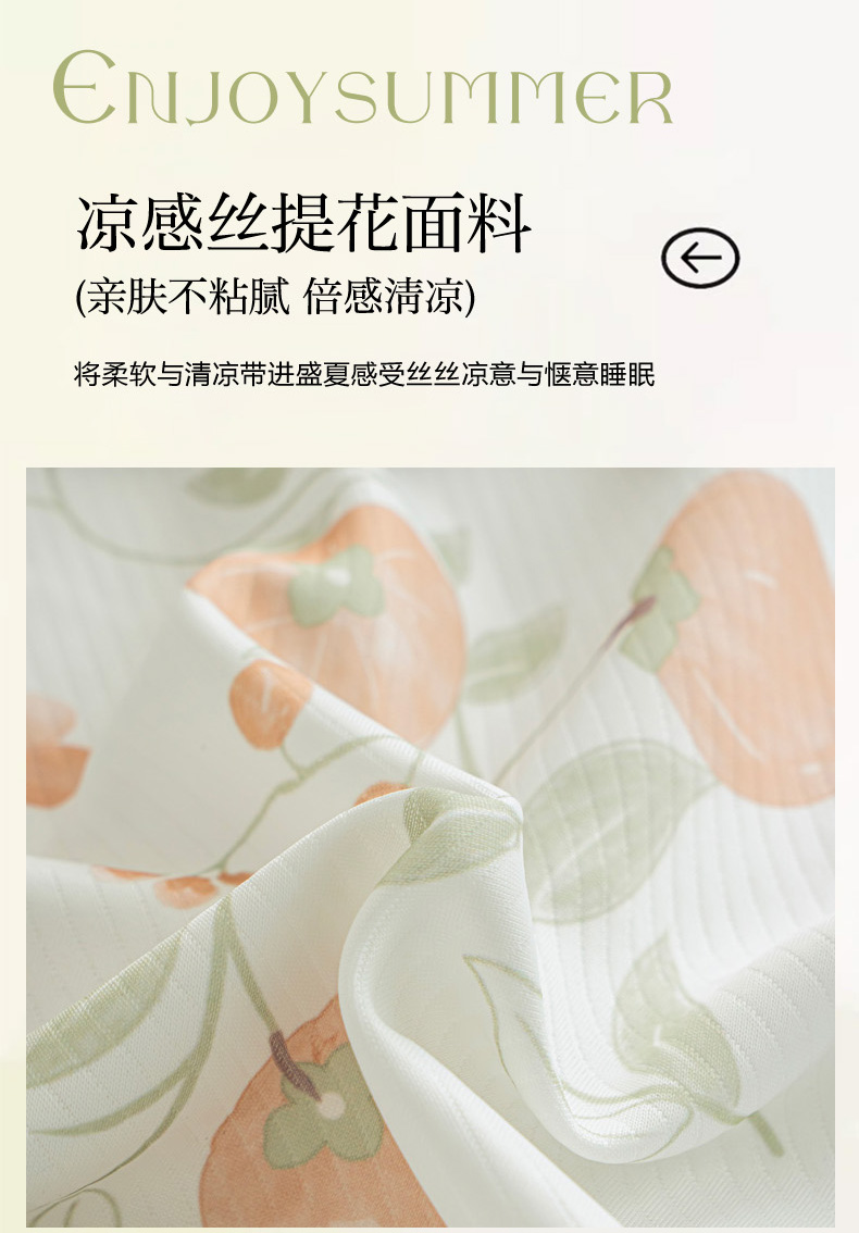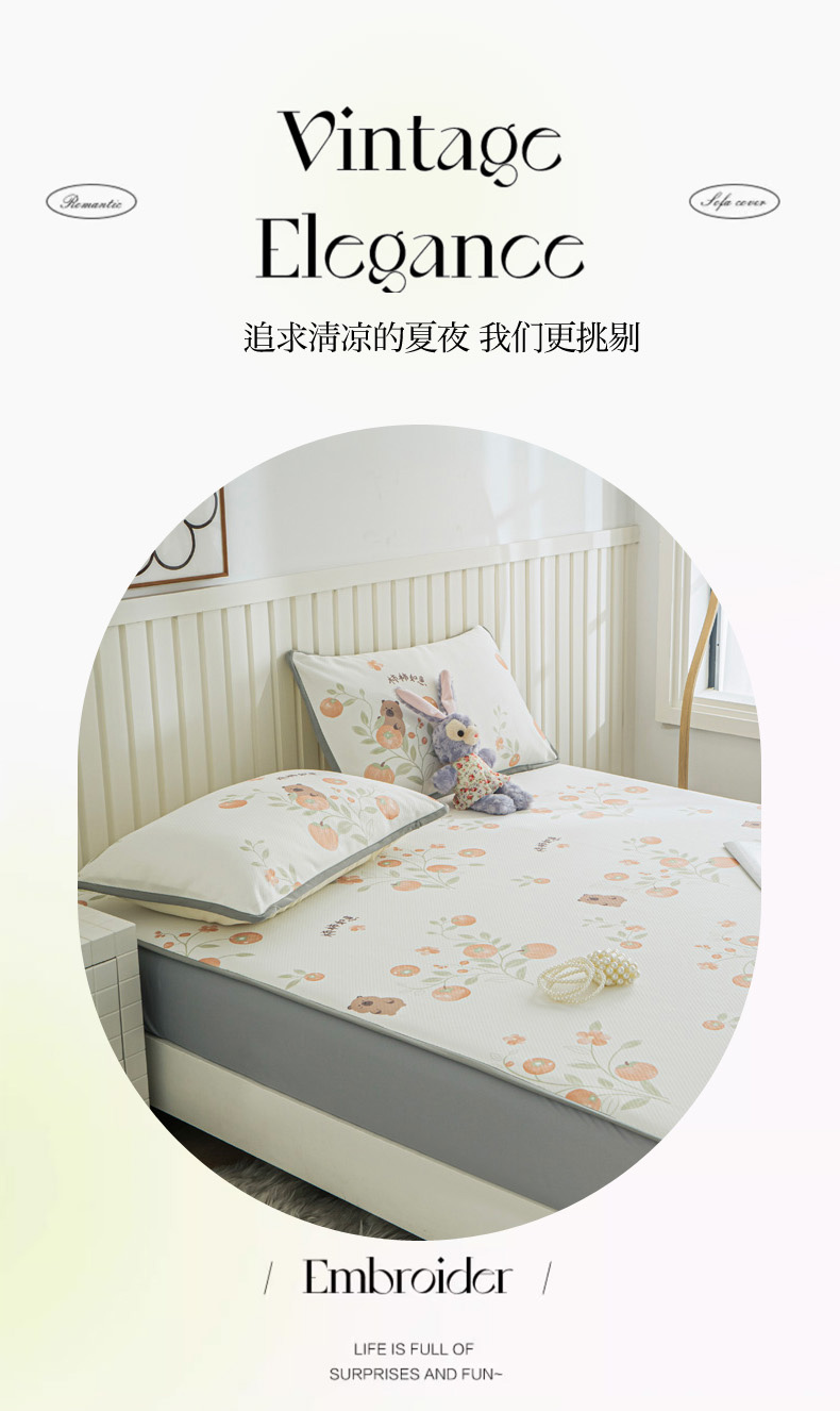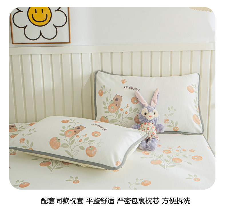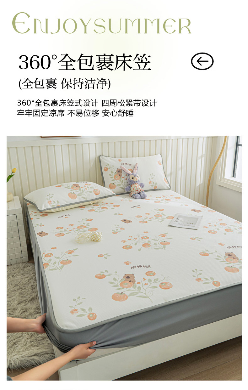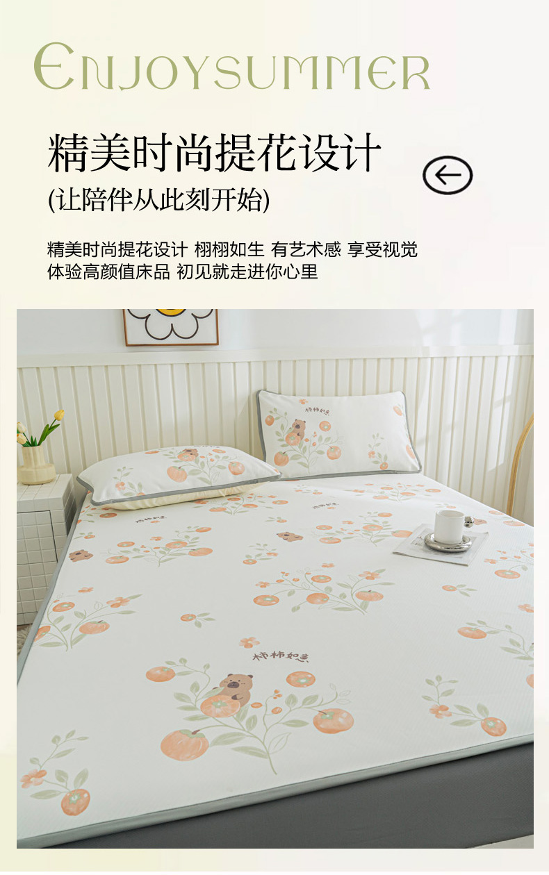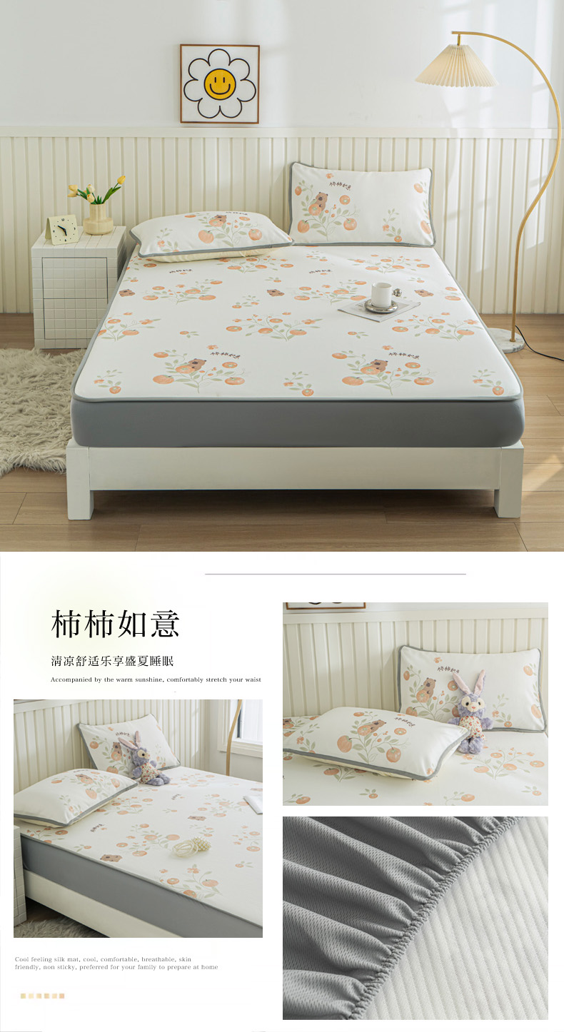 • 91家纺网 家纺一手货源 找家纺 卢赛尔 2025新款凉感丝提花凉席床笠款 柿柿如意