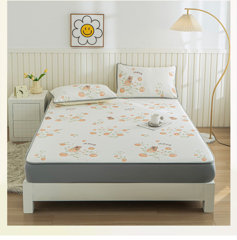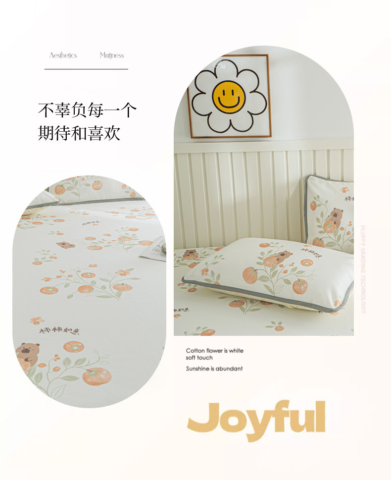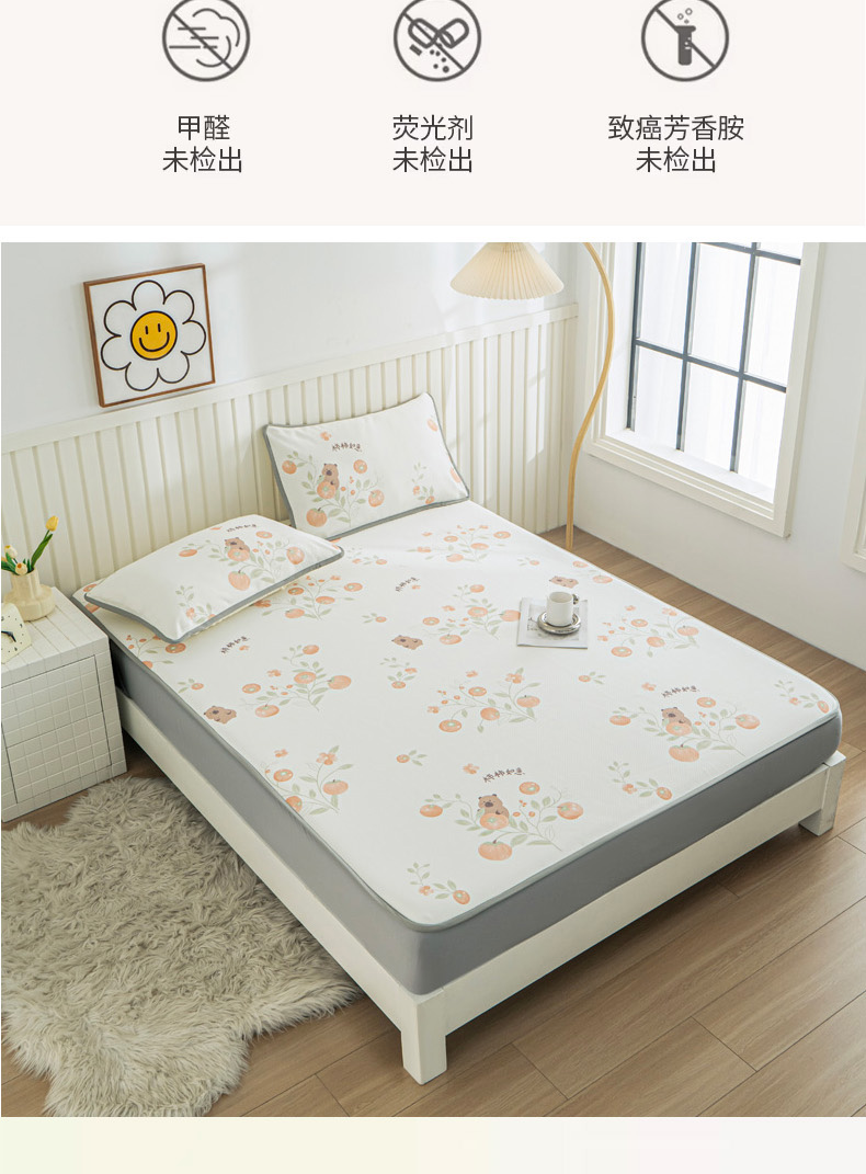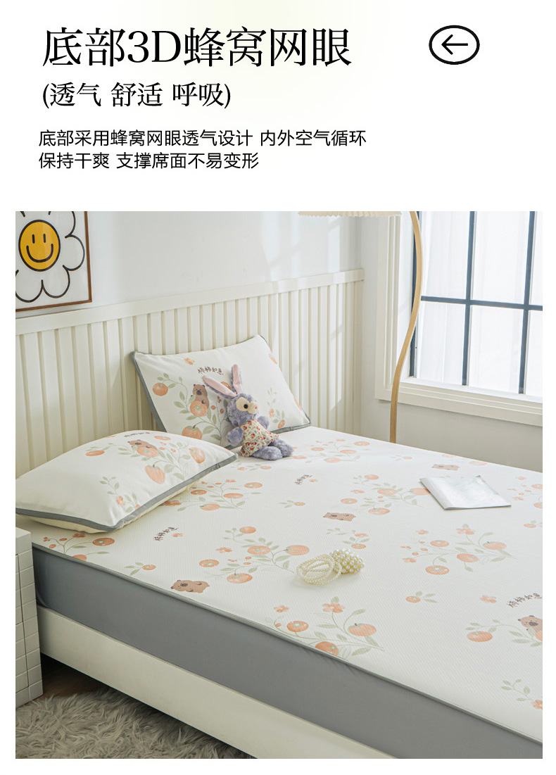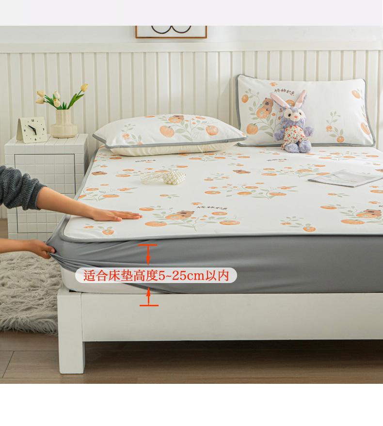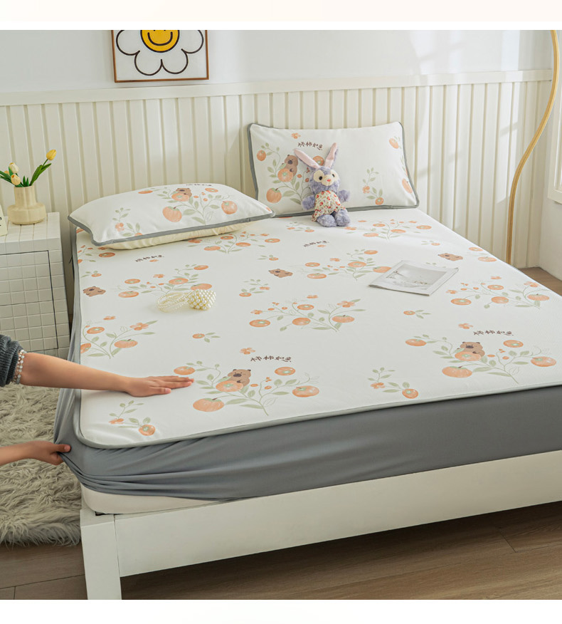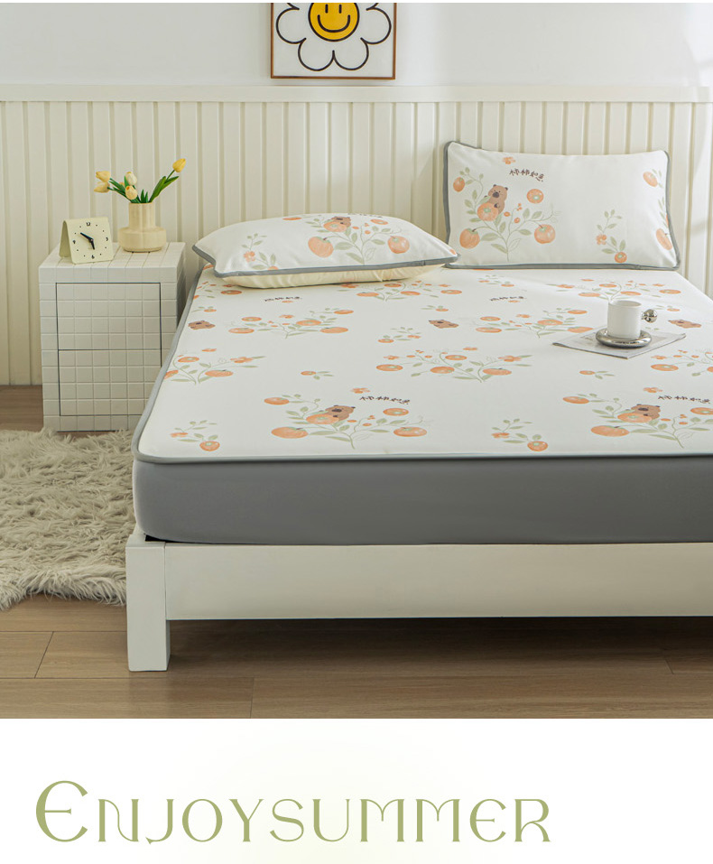• 91家纺网 家纺一手货源 找家纺 卢赛尔 2025新款凉感丝提花凉席床笠款 柿柿如意