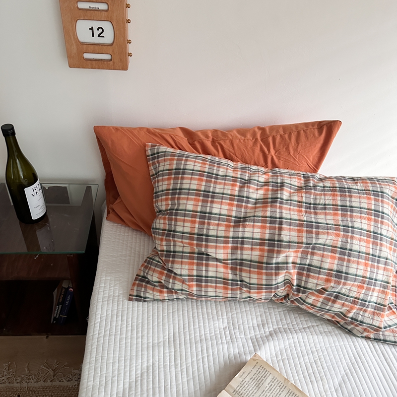 商品名称:恋恋雨季2025新款水洗棉色织四件套-日耳曼冬城-单枕套 星巴克橘