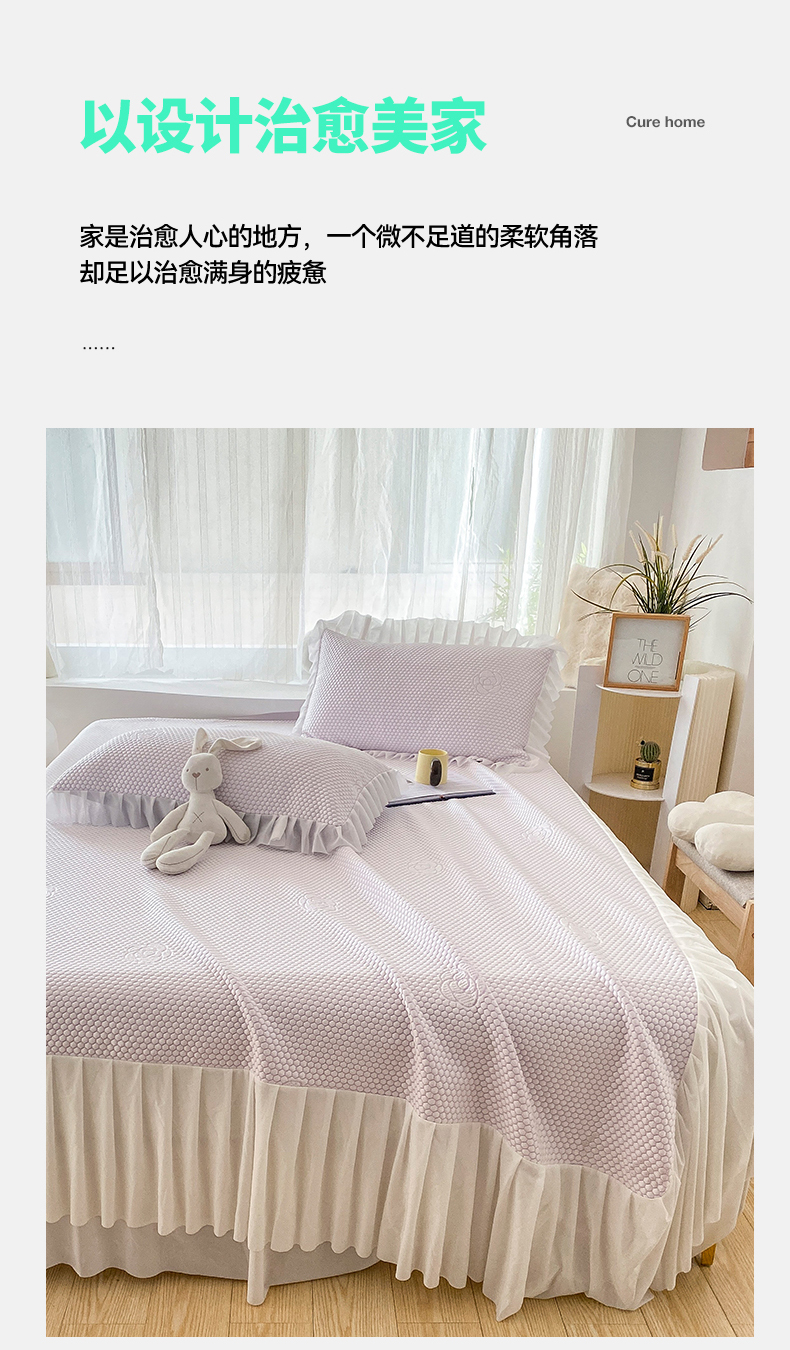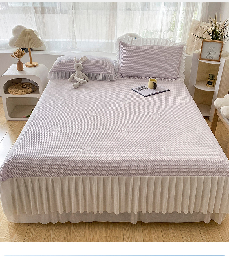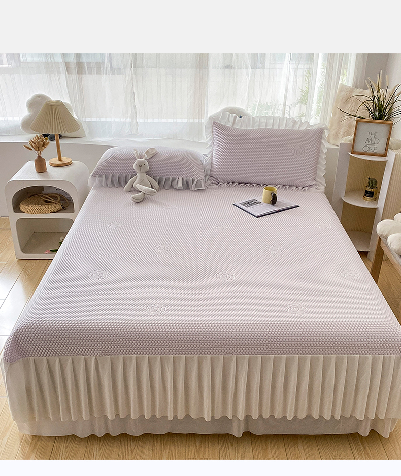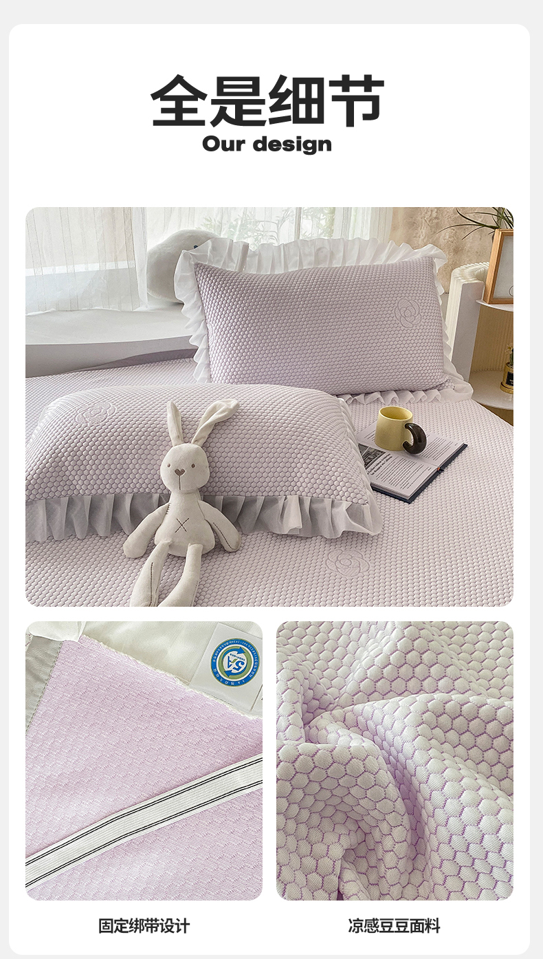 • 91家纺网 家纺一手货源 找家纺 卡初家居(原微来) 2025新款抗菌冰豆豆花朵系列床笠床裙款凉席冰豆豆花朵系列-床裙款 冰藤紫