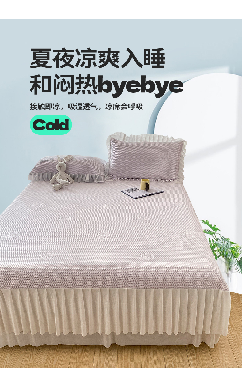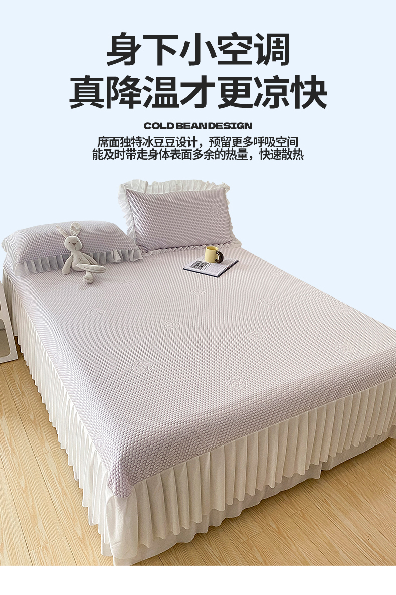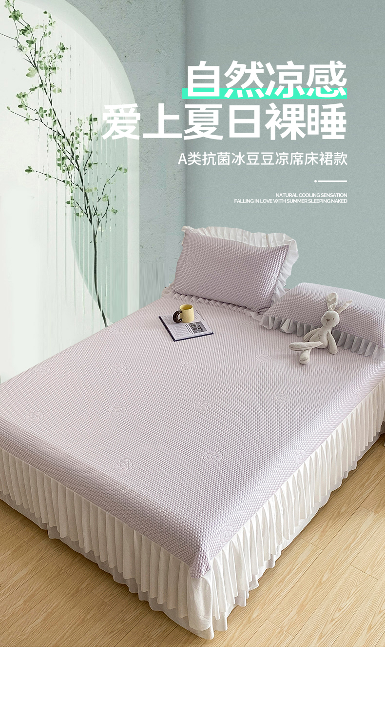 卡初家居(原微来) 2025新款抗菌冰豆豆花朵系列床笠床裙款凉席冰豆豆花朵系列-床裙款 冰藤紫