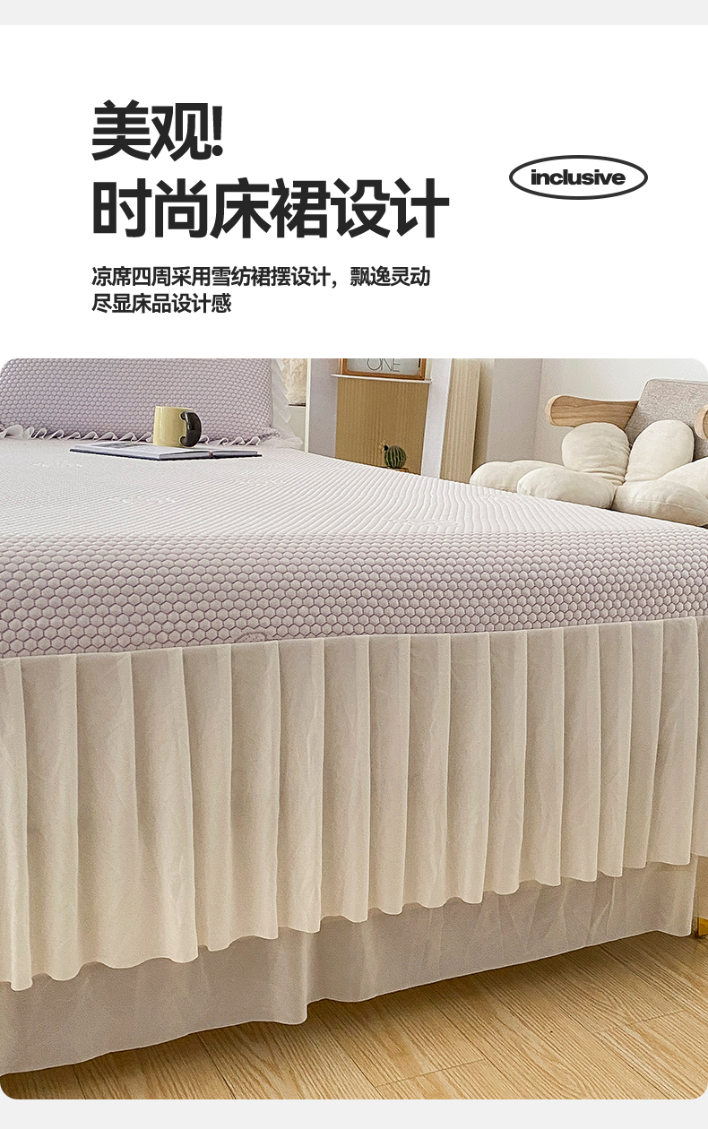 当前位置: 91家纺网 > 商品网购 > 床上用品 > 凉席 > 卡初家居(原微来) 2025新款抗菌冰豆豆花朵系列床笠床裙款凉席冰豆豆花朵系列-床裙款 冰藤紫