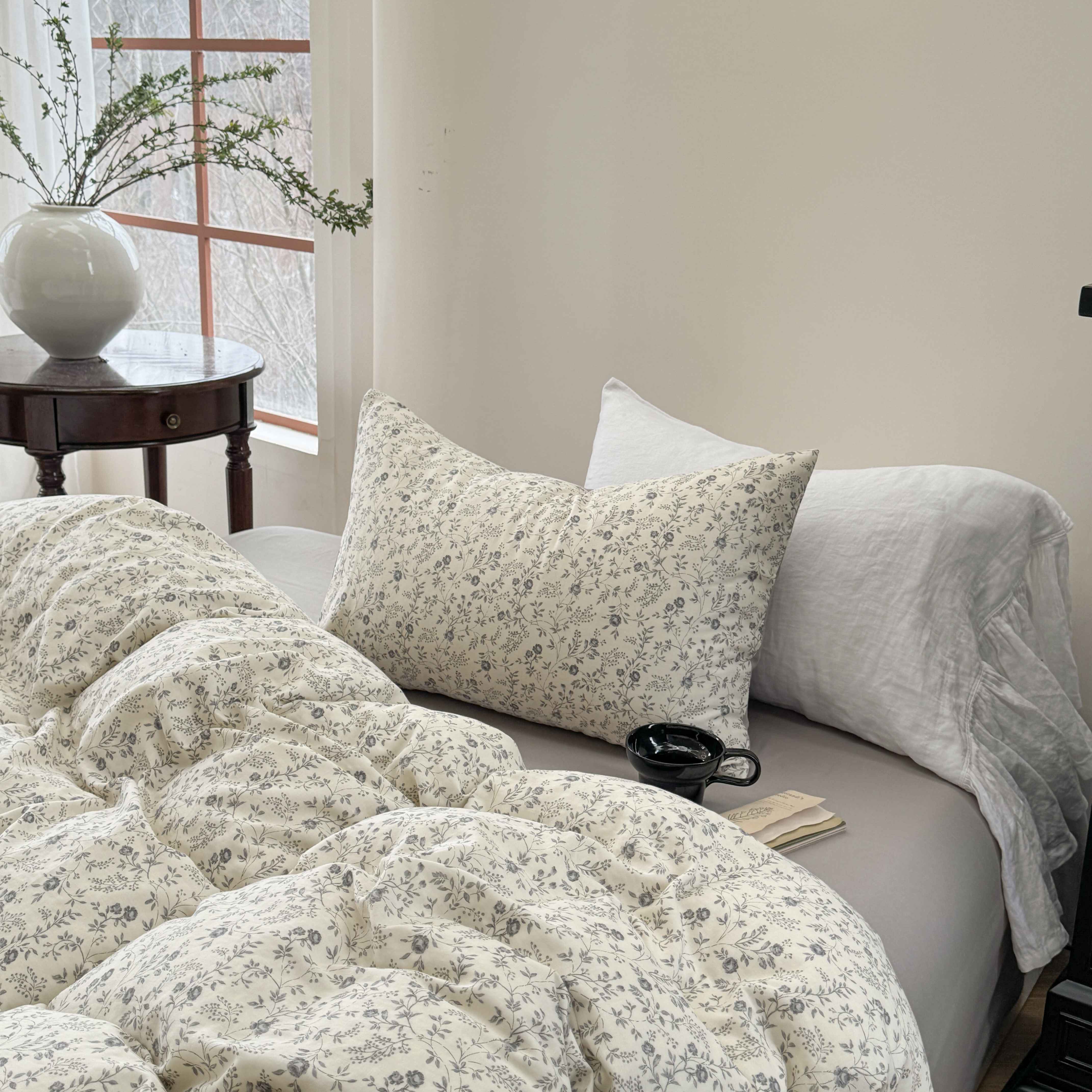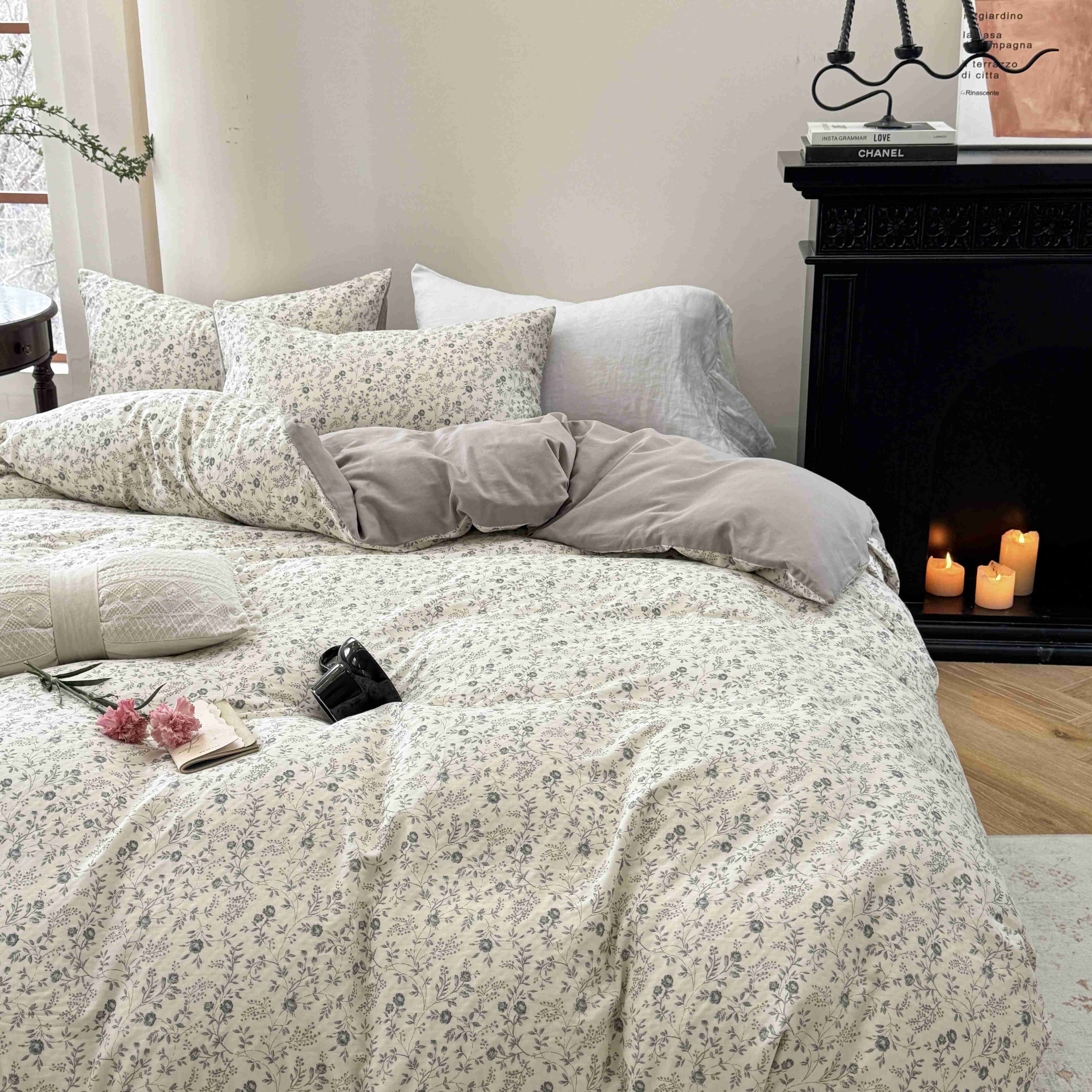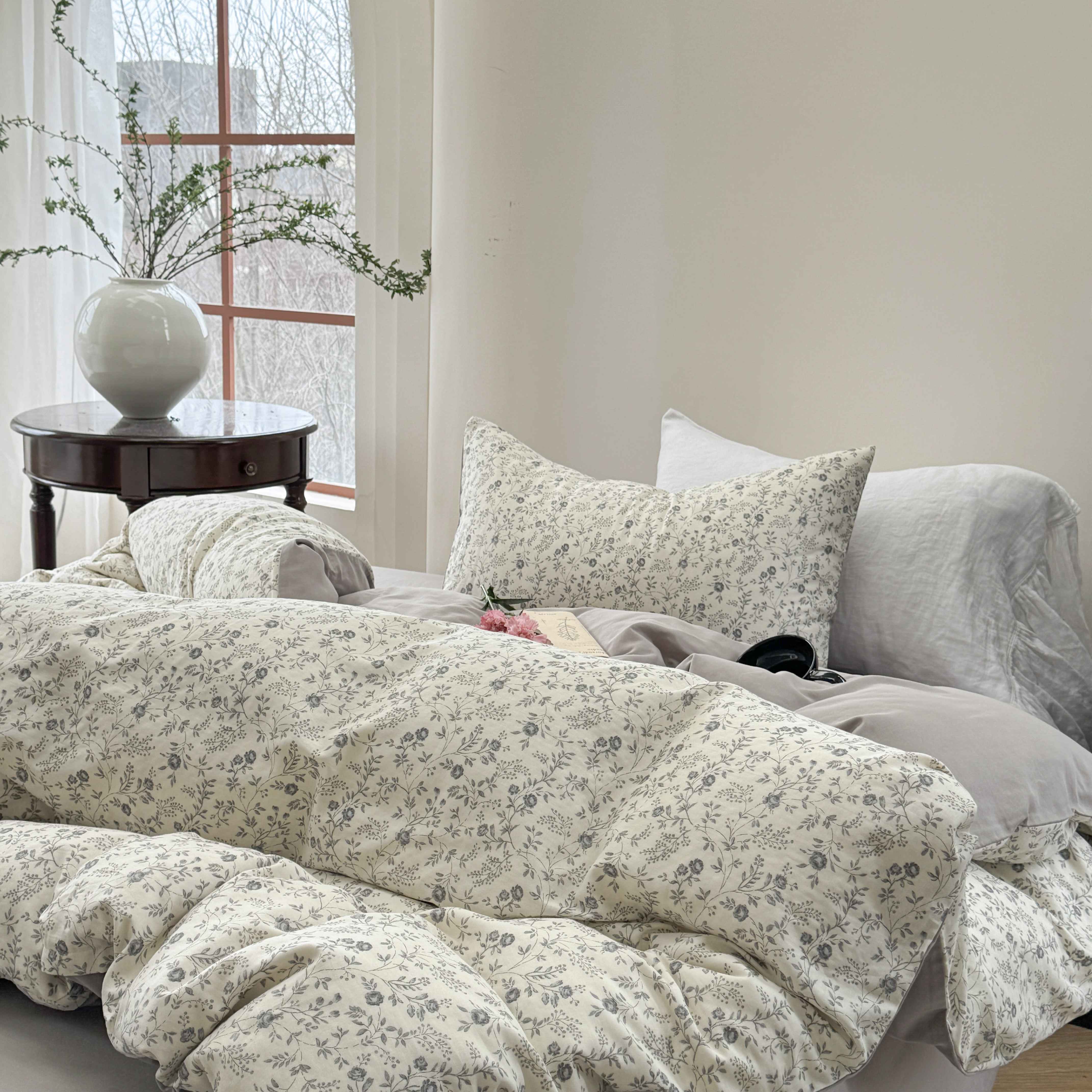 商品名称:时年家纺 2025春夏新款全棉纯棉有氧双层纱四件套-碎花系列 秋月白