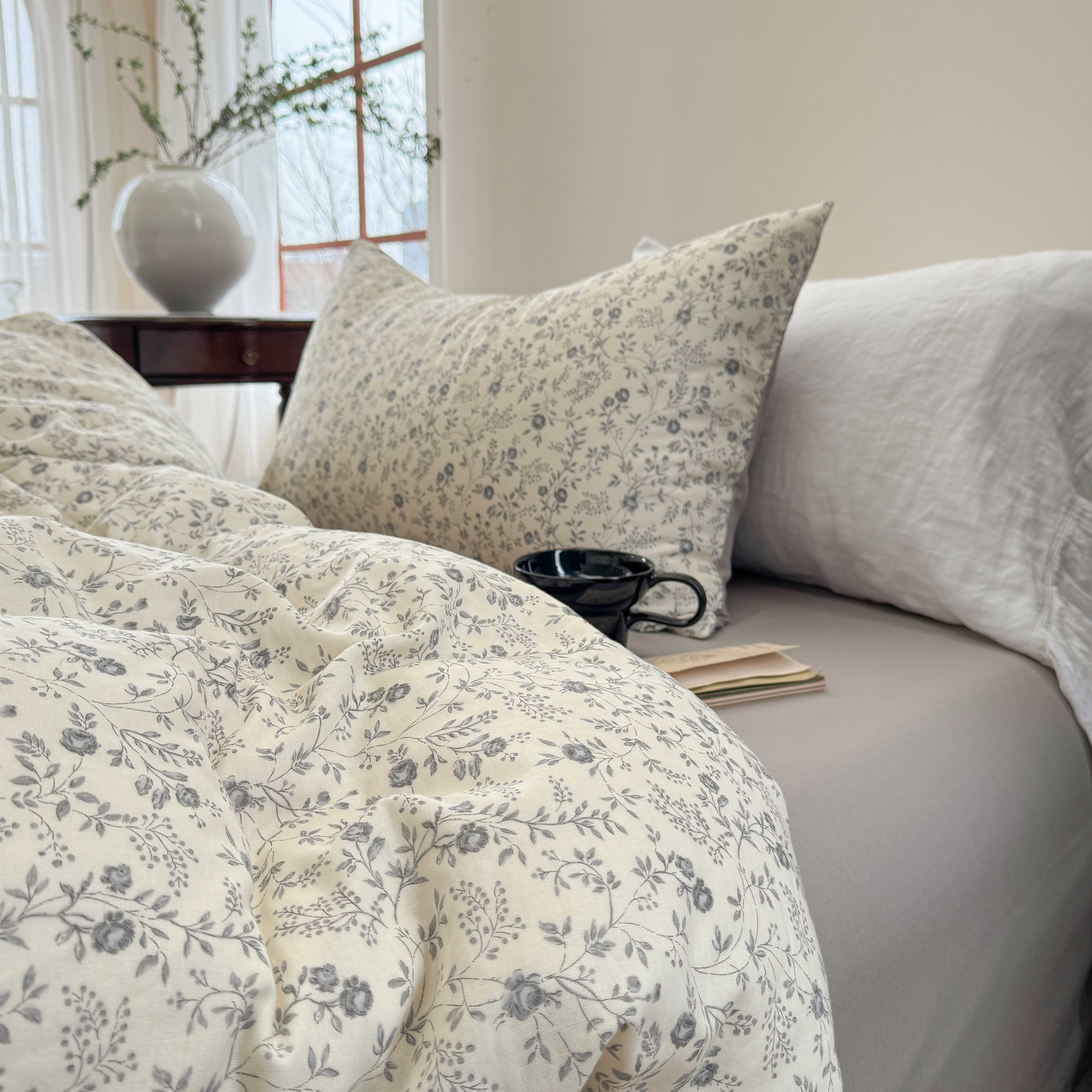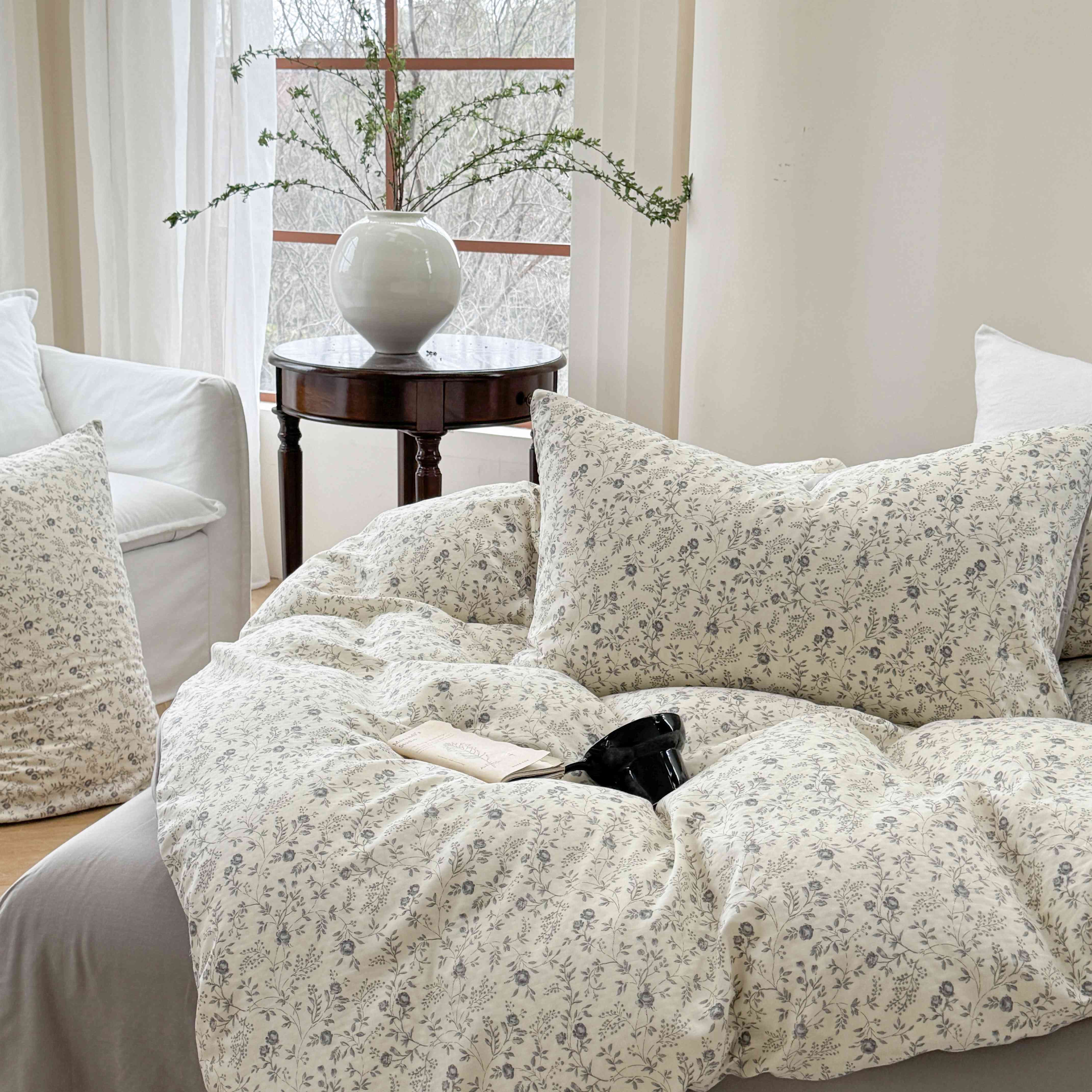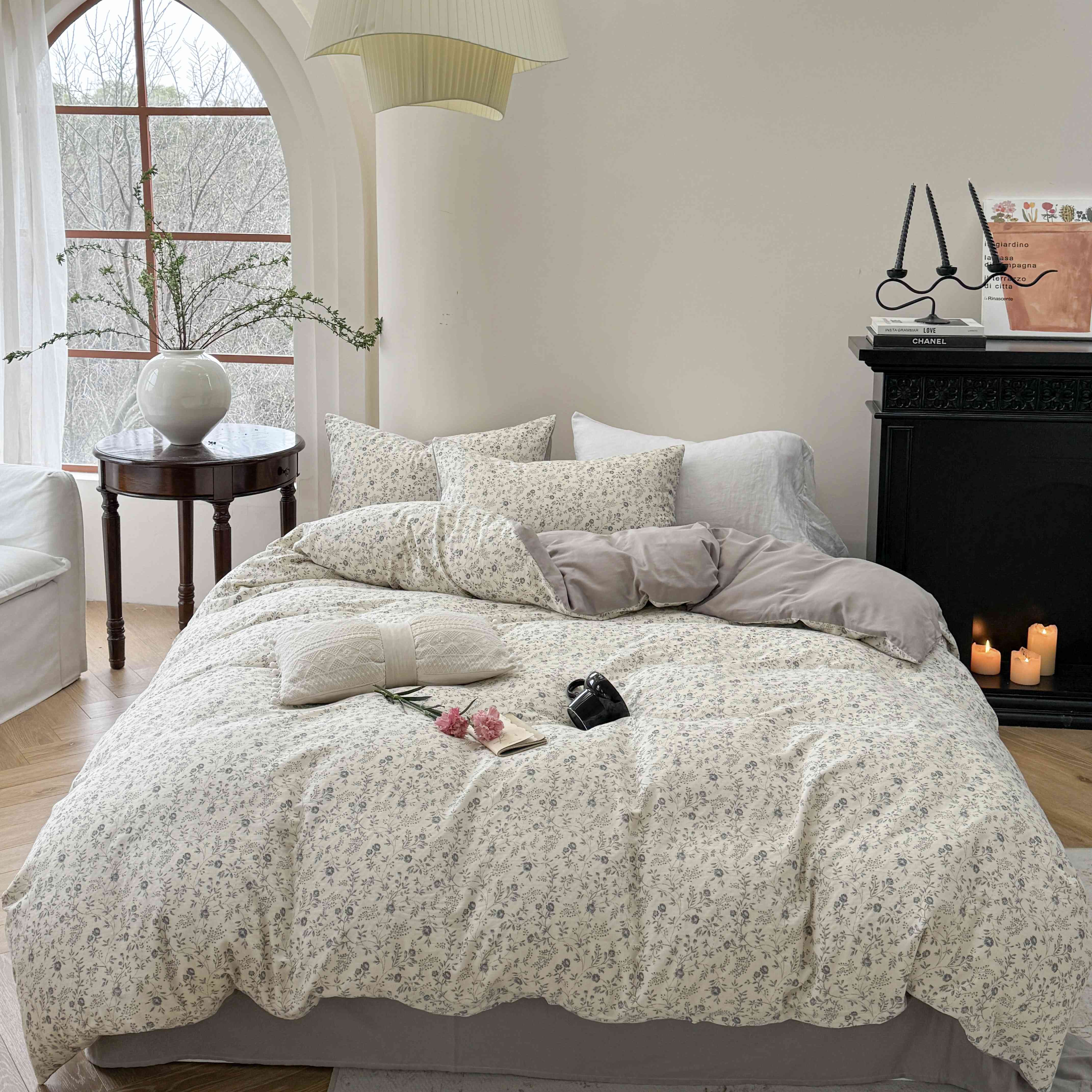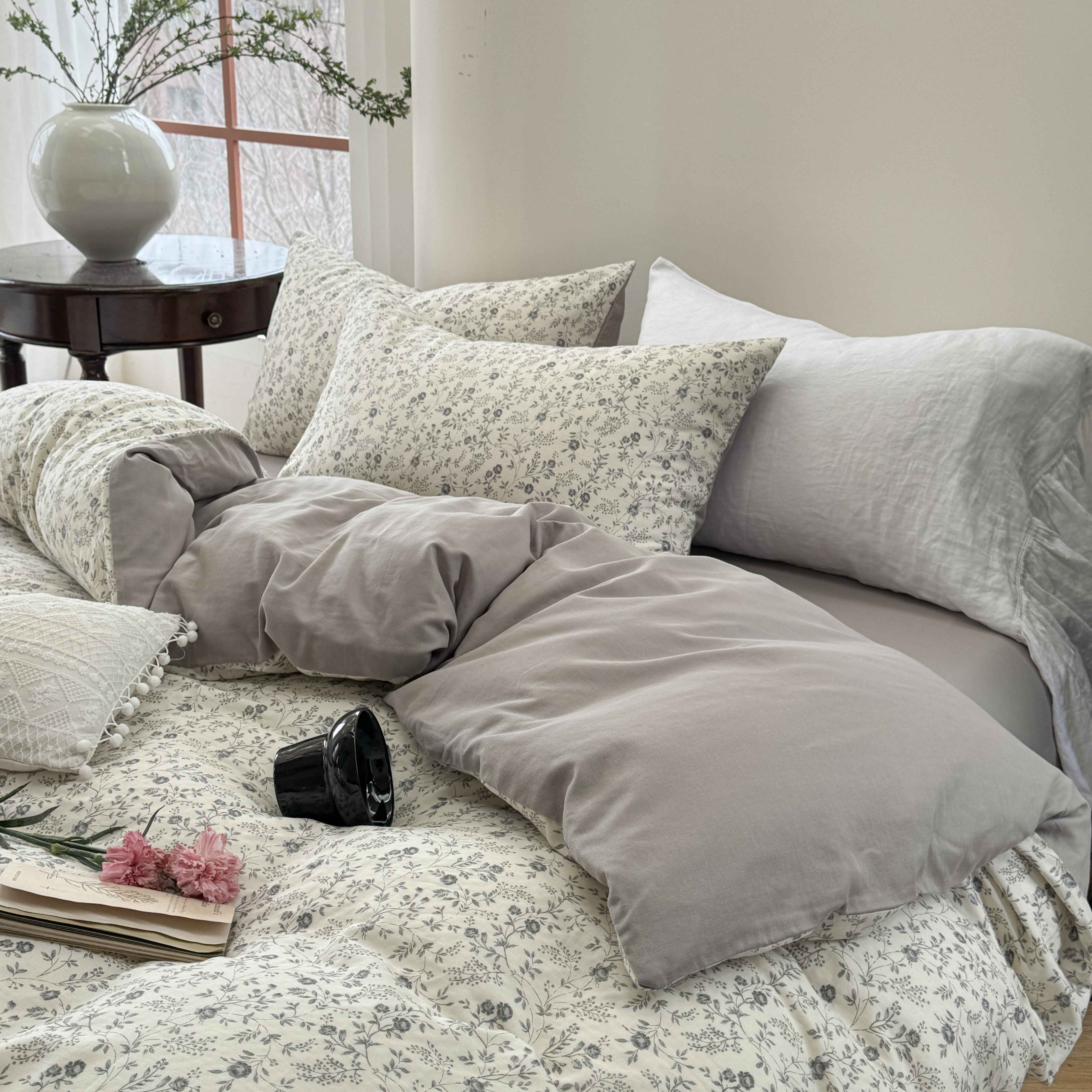商品名称:时年家纺 2025春夏新款全棉纯棉有氧双层纱四件套-碎花系列 秋月白
