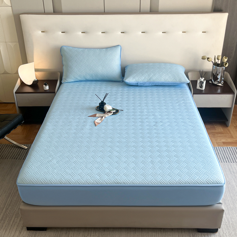 商品名称:梵克保罗 2025新款凉感丝床笠凉席三件套--饼干系列 蓝色