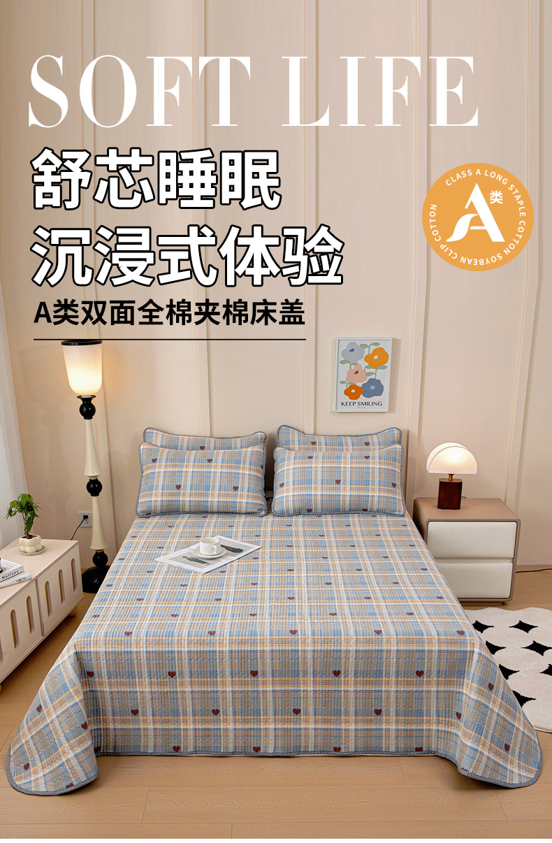 当前位置: 91家纺网 > 商品网购 > 床品套件 > 三件套 > 情煊家纺 2025新款双面全棉夹棉床盖三件套 青春告白