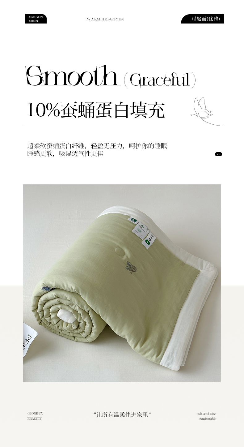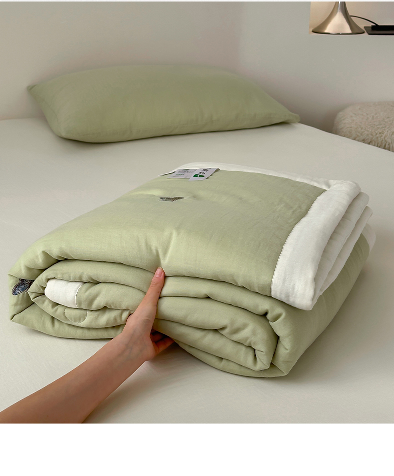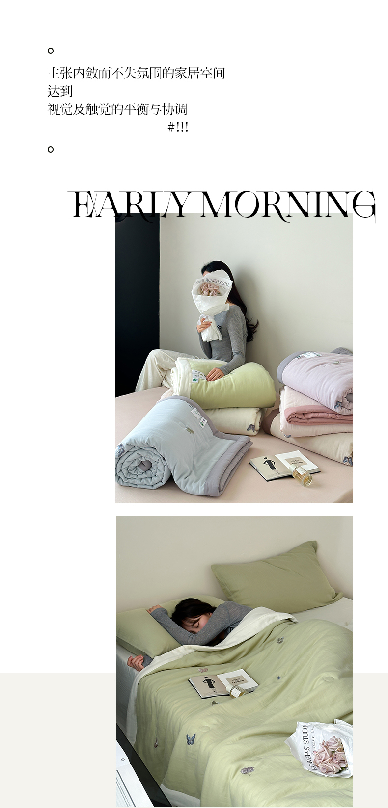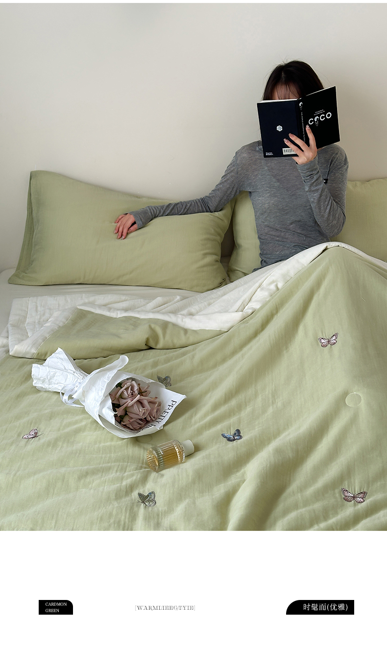 当前位置: 91家纺网 > 商品网购 > 床品套件 > 四件套 > 夏被四件套 > 一加一 2025新款A类全棉双层皱皱纱蚕蛹蛋白夏被四件套(蝶梦系列) 蝶梦-奶绿白