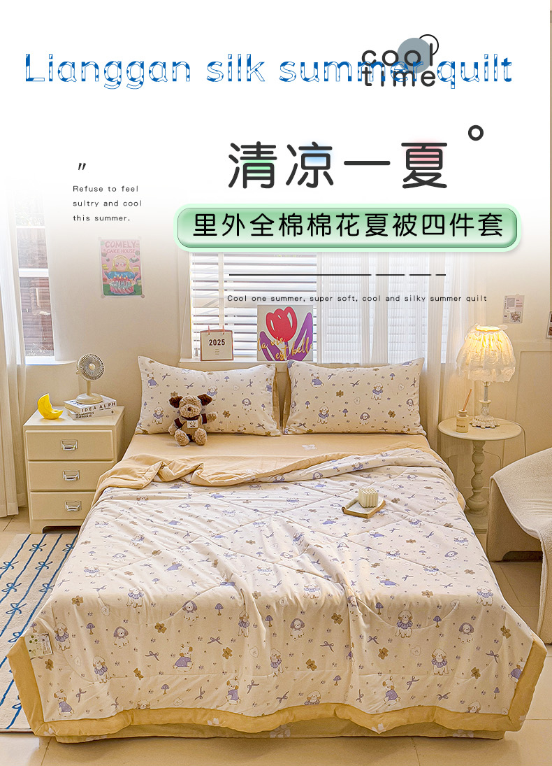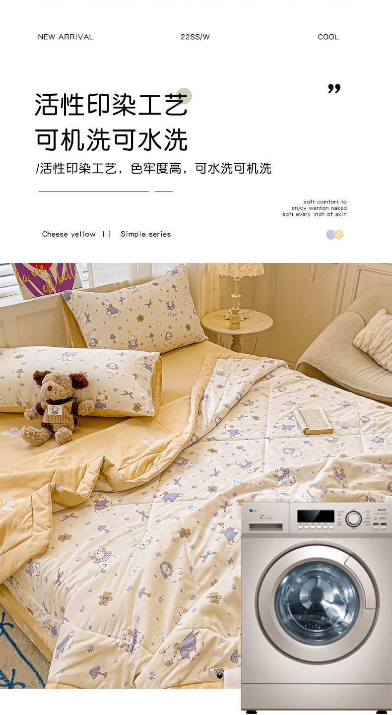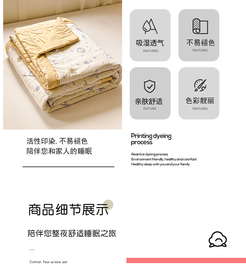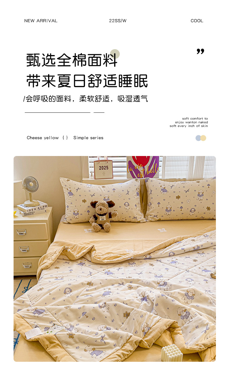 • 91家纺网 家纺一手货源 找家纺 初相识被业 2025新款里外全棉夏被棉花夏被四件套印花夏凉被空调被 快乐狗狗