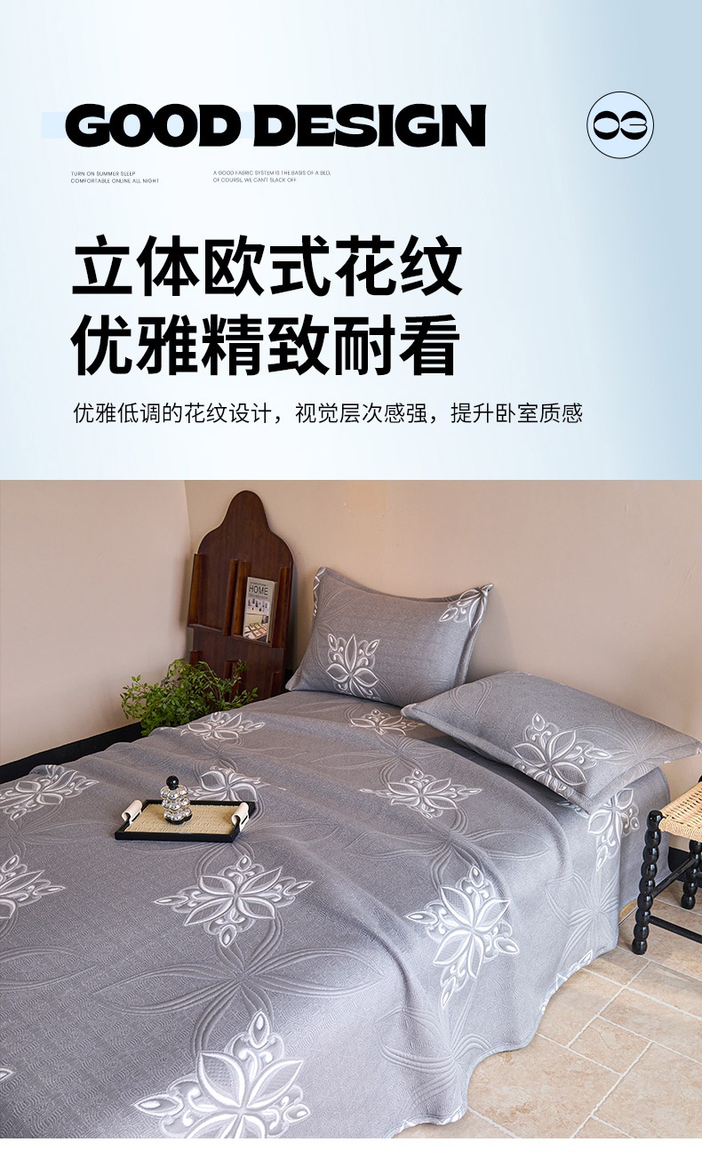 (总)席之家 2025新款600D提花冰丝席,灰色,绿色