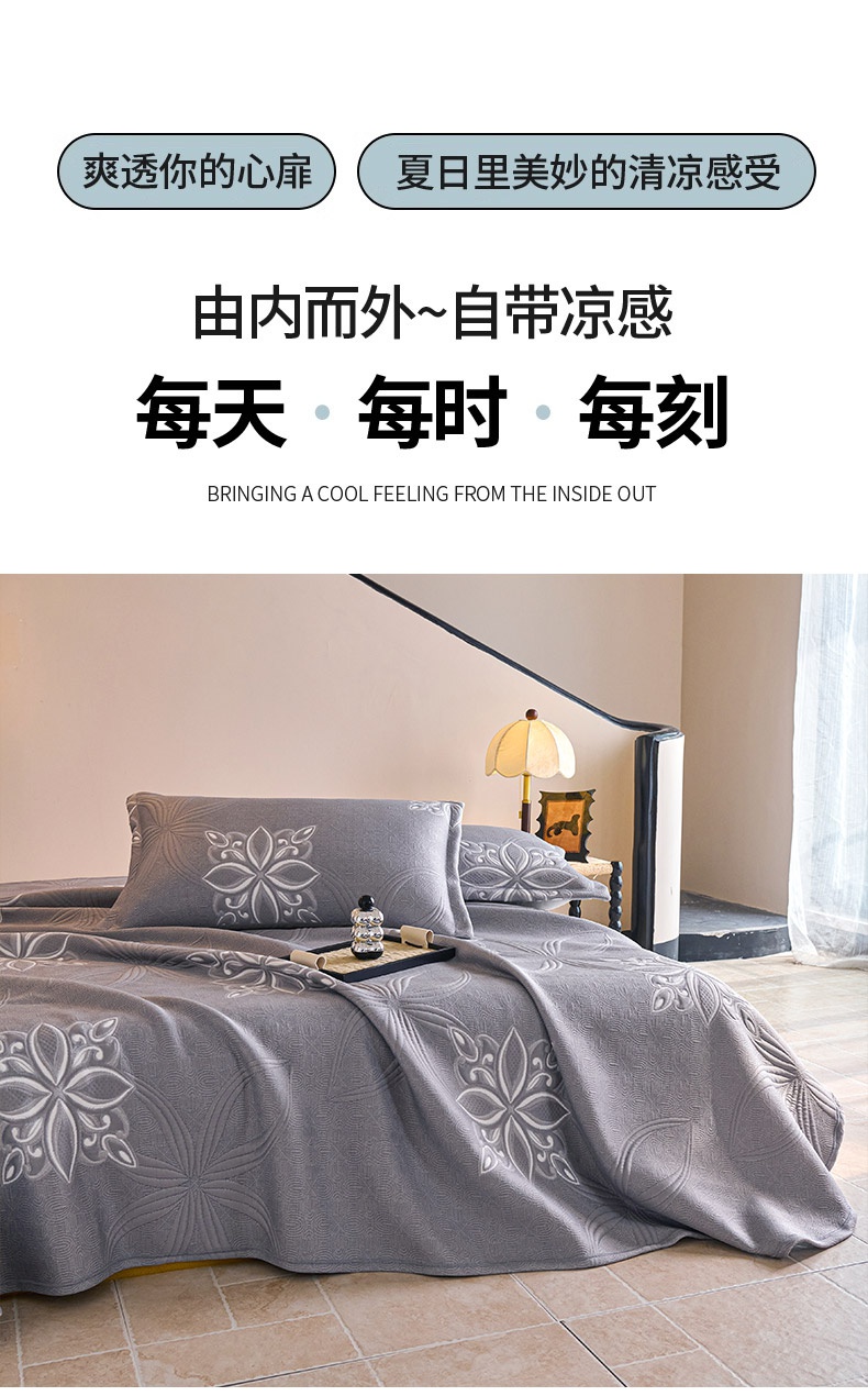 (总)席之家 2025新款高精密三纬可水洗冰提花丝凉席,莫奈-咖,莫奈-灰,莫奈-绿