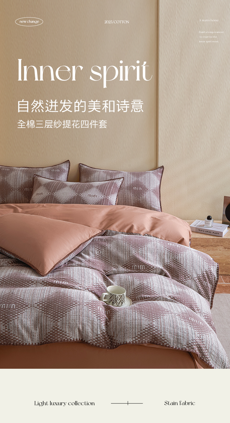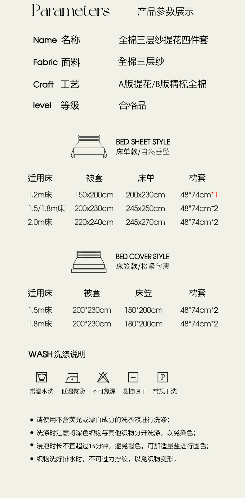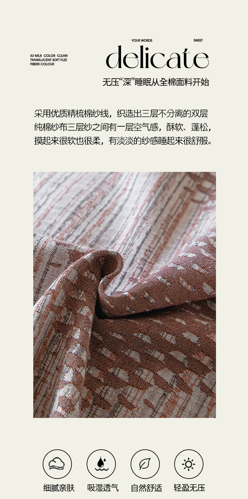 商品名称:(总)2025新款亲肤全棉三层纱提花四件套