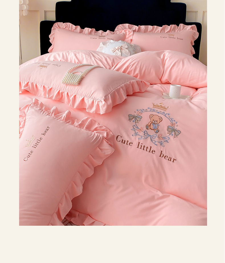 (总)帝菲妮 2025新款法式韩版高克重超柔水洗棉针织棉糯小棉刺绣四件套,熊宝-宾利兰,熊宝-奶白灰,熊宝-奶白卡其,熊宝-浅紫,熊宝-水绿,熊宝-珍珠粉