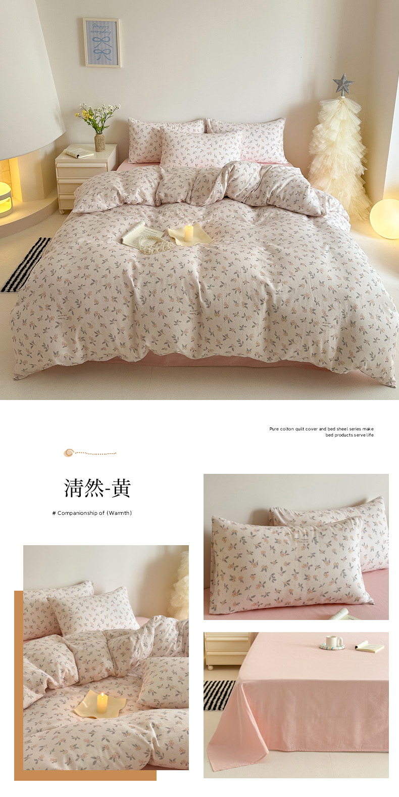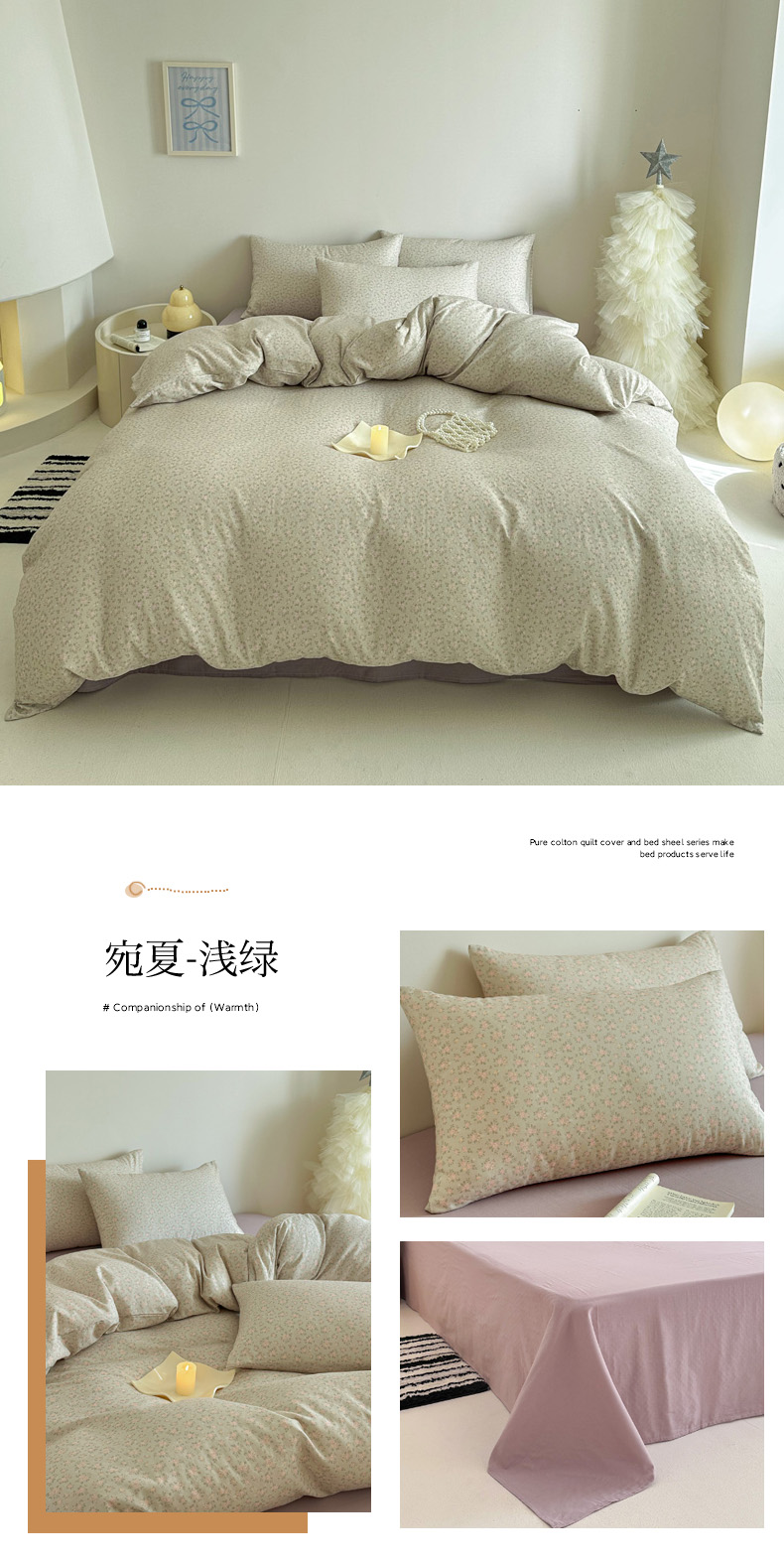 商品名称:2025新款全棉有氧A类母婴级双层纱印花四件套 流薇纱-绿