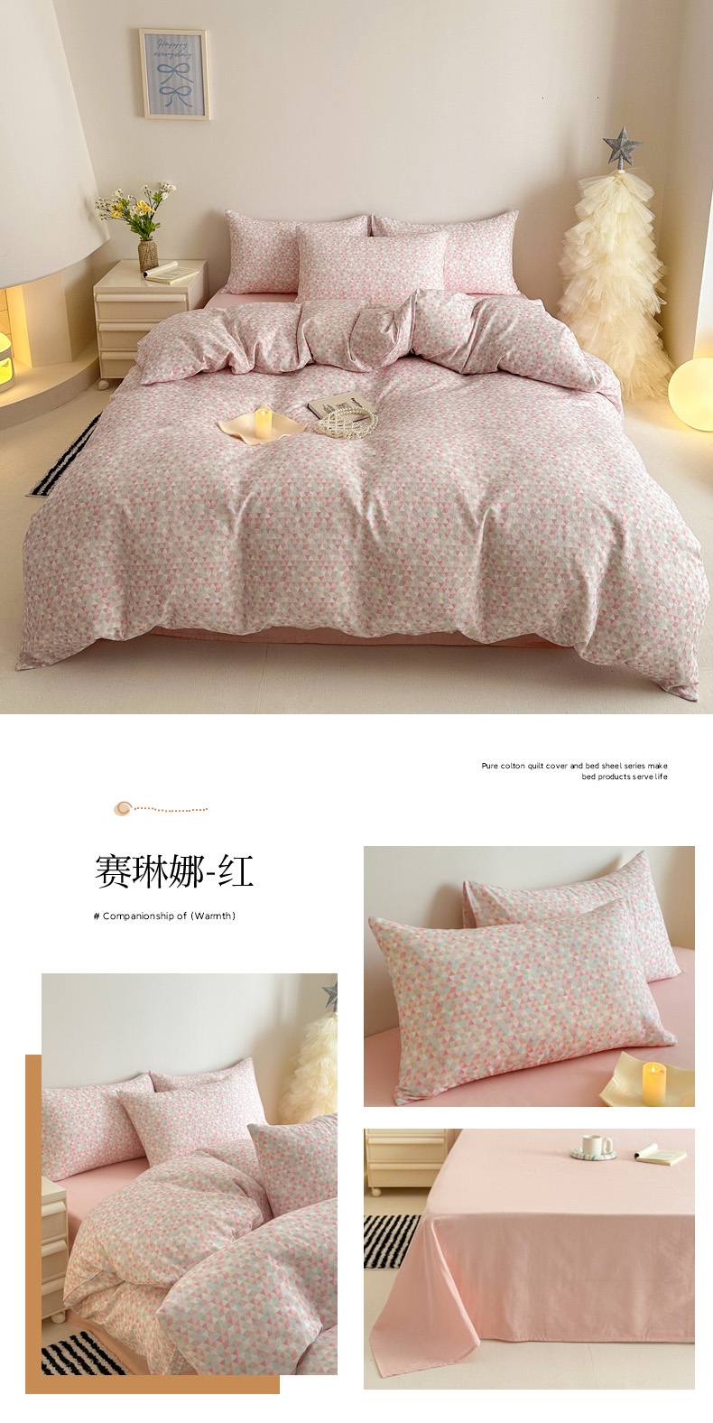 (总)星尚家纺 2024新款全消光230g牛奶绒刺绣保暖四件套-花漾,晨雾绿,豆沙粉,樱花粉