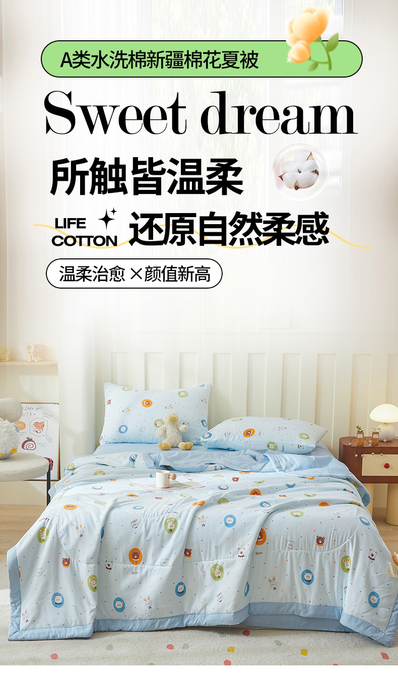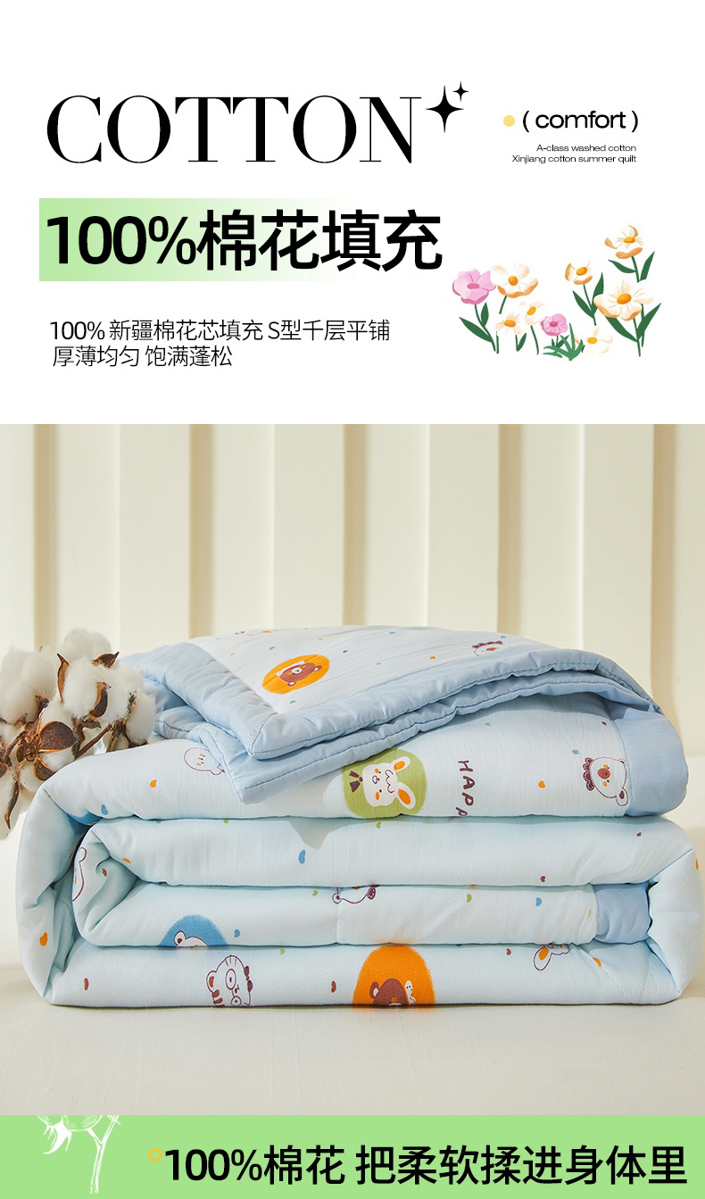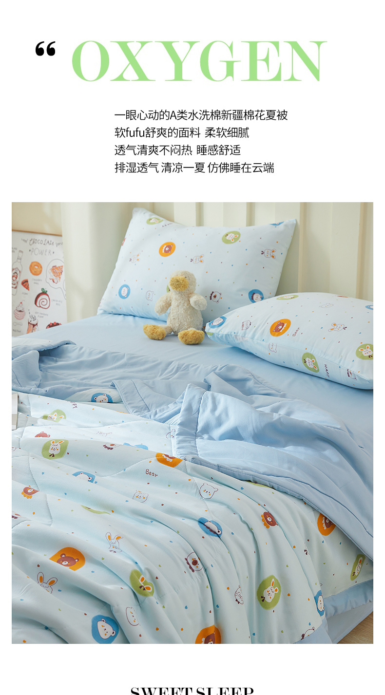 商品名称:2025新款小花款新疆棉花夏被【棉花含量100%】夏季空调被薄被子可机洗夏凉被 熊兔先生