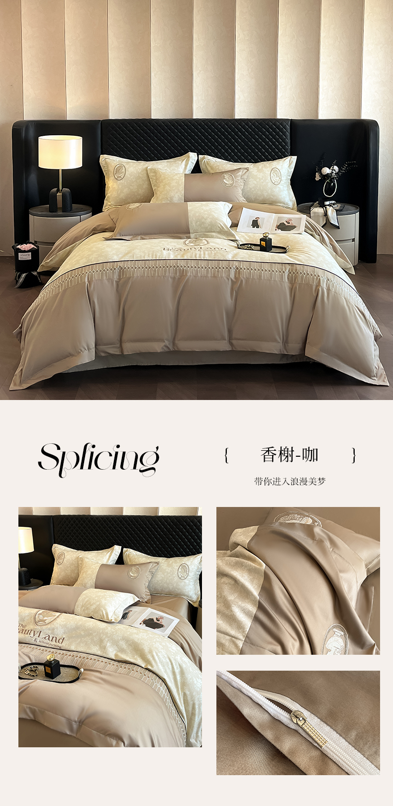 商品名称:苏美 2025新款全棉肌理纹绣花四件套-香榭 香榭-奶咖