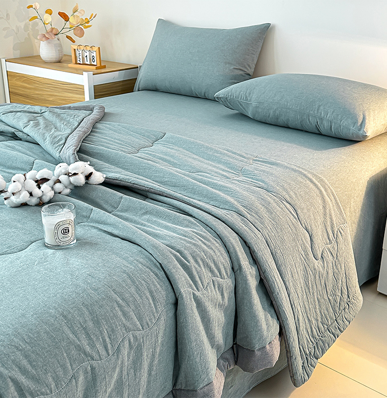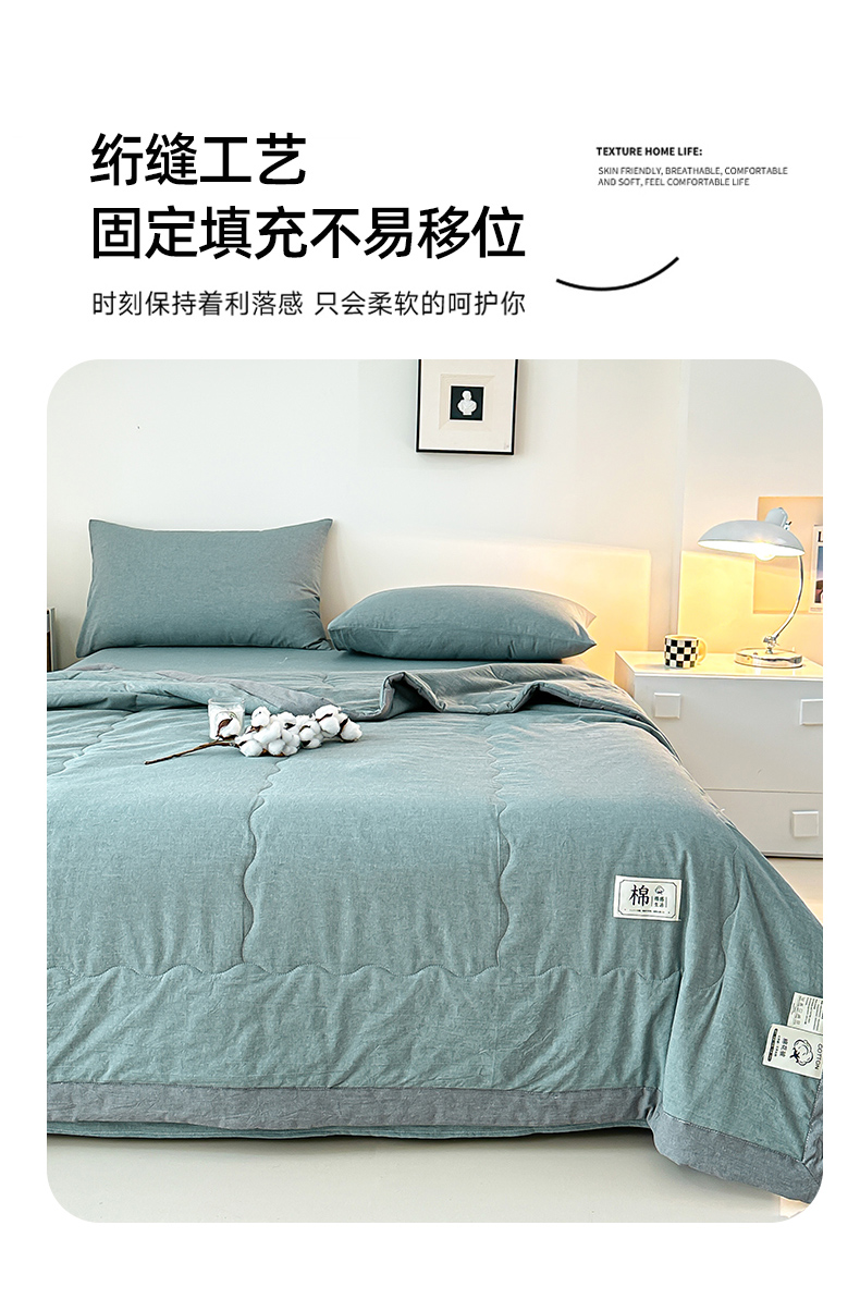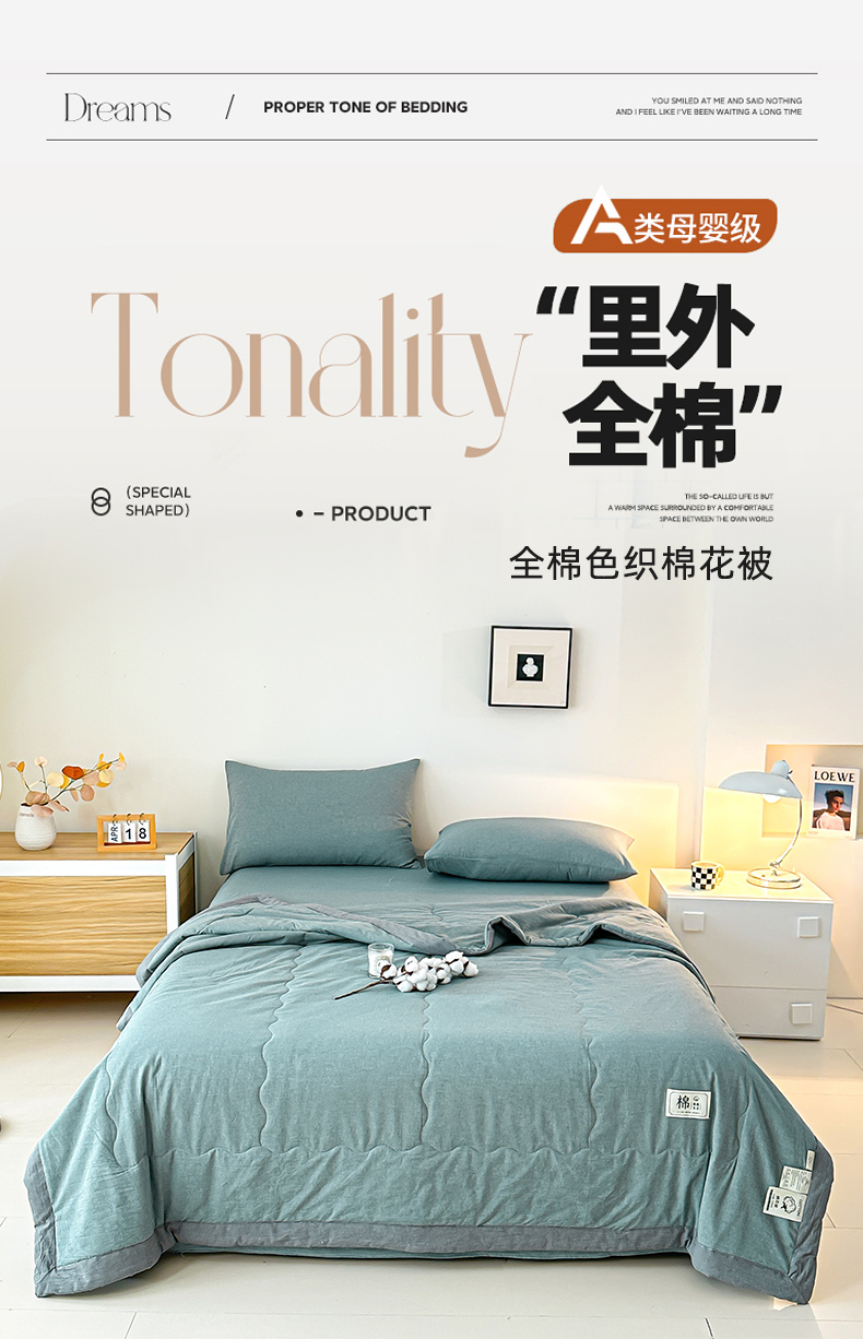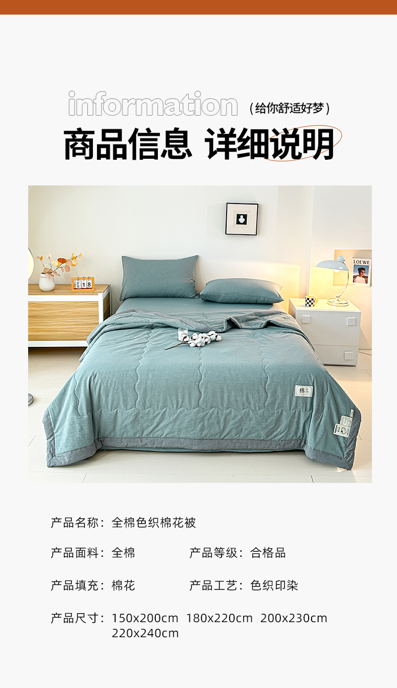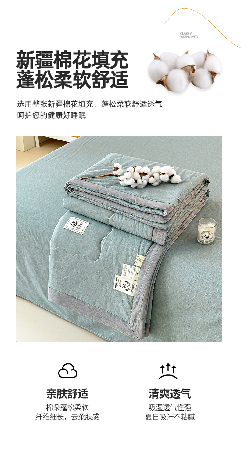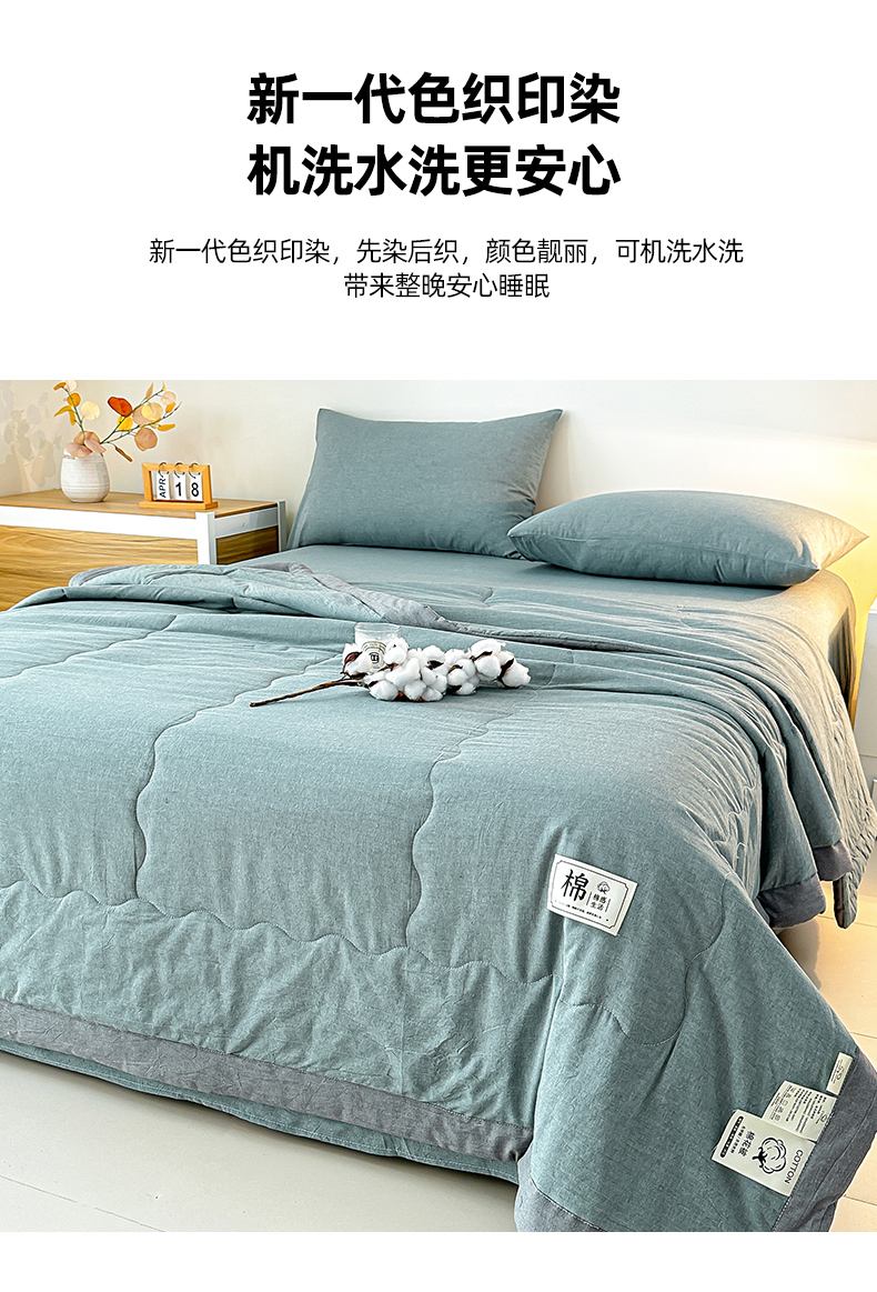 (总)圣尔雅 2025新款里外全棉色织夏被新疆棉花被纯棉被子空调被夏凉被,黛蓝,粉玉,卡其,墨绿,奶白,星灰