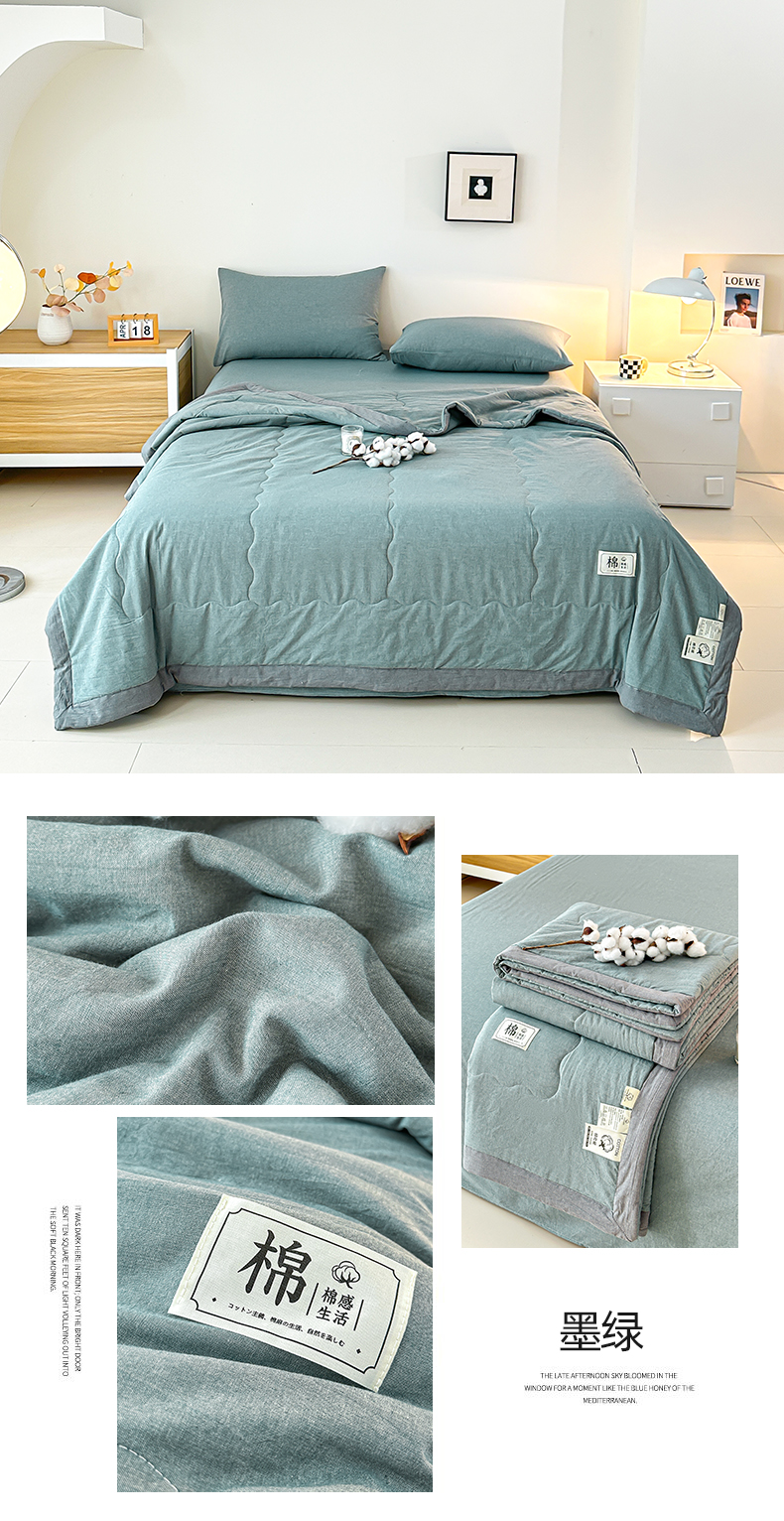 商品名称:圣尔雅 2025新款里外全棉色织夏被新疆棉花被纯棉被子空调被夏凉被 墨绿