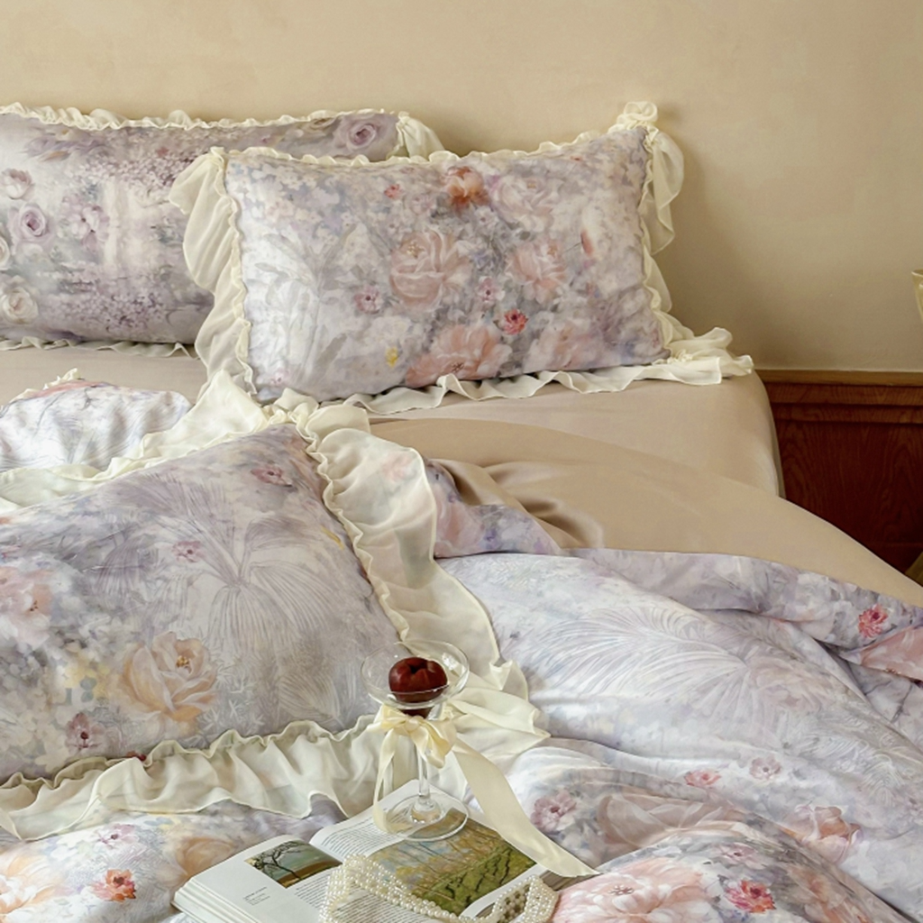 禾时 2025新款60支兰精天丝数码印花云纱四件套 岚香