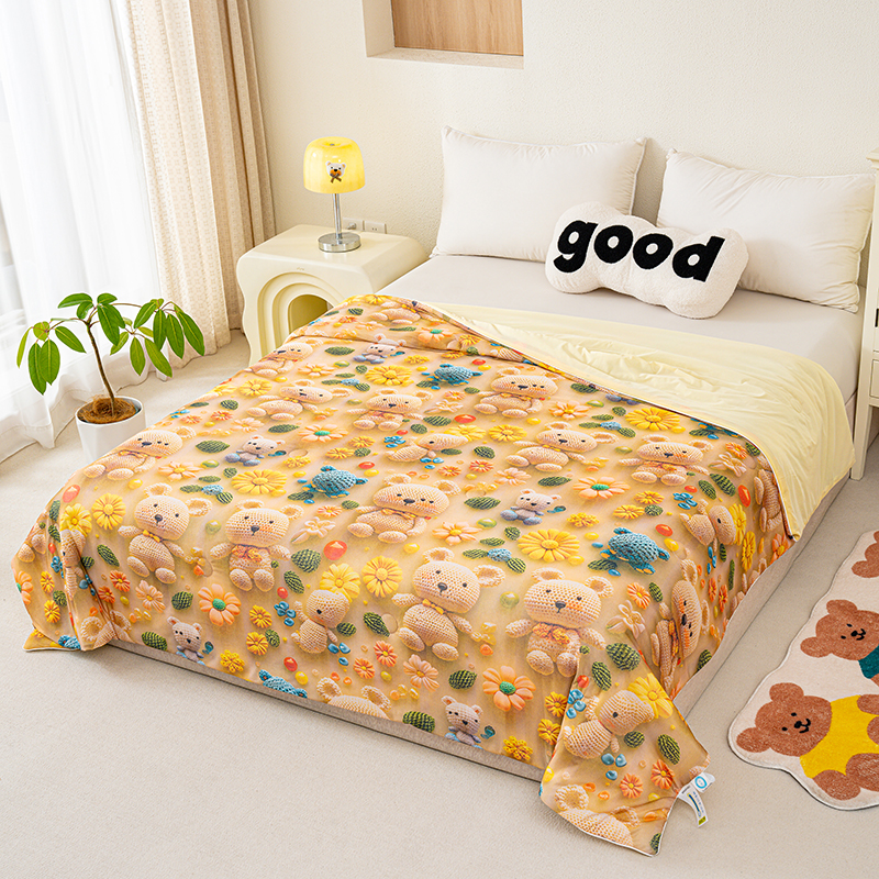 (总)归属 2025新款5D立体印花凉感丝夏被夏凉被空调被,活力熊