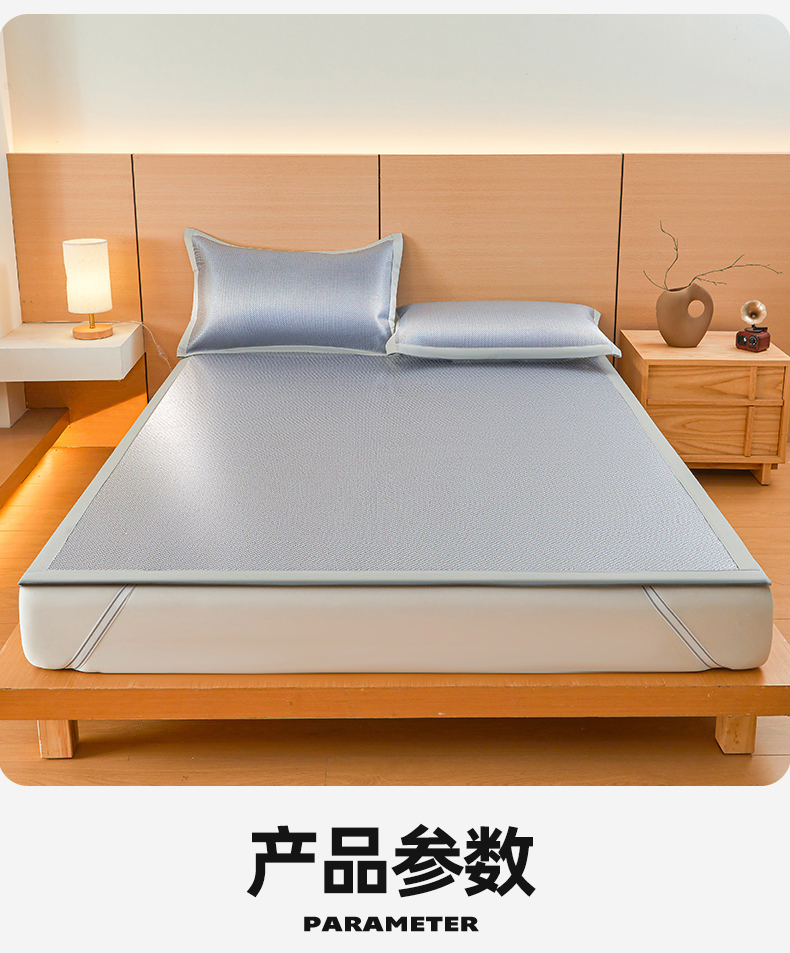 商品名称:雯豆家纺 2025夏季新款冰藤凉席三件套纯色绑带款冰丝凉席子素色套件 冰藤席-摩登蓝