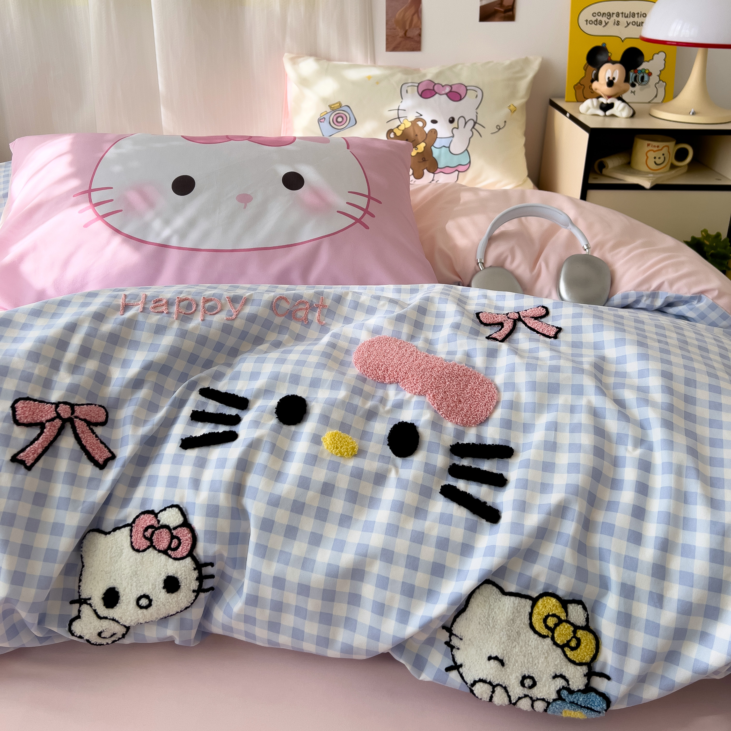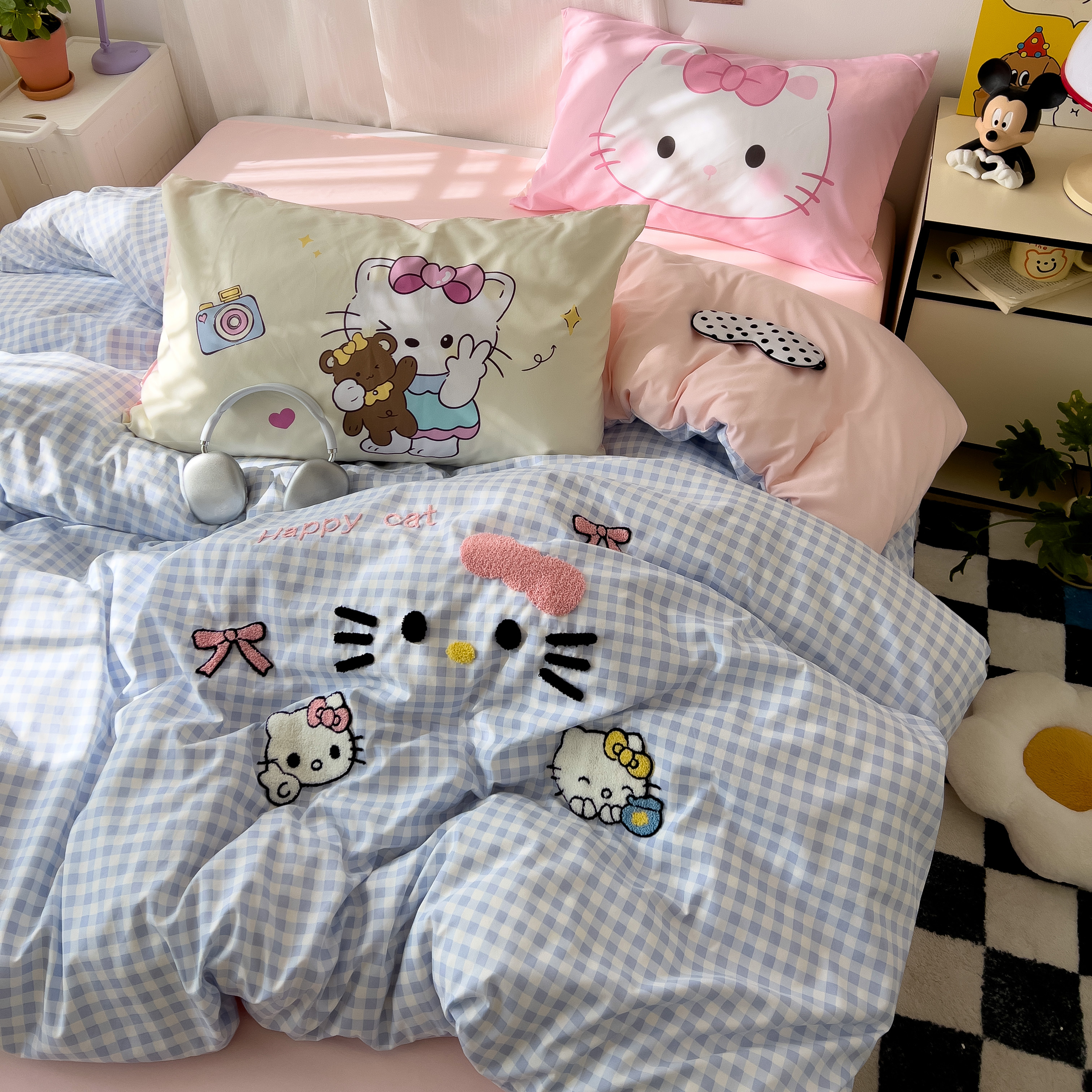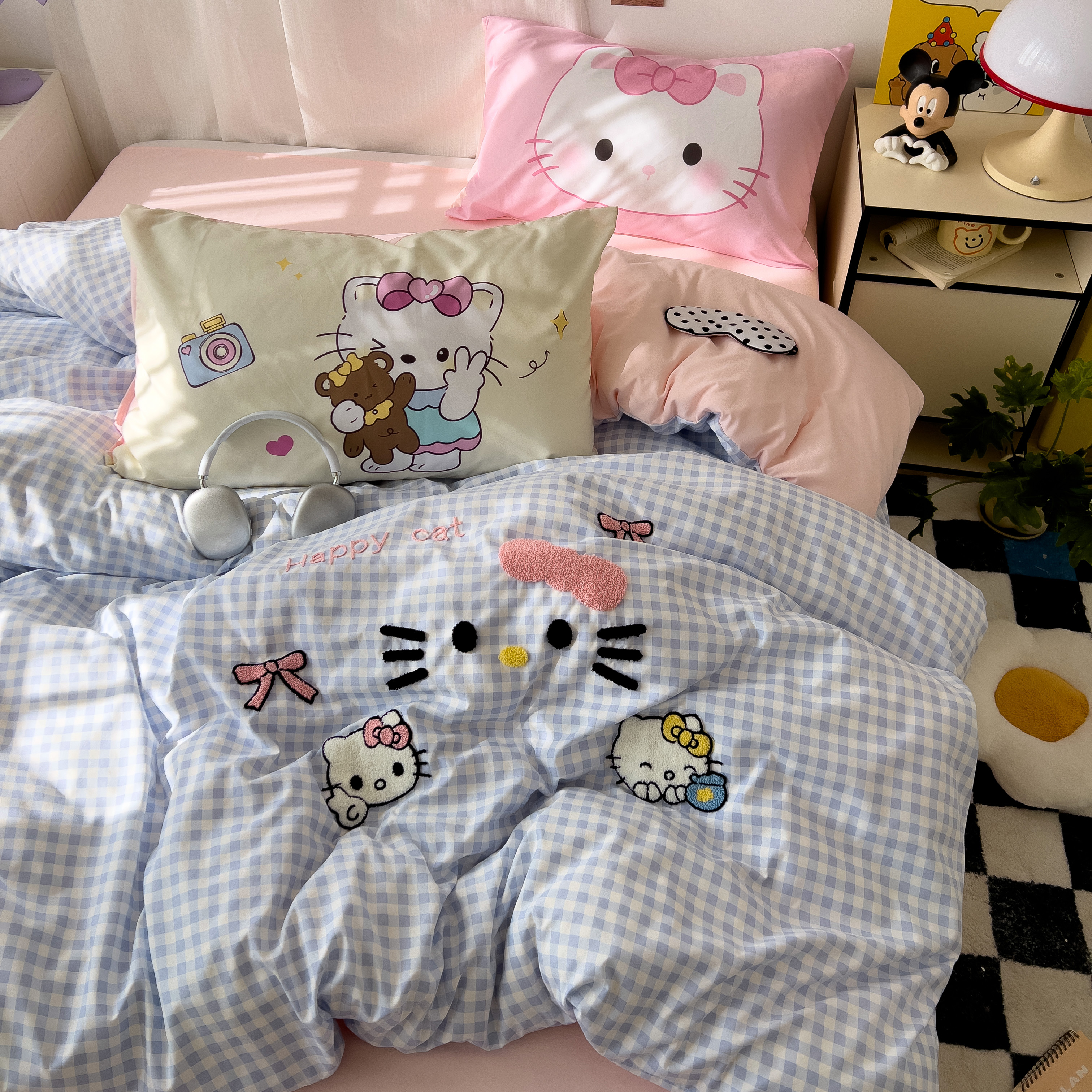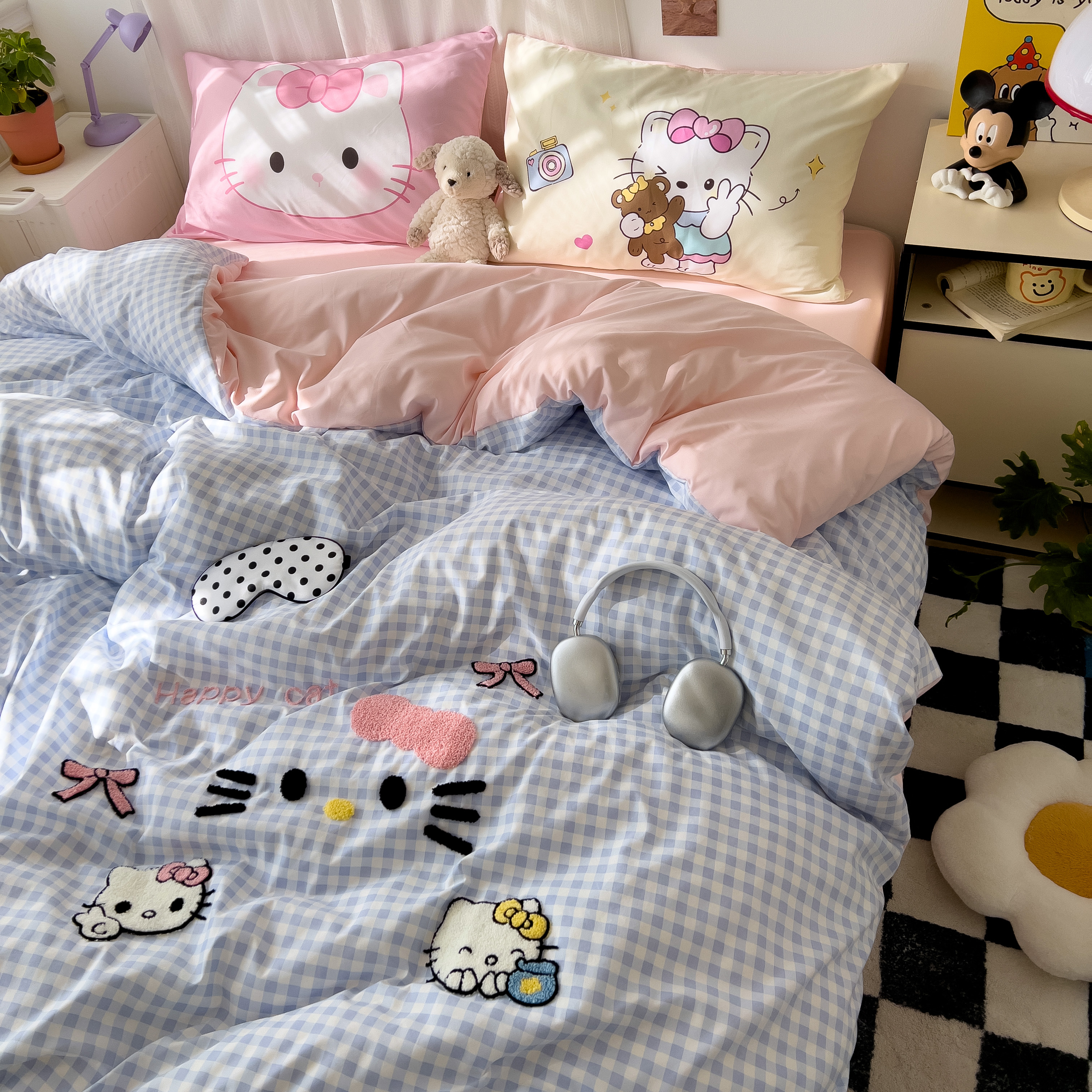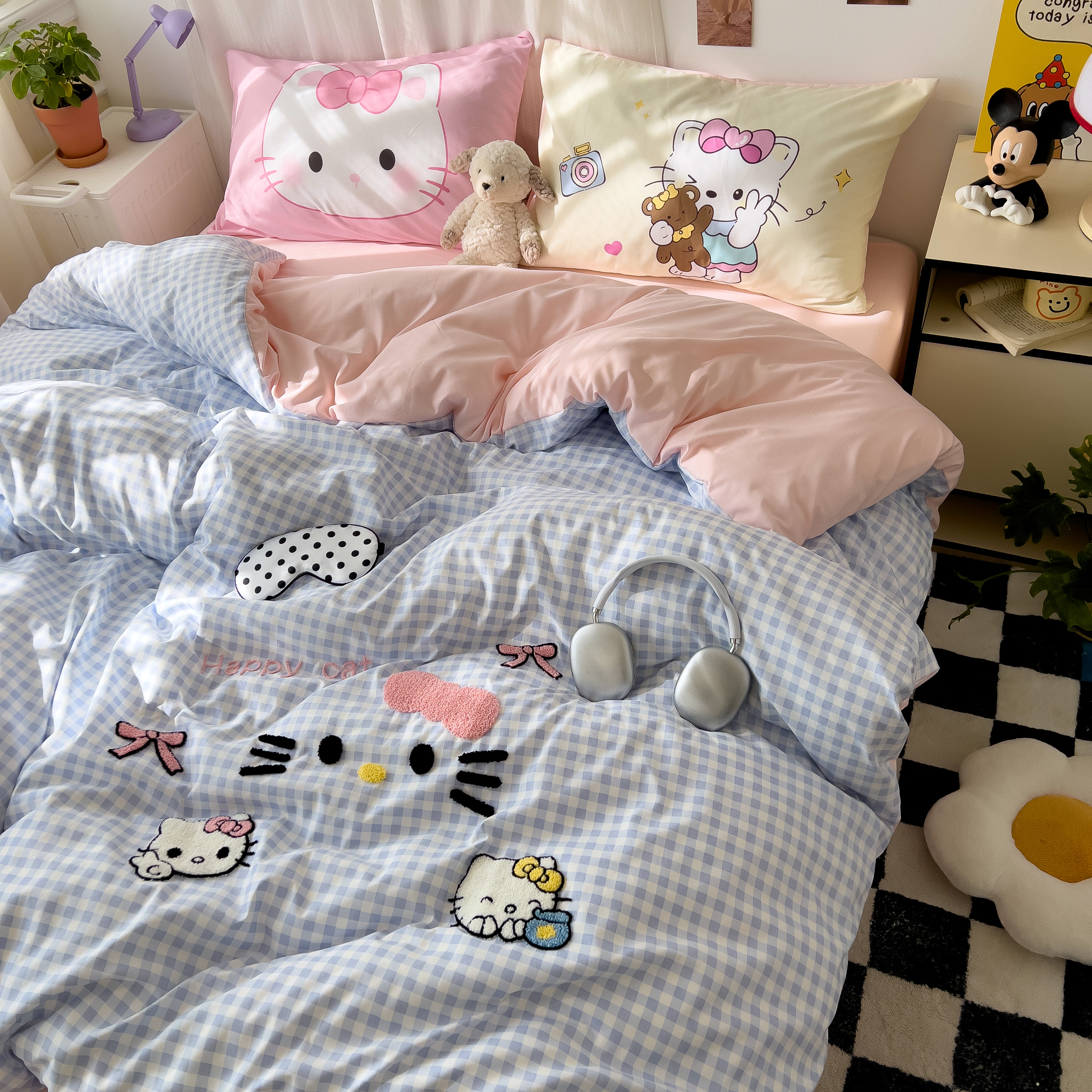 一霖家纺 2025新款高克重云朵棉数码印花+毛巾绣四件套 蕾拉小猫