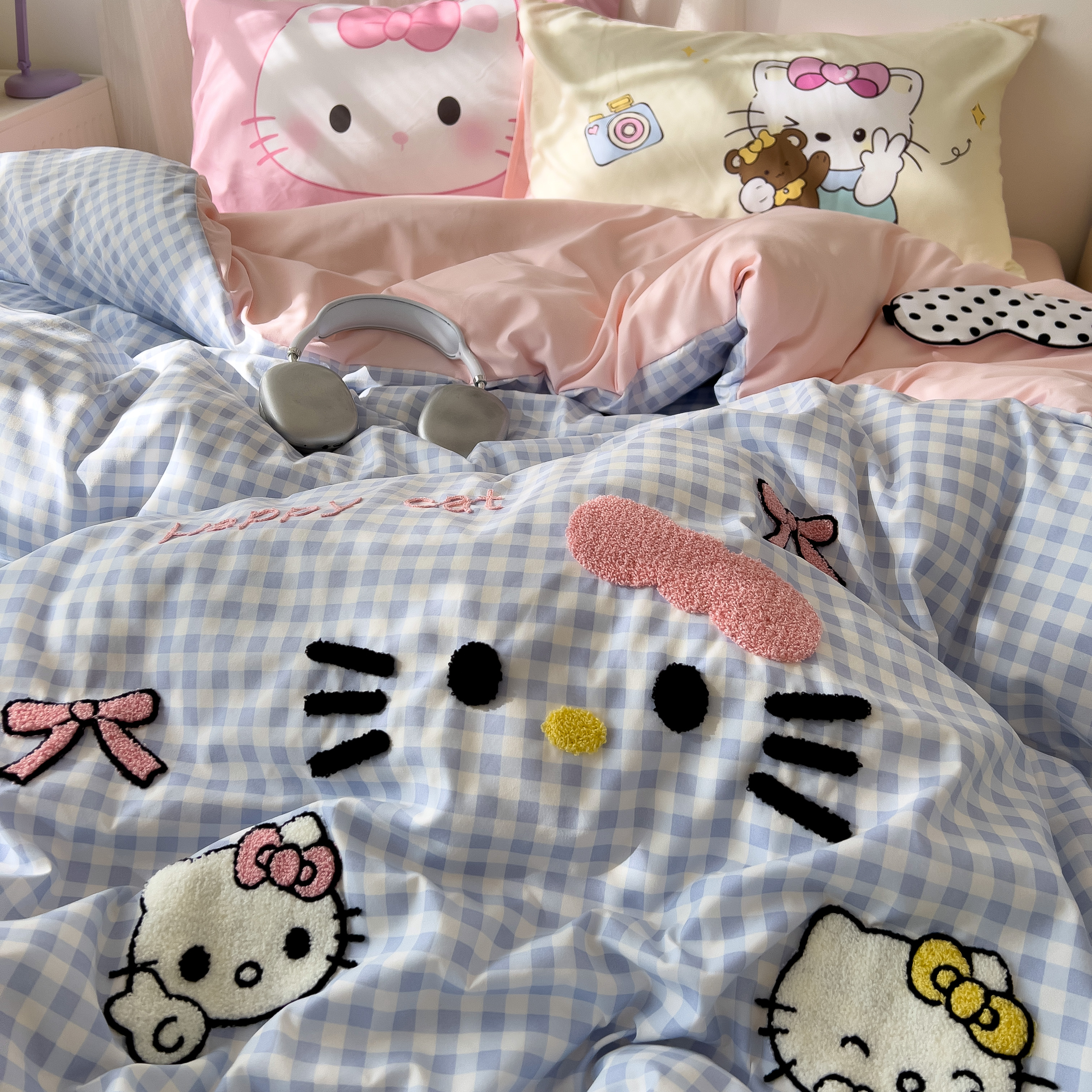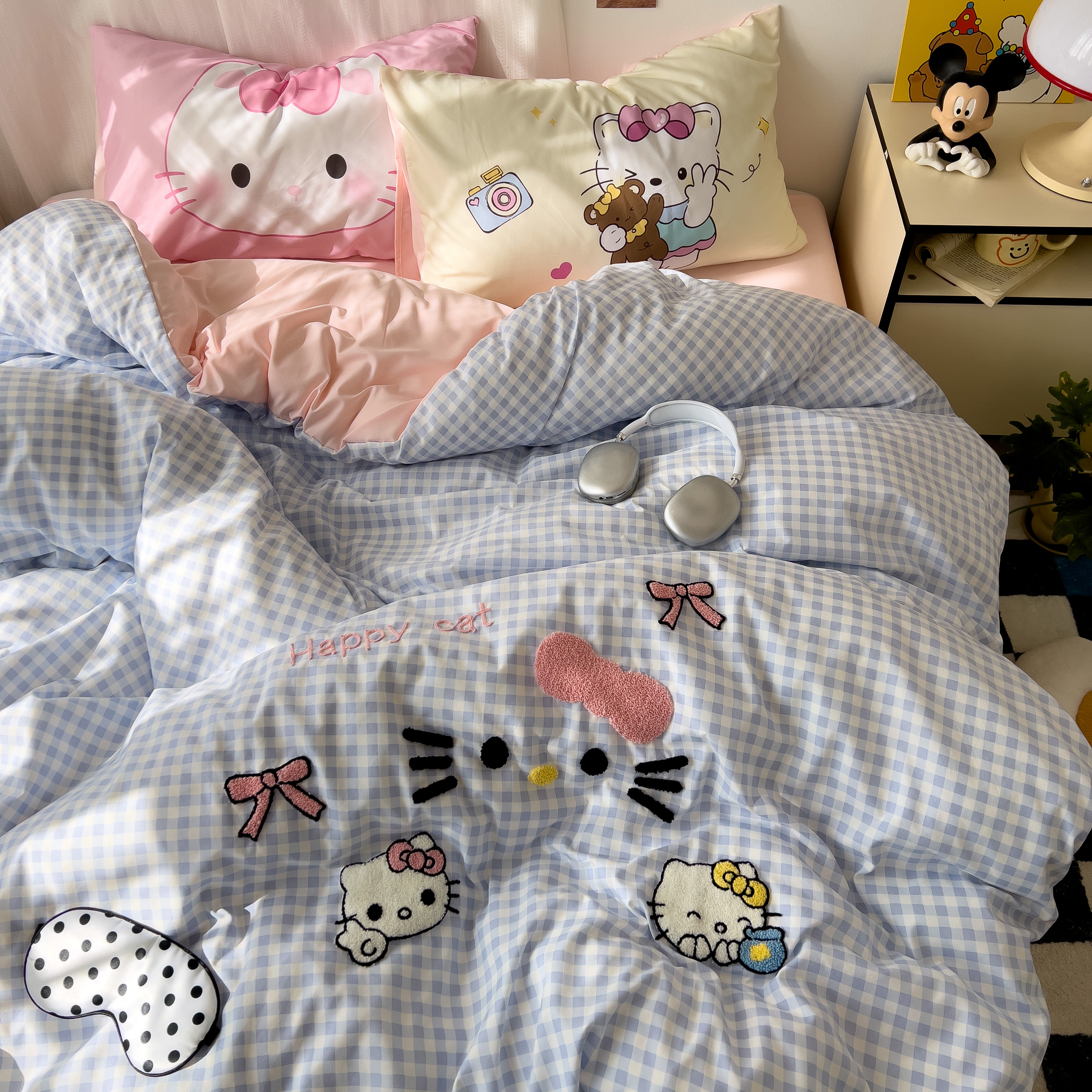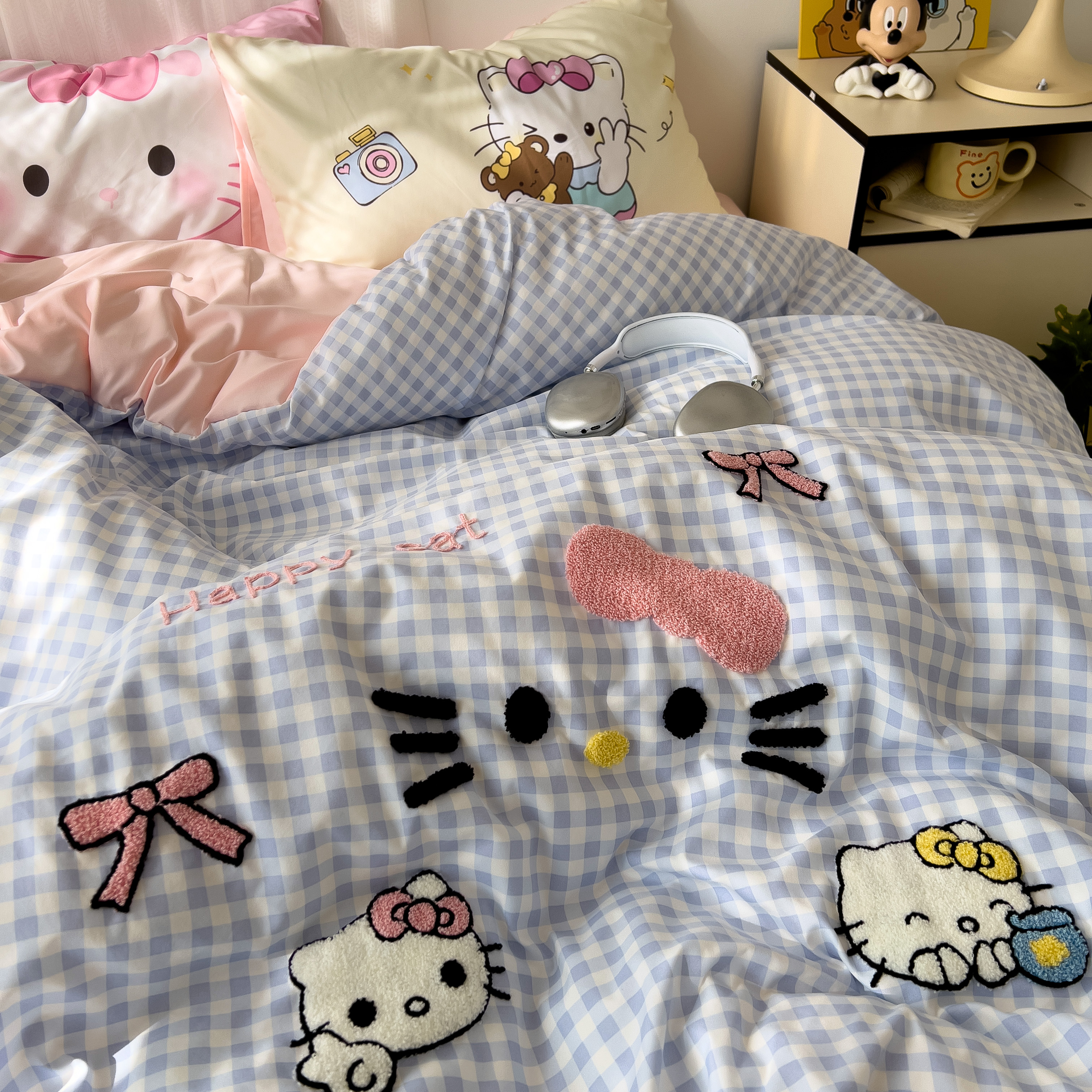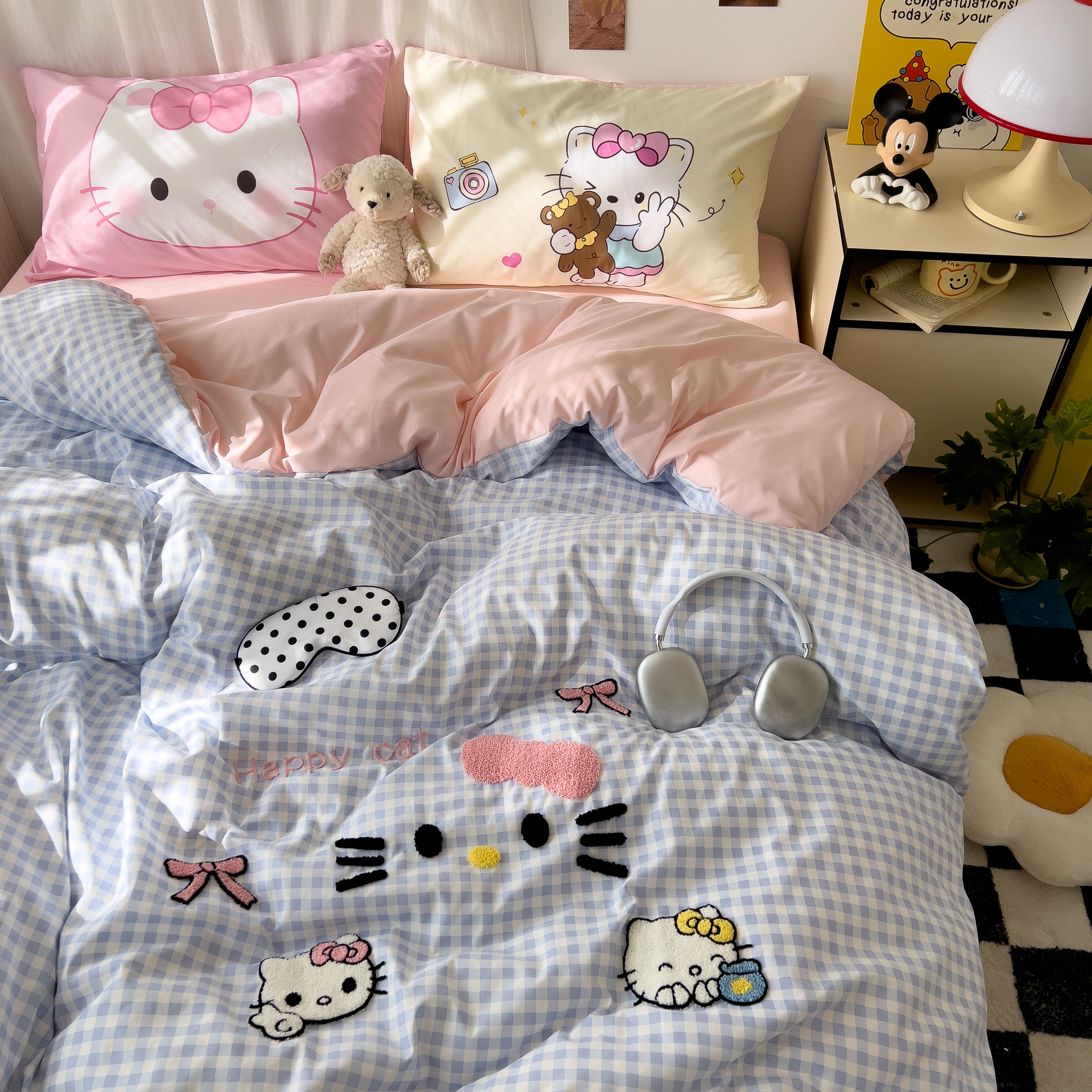 一霖家纺 2025新款高克重云朵棉数码印花+毛巾绣四件套 蕾拉小猫