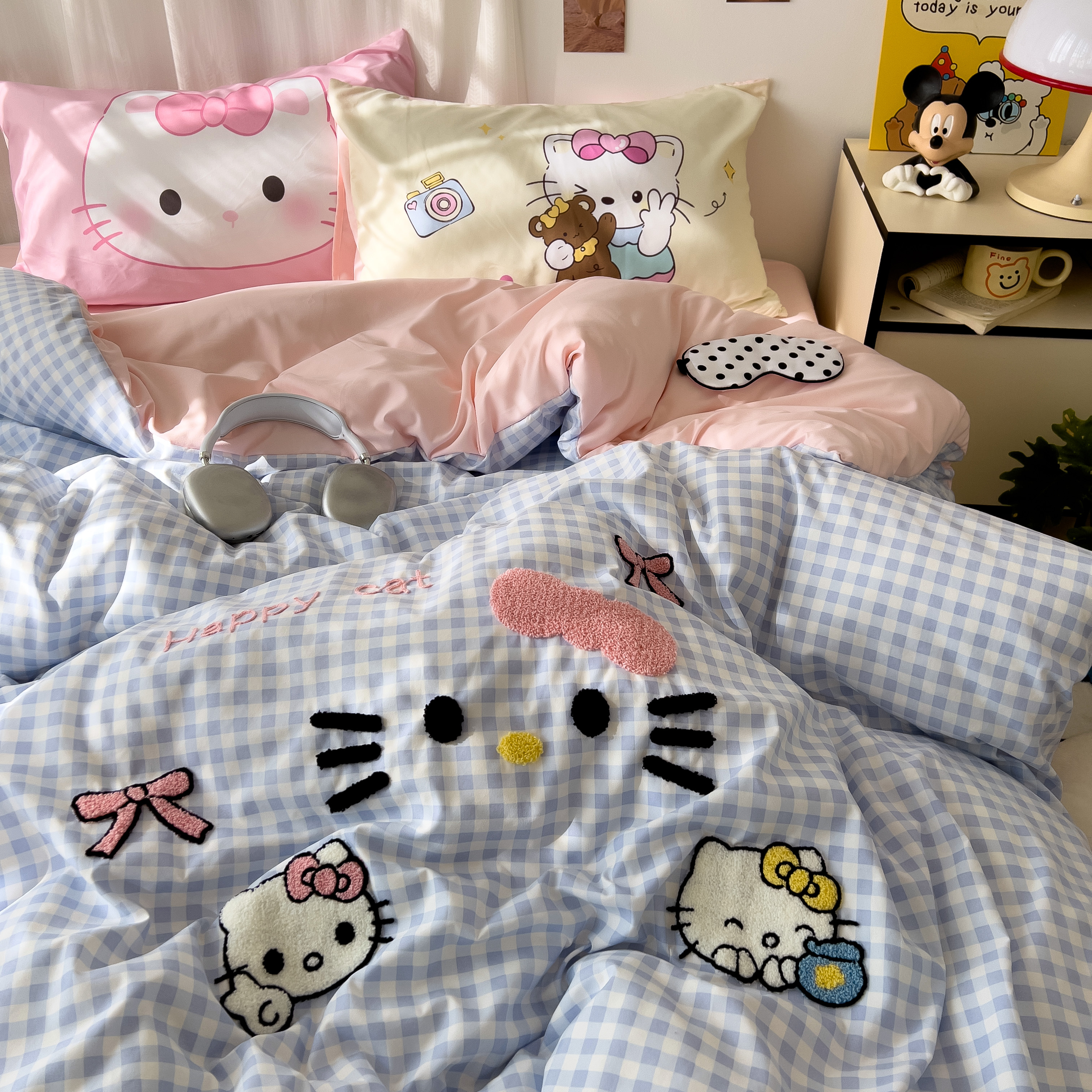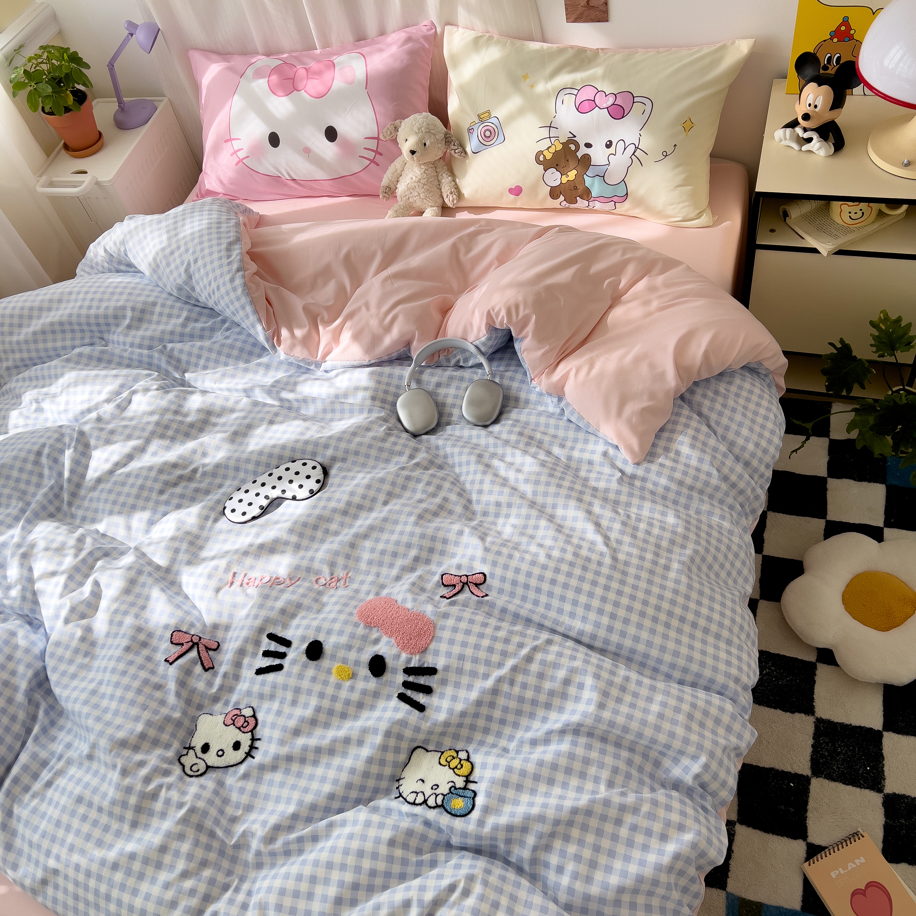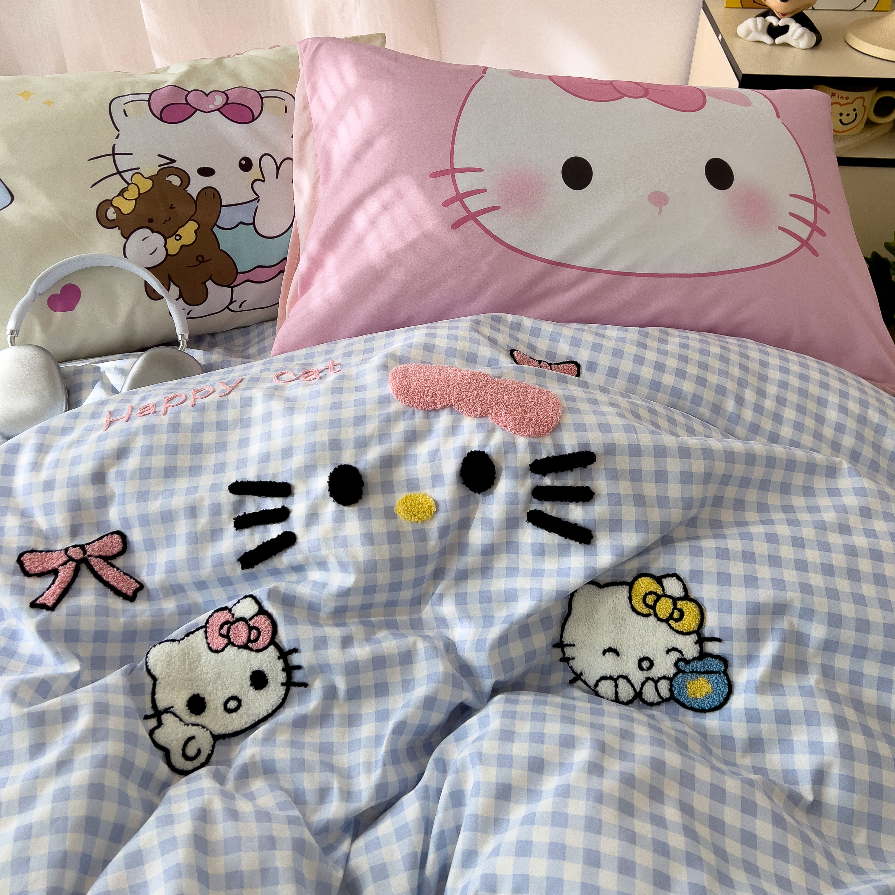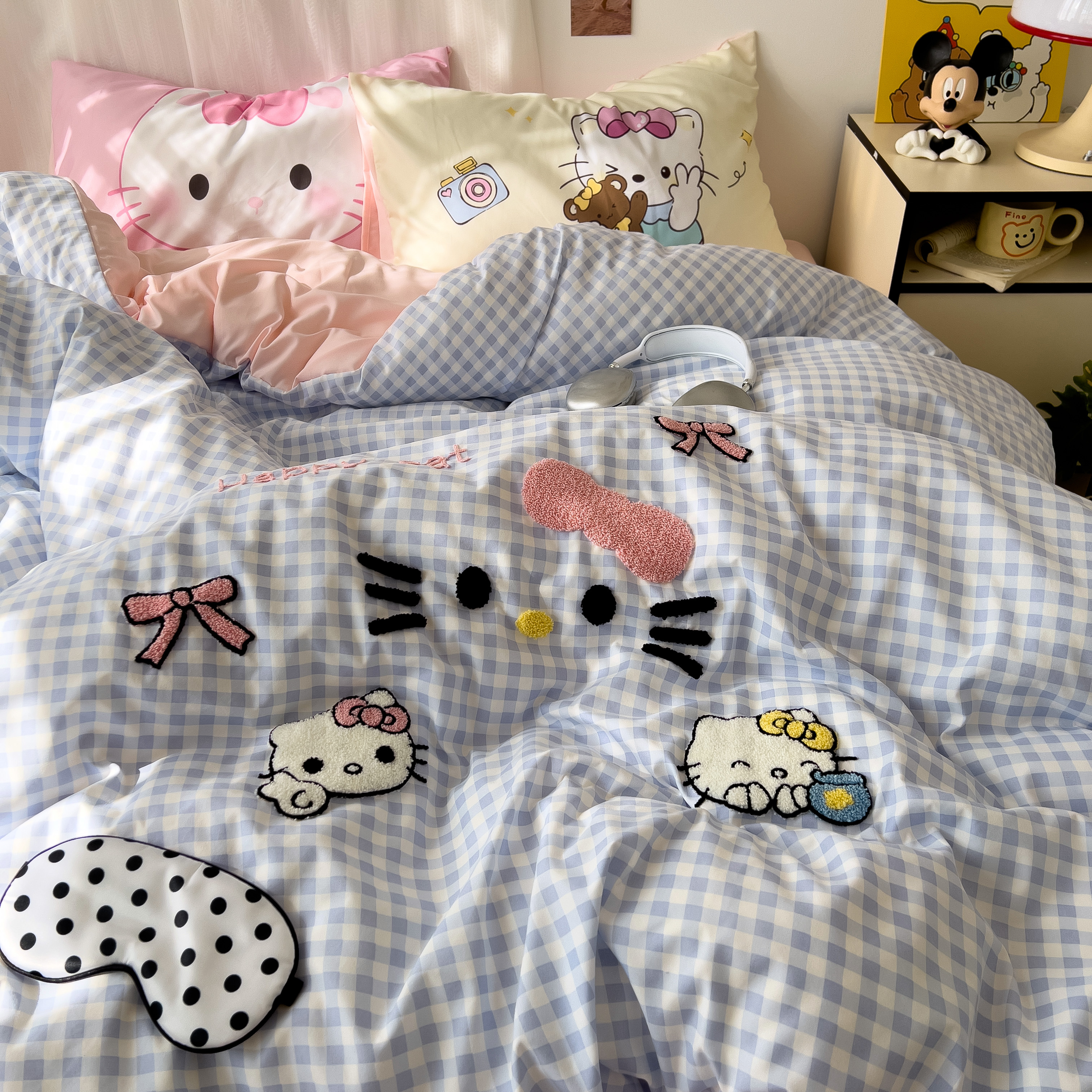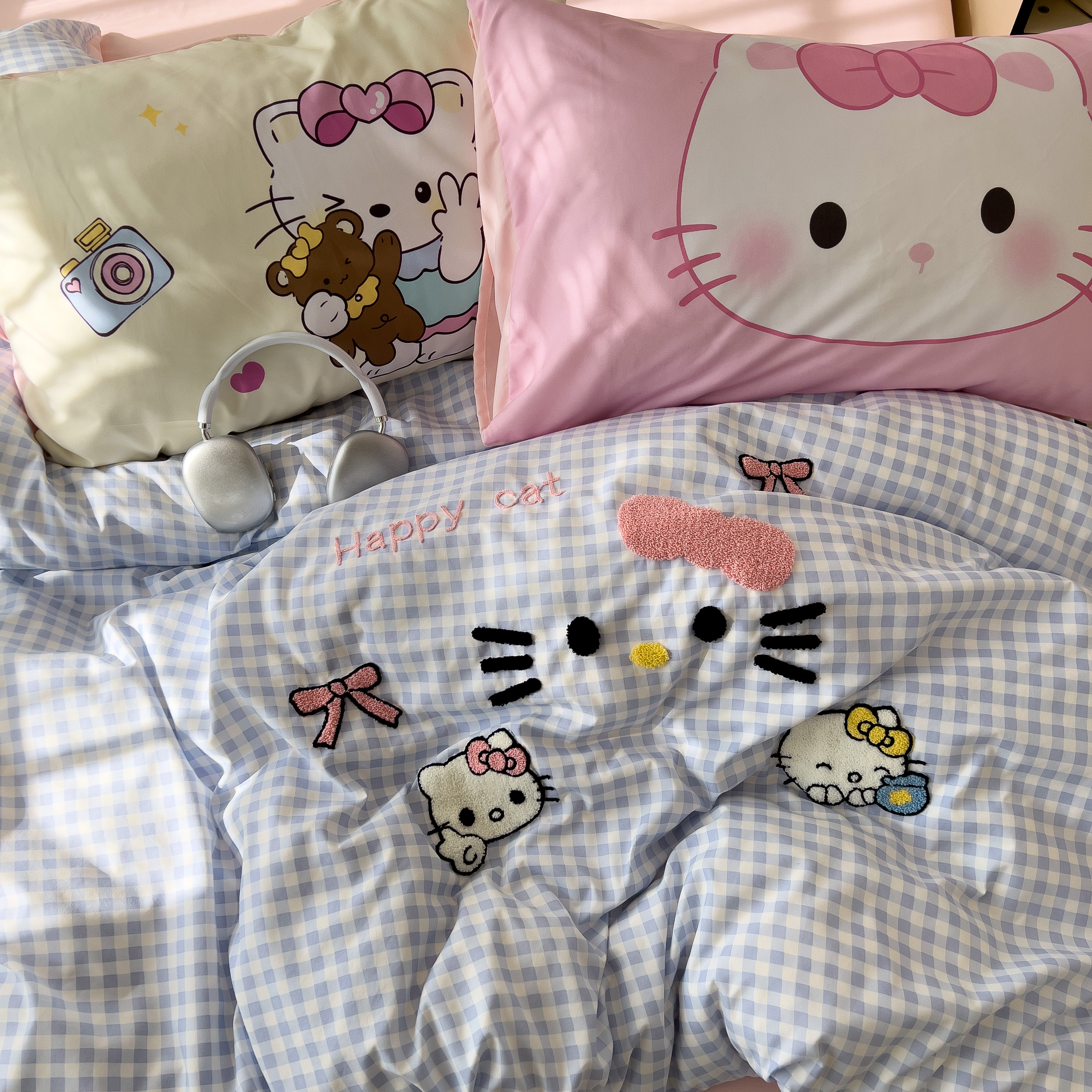 一霖家纺 2025新款高克重云朵棉数码印花+毛巾绣四件套 蕾拉小猫