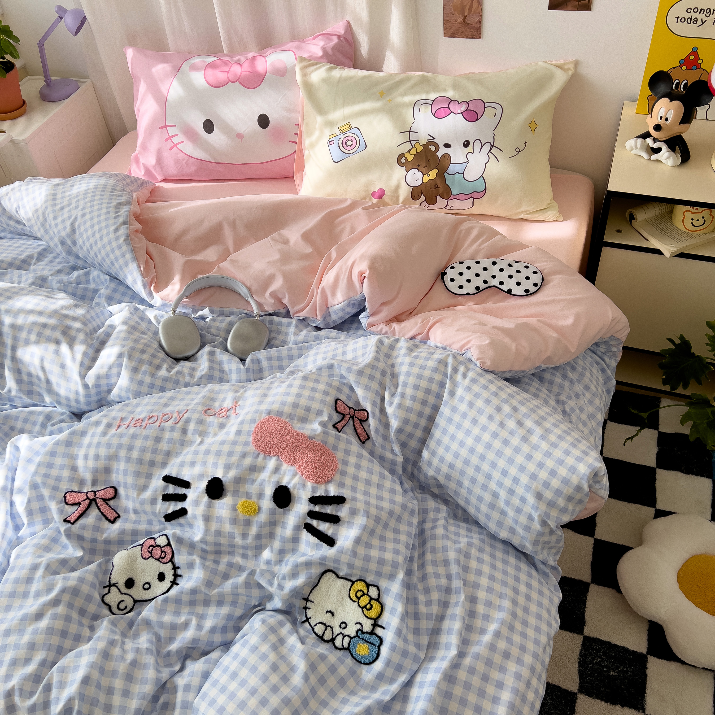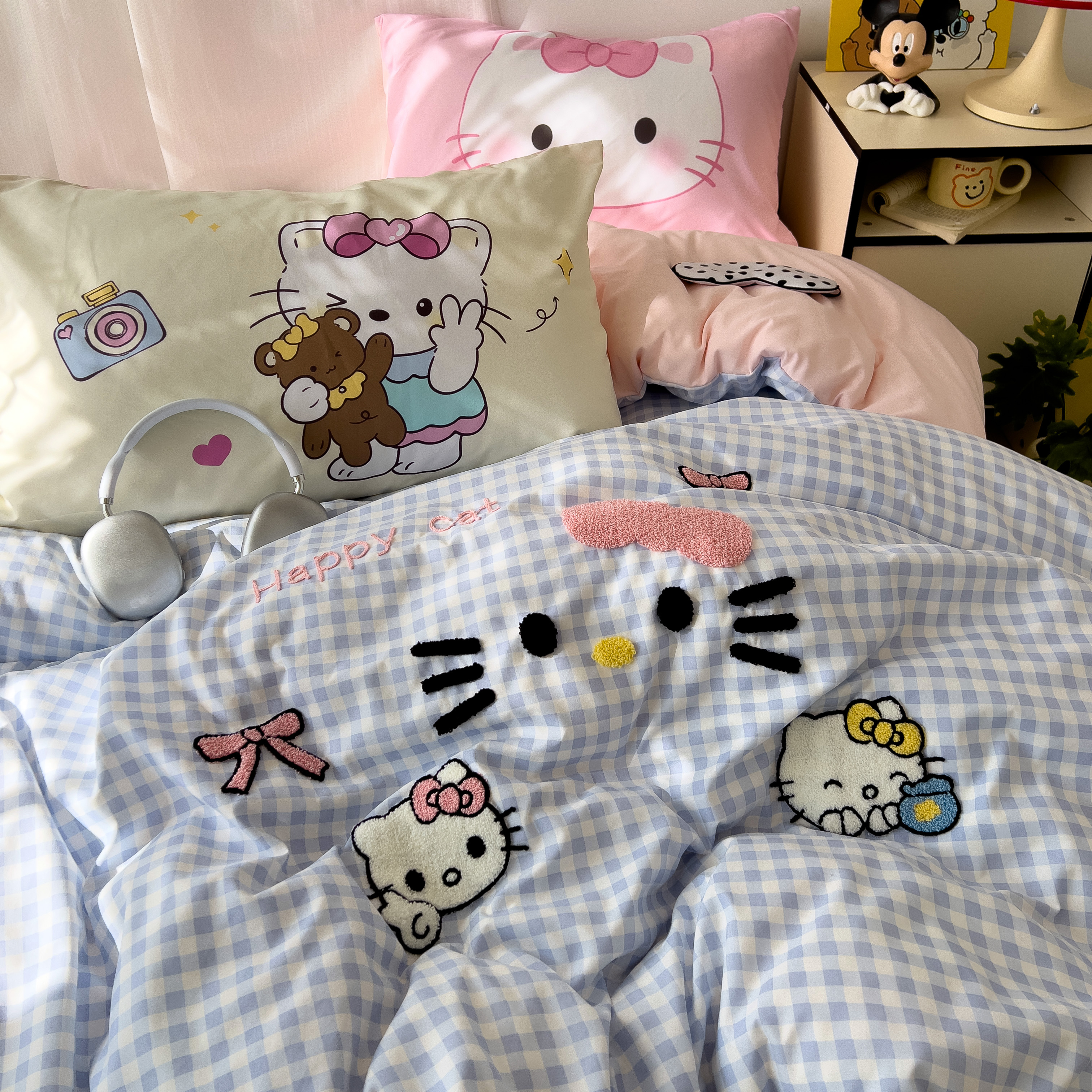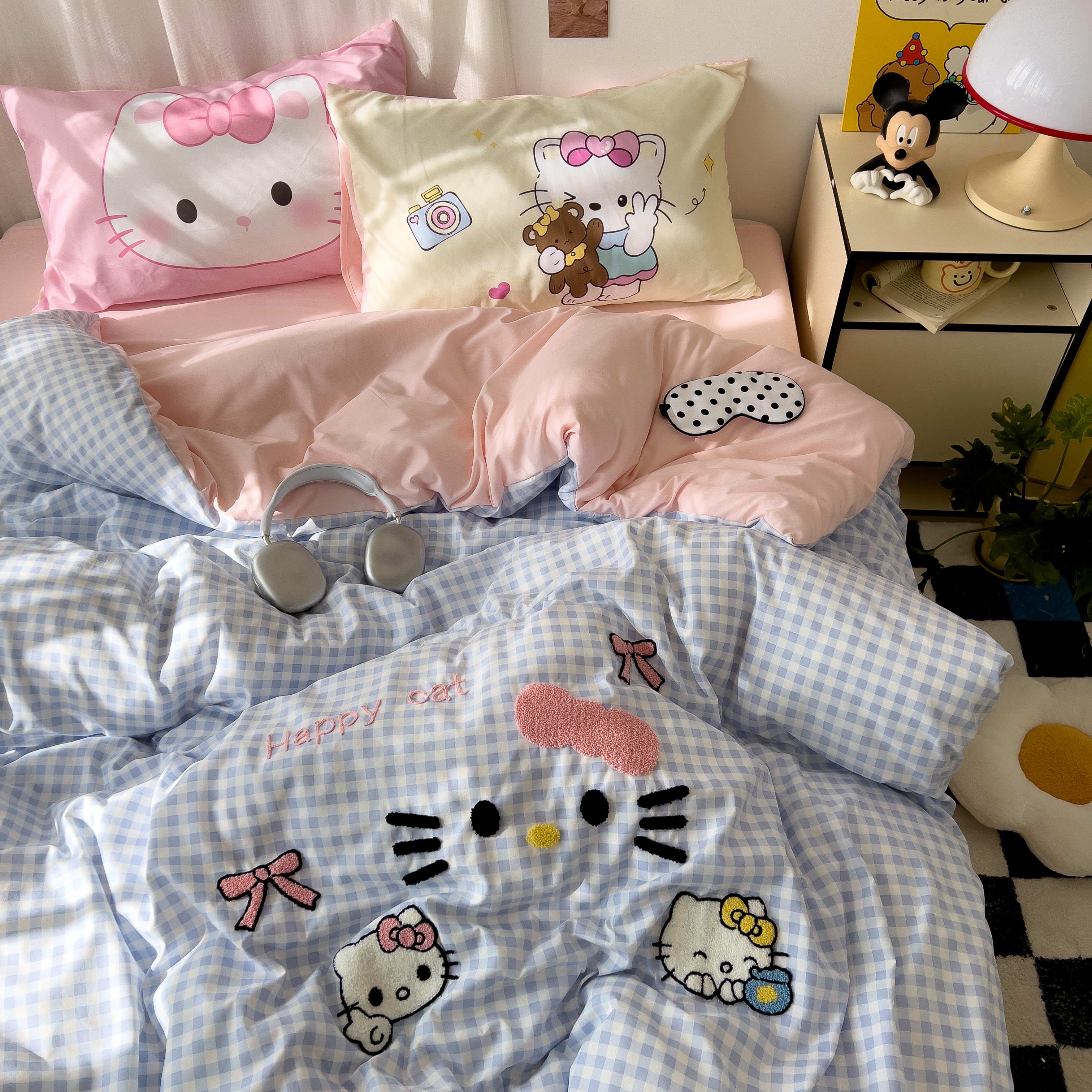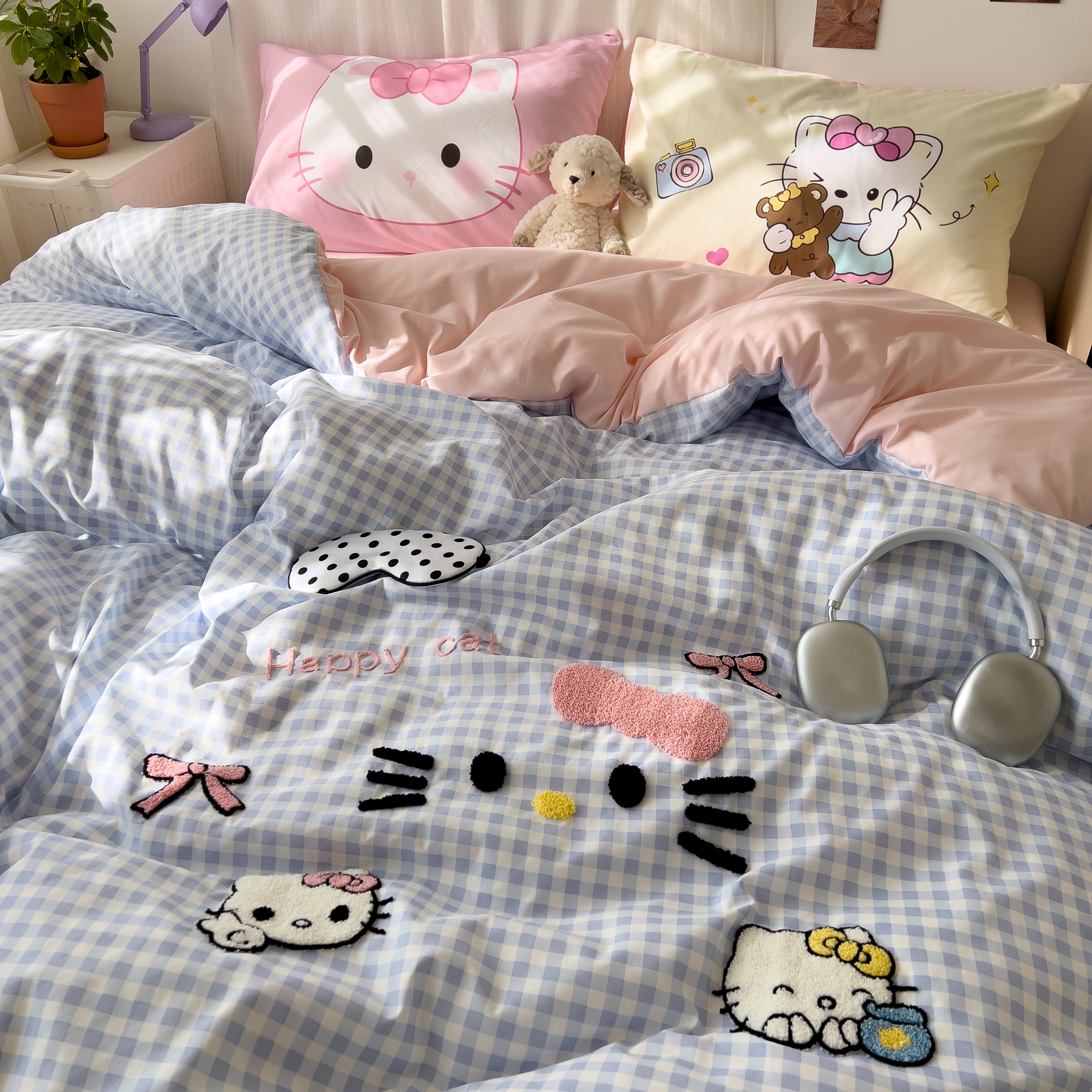 一霖家纺 2025新款高克重云朵棉数码印花+毛巾绣四件套 蕾拉小猫