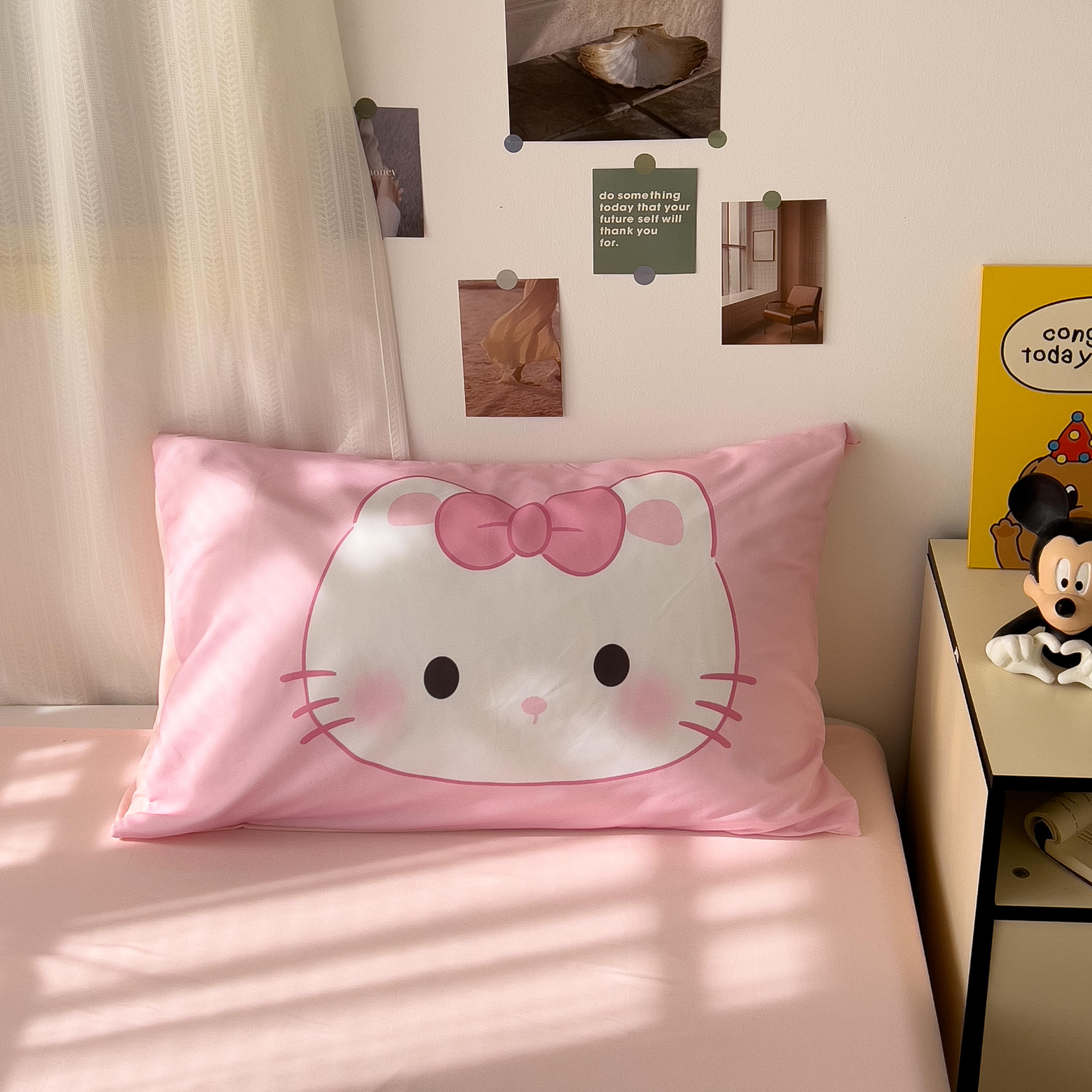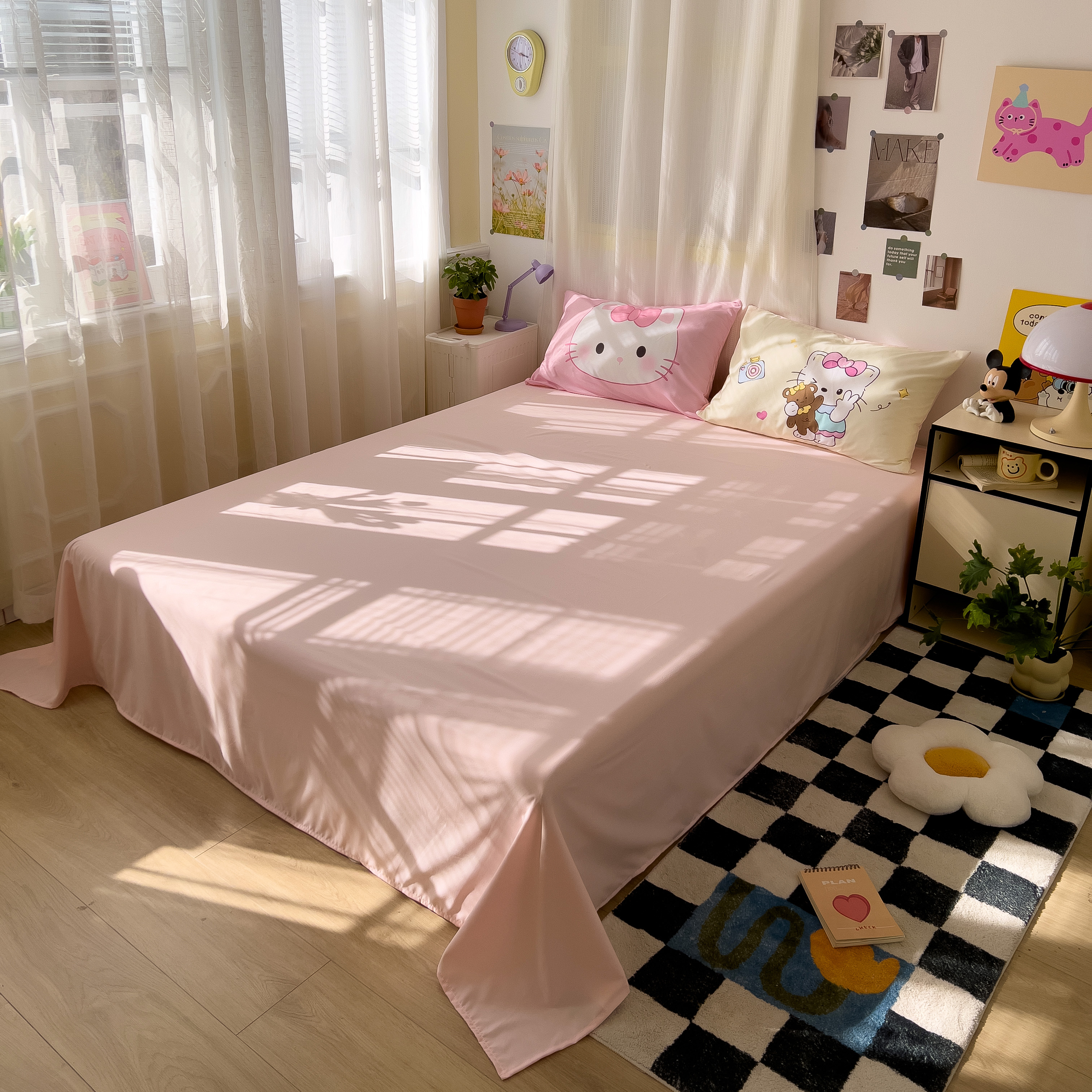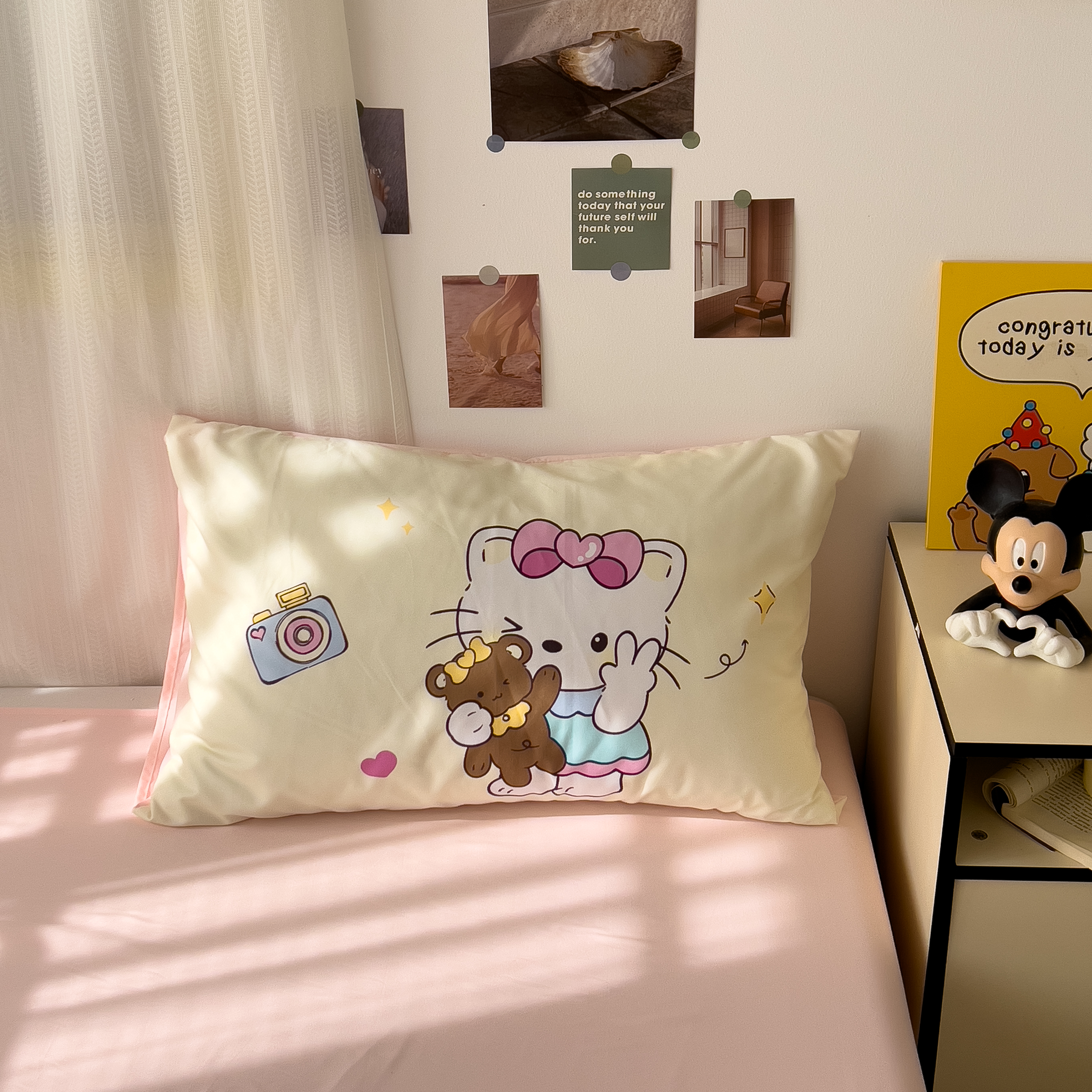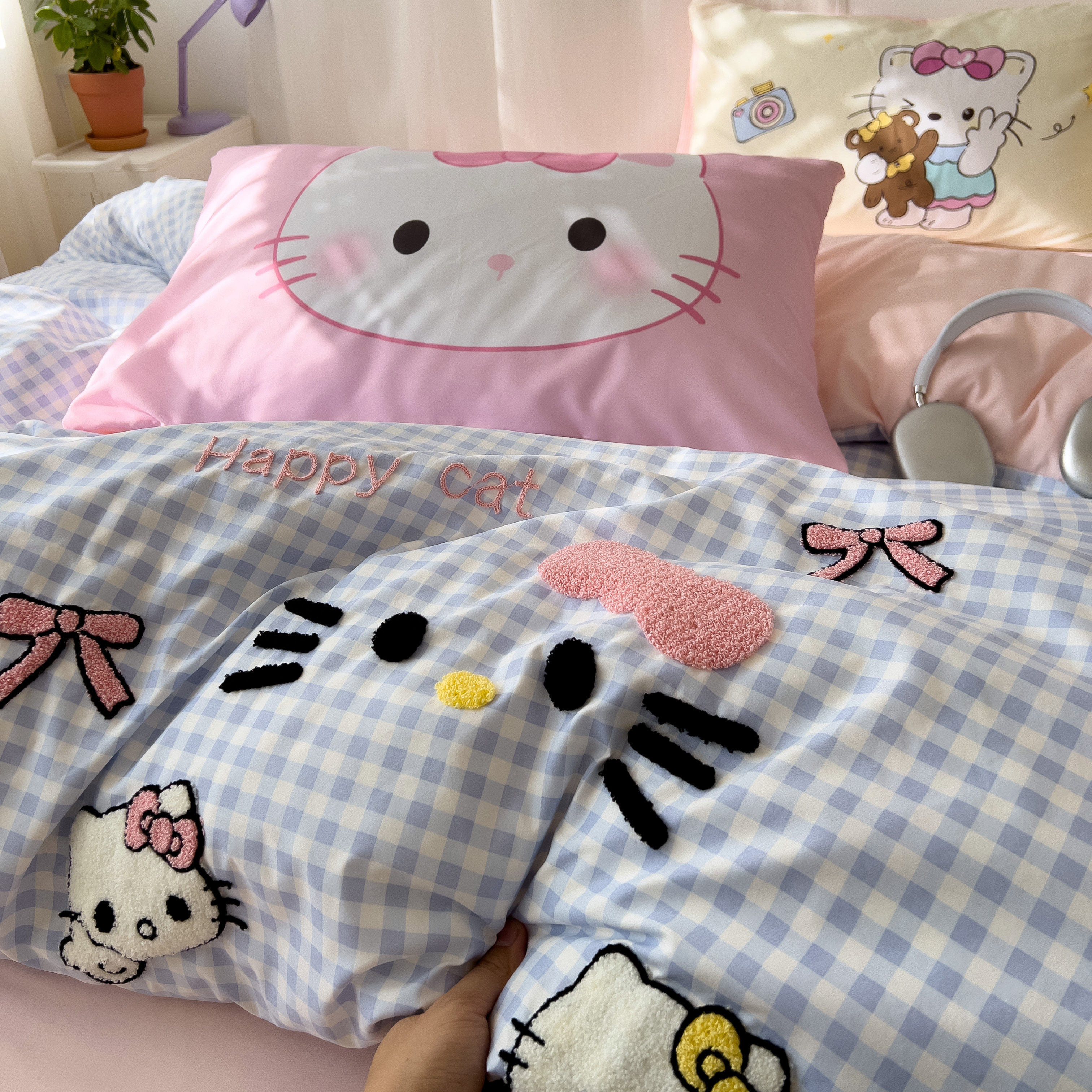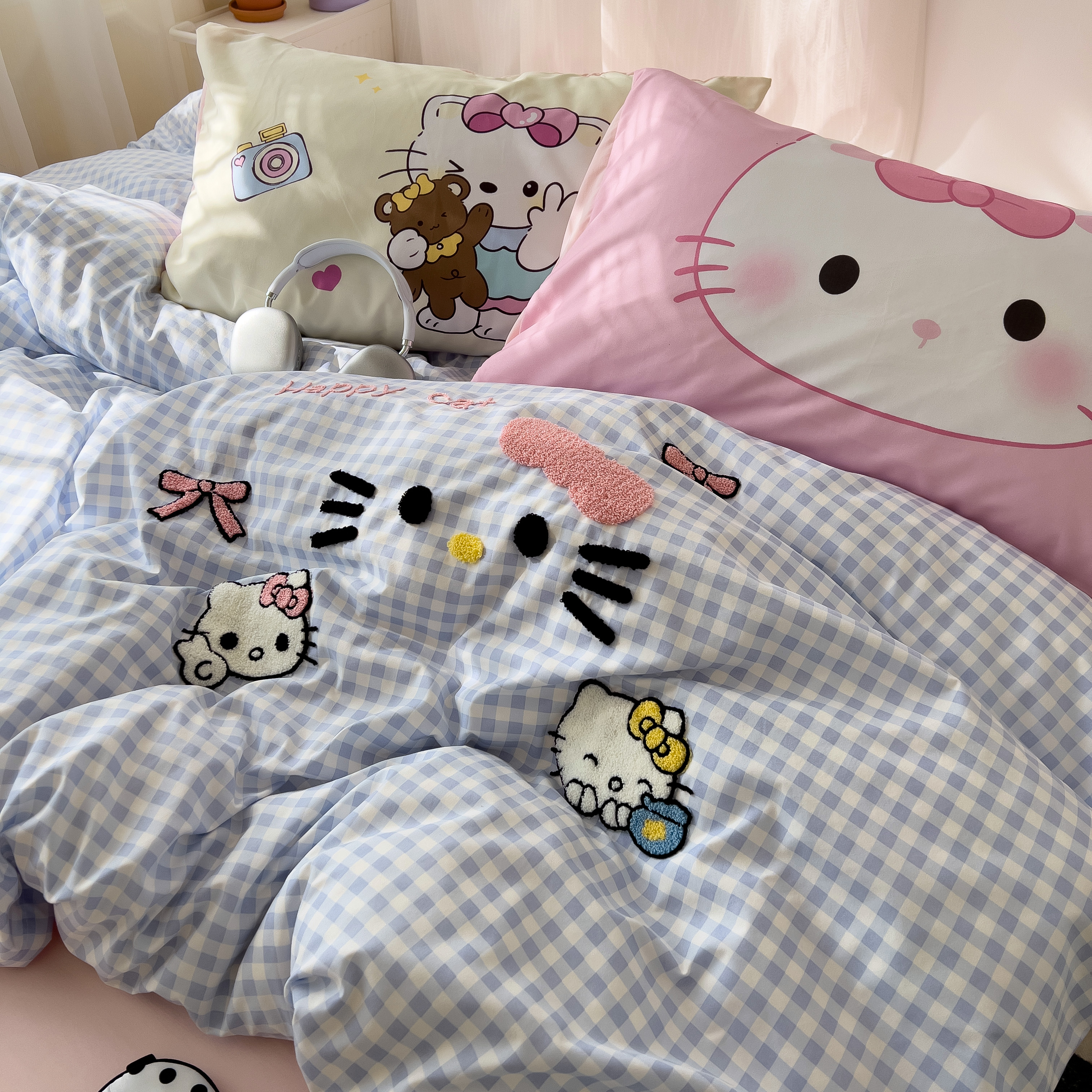 一霖家纺 2025新款高克重云朵棉数码印花+毛巾绣四件套 蕾拉小猫