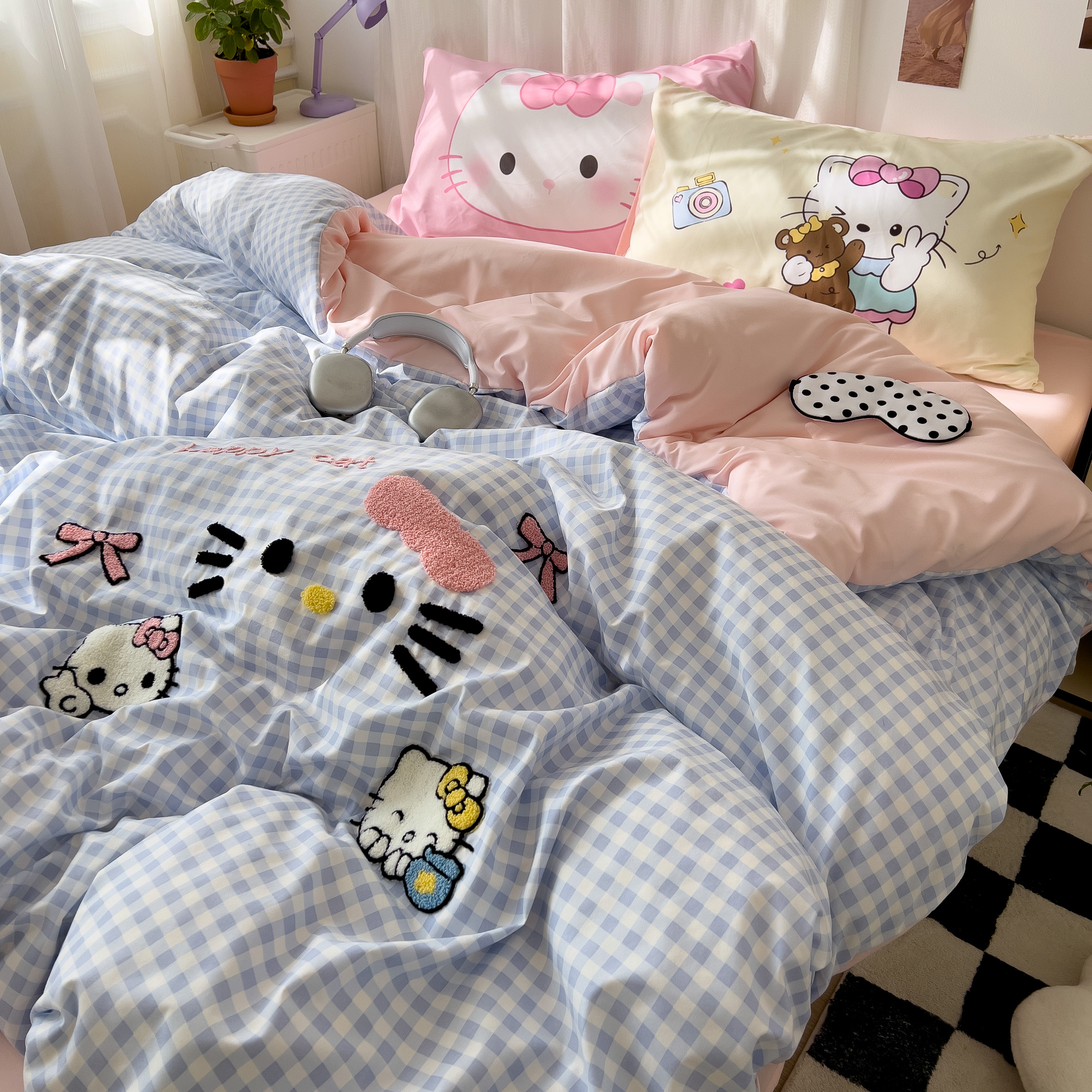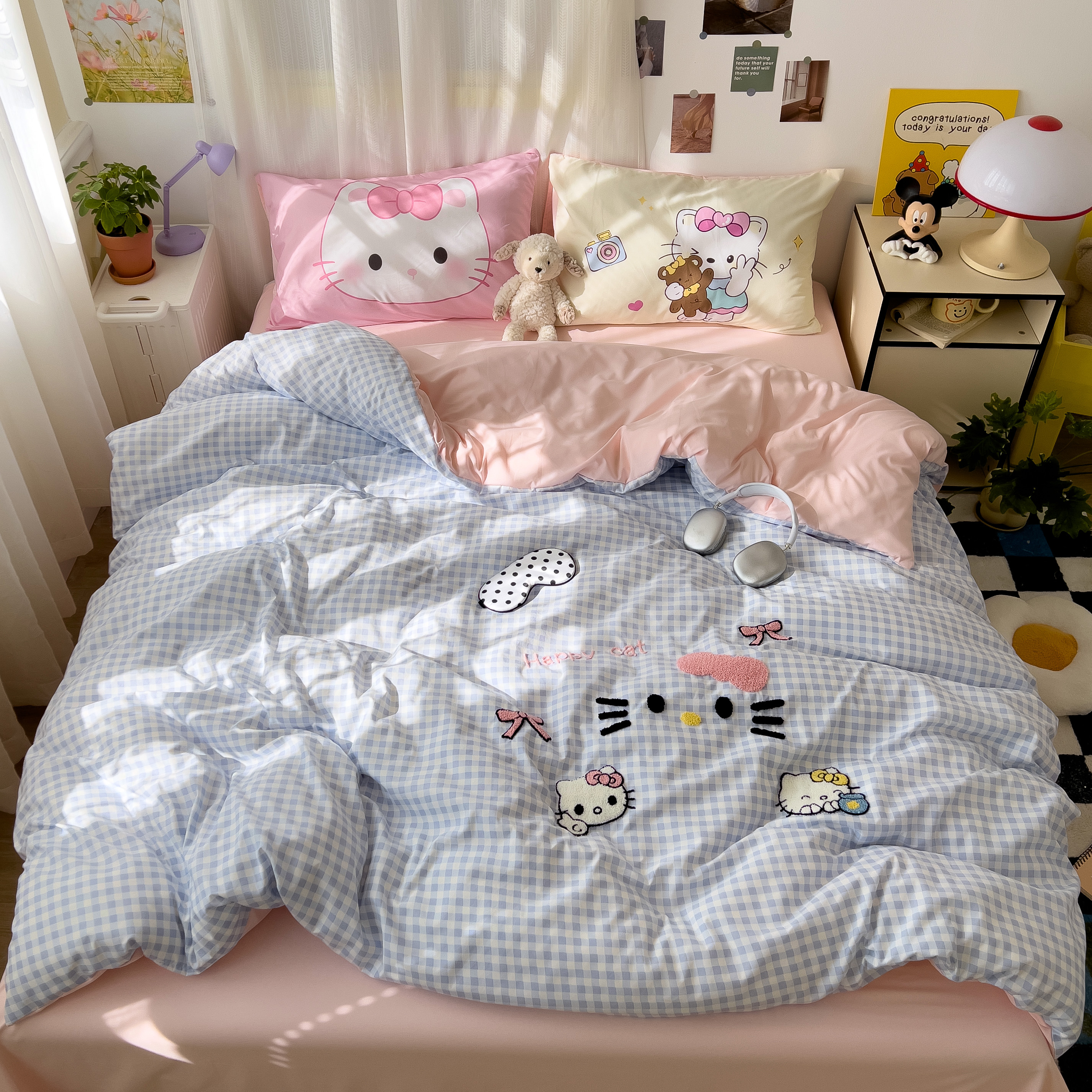 商品名称:一霖家纺 2025新款高克重云朵棉数码印花+毛巾绣四件套 蕾拉小猫