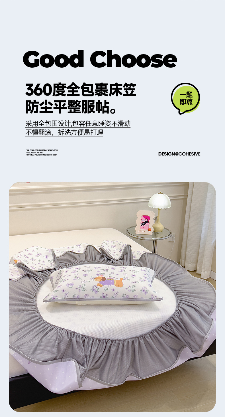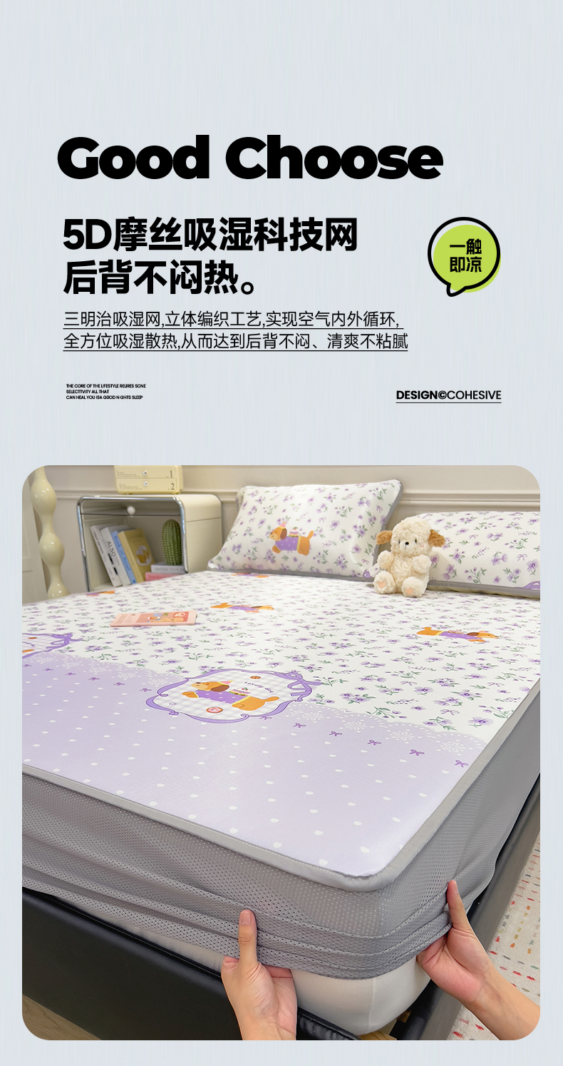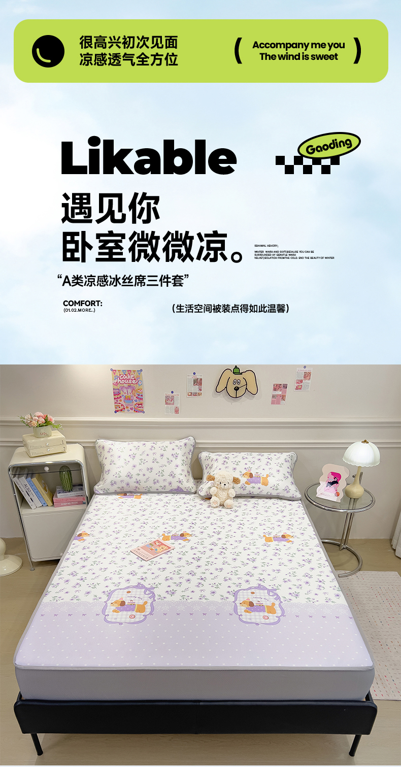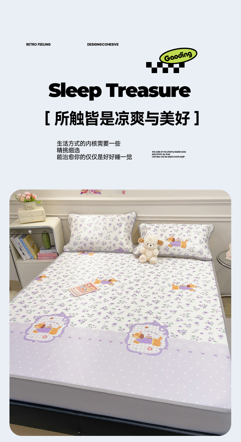 当前位置: 91家纺网 > 商品网购 > 床上用品 > 凉席 > 凉席套件 > 摩妮卡 2025新款小清新碳光冰丝软席床笠款单床笠三件套 堇香萌宠