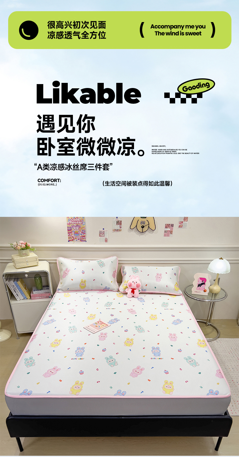 当前位置: 91家纺网 > 商品网购 > 床上用品 > 凉席 > 凉席套件 > 摩妮卡 2025新款小清新碳光冰丝软席床笠款单床笠三件套 小兔欢乐集