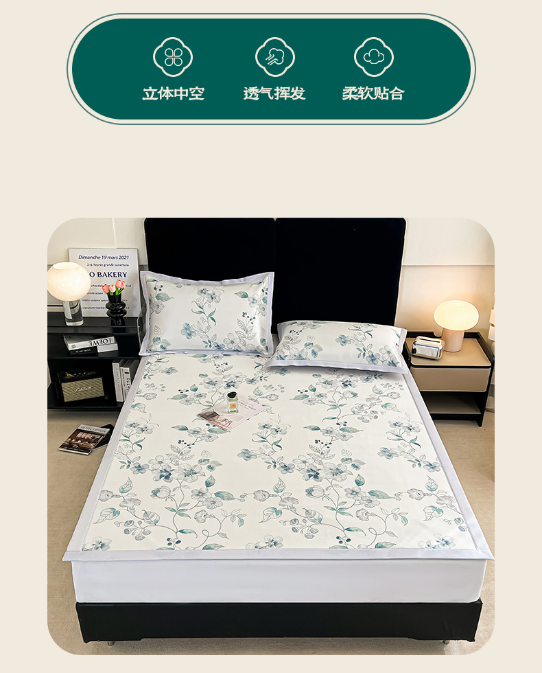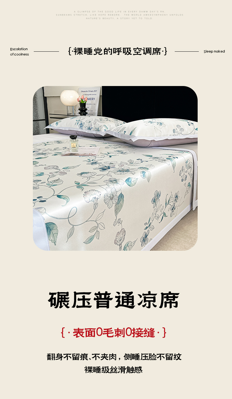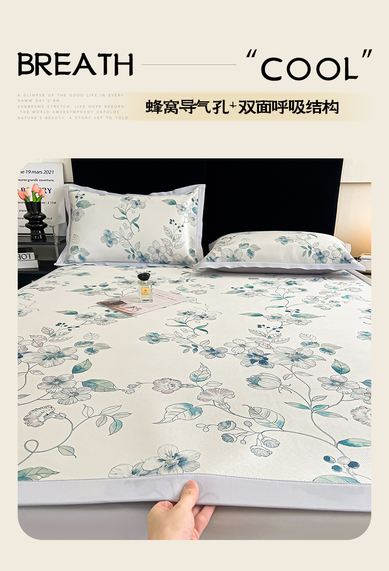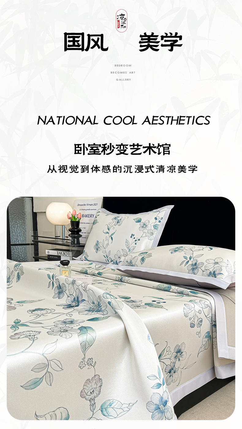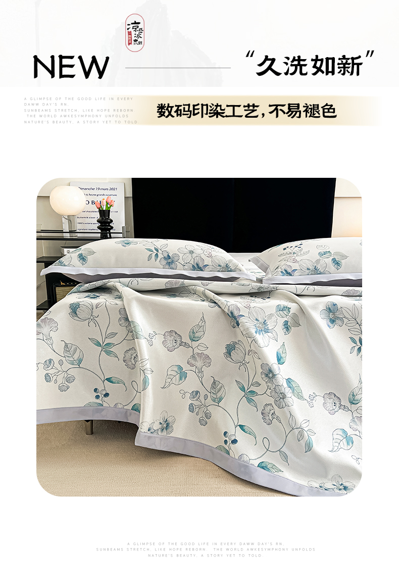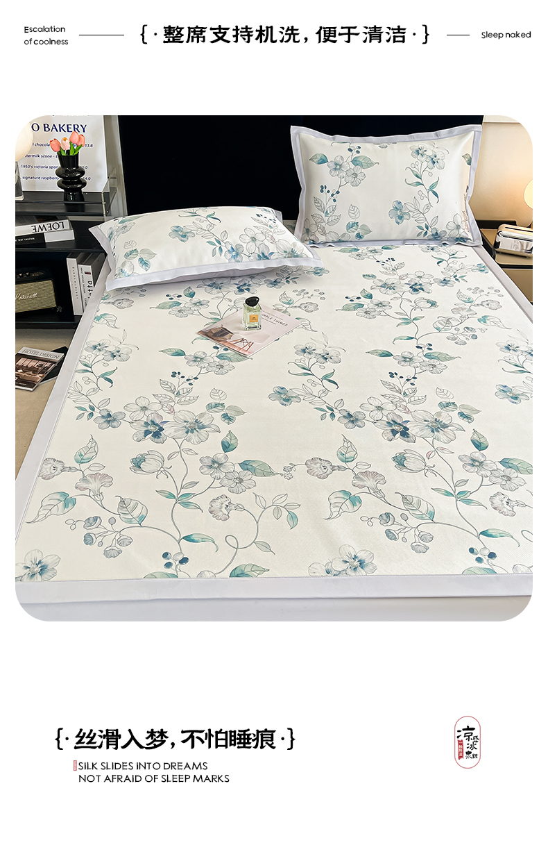 商品名称:倾慕家纺 2025新款冰泉丝水墨风印花包边席子凉席 绮华