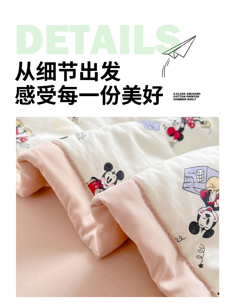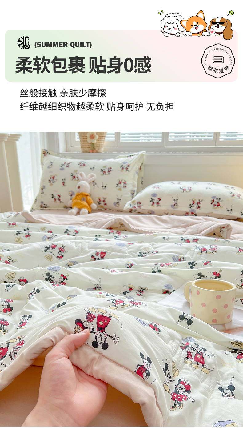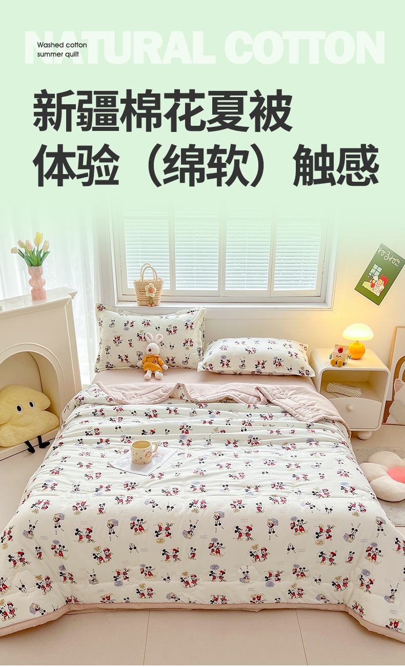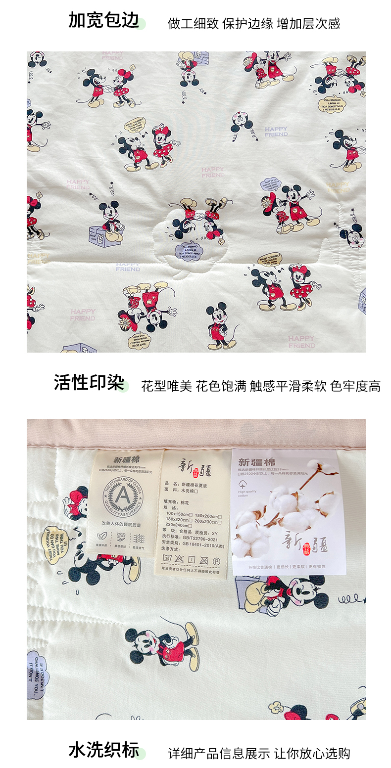 商品名称:西域种棉人·千百笠 2025新款A类新疆棉花夏凉被加宽包边水洗棉卡通印花吸湿透气棉花夏被空调被 凌香 米奇