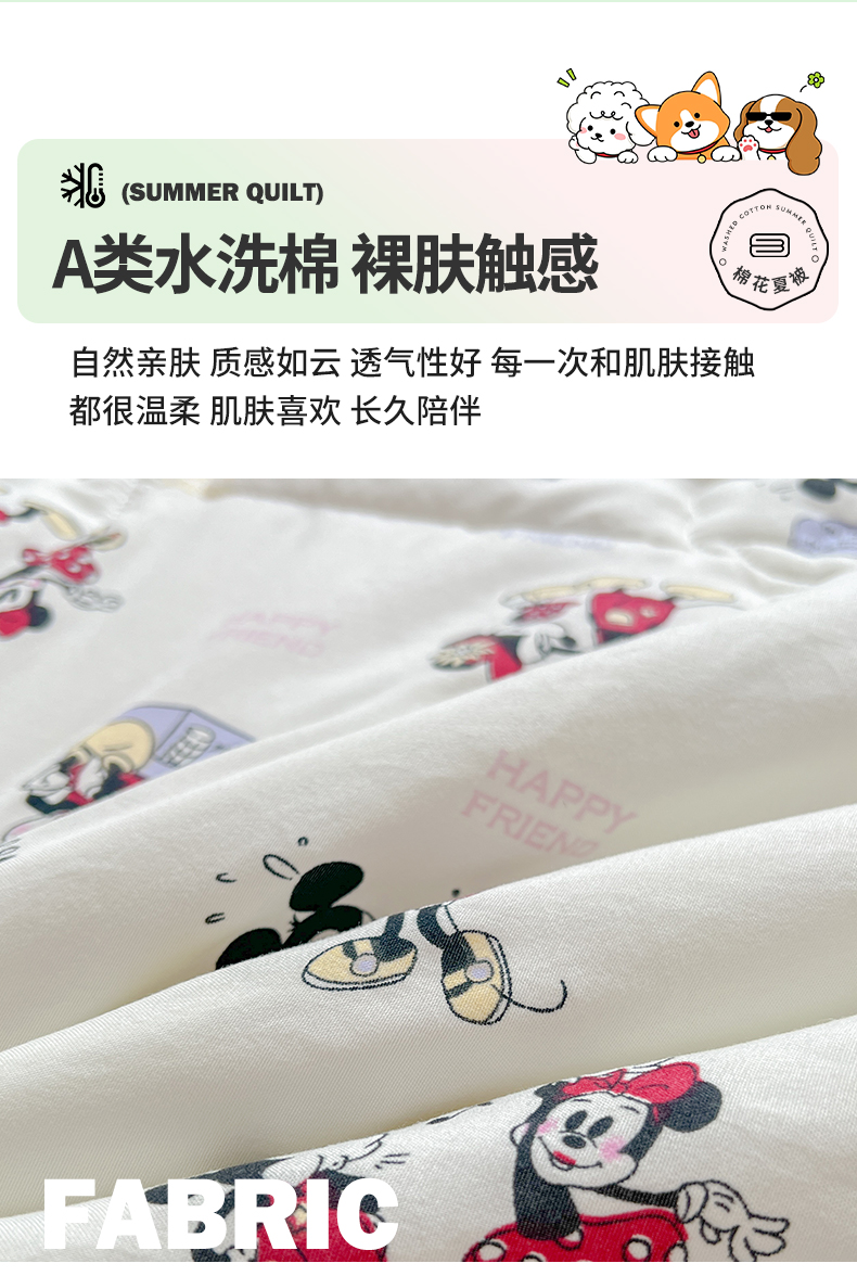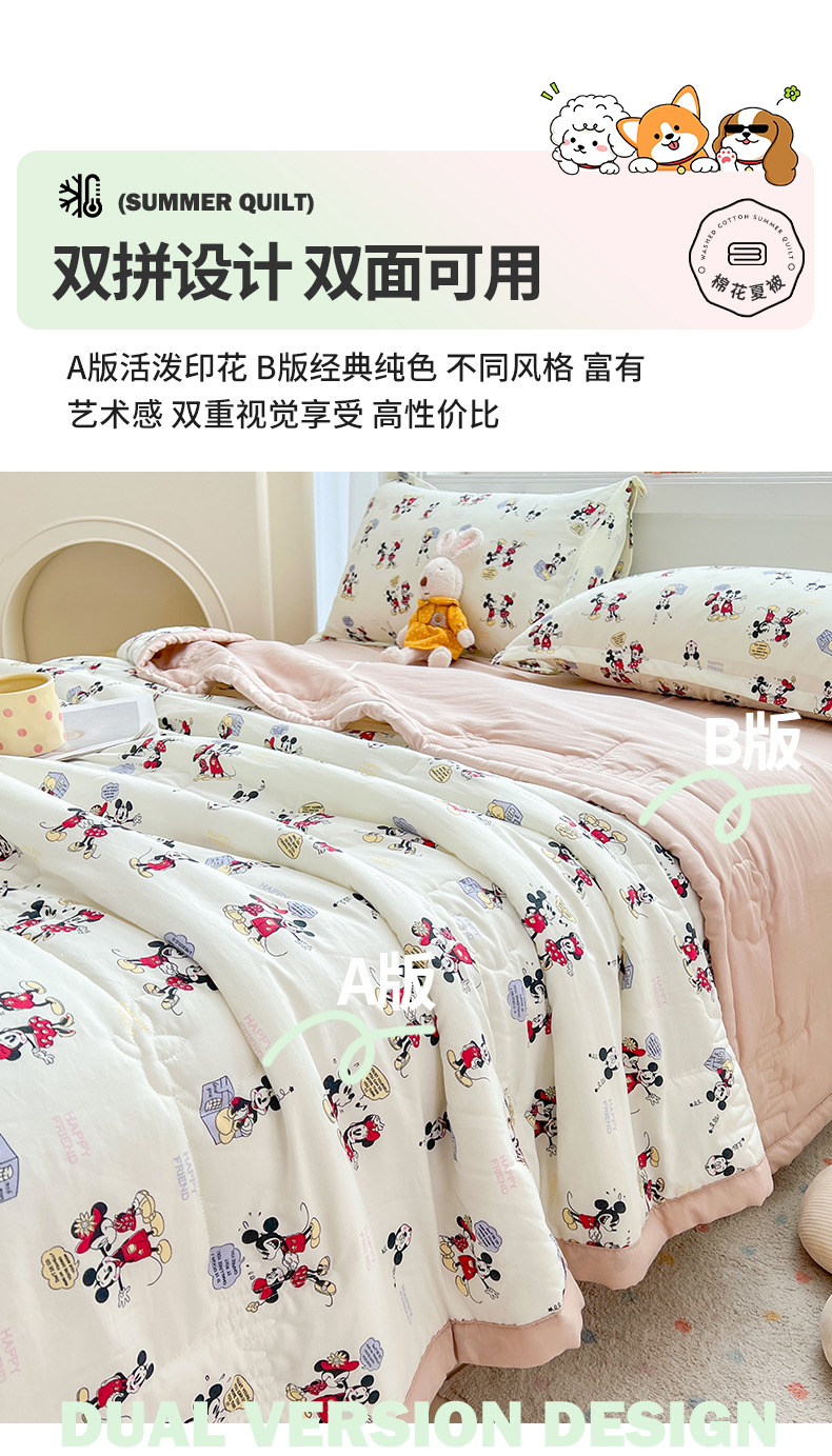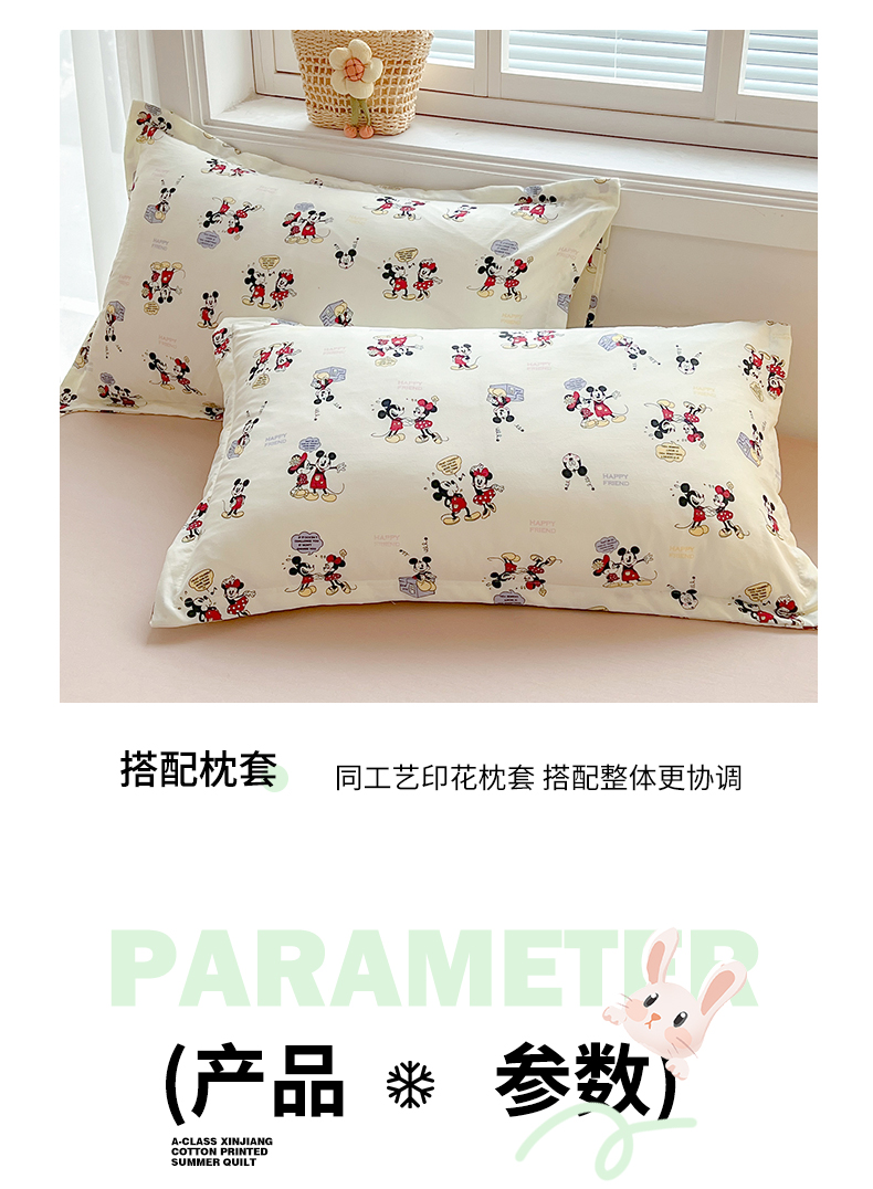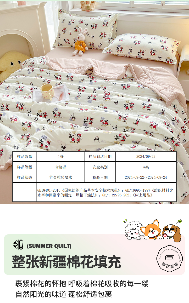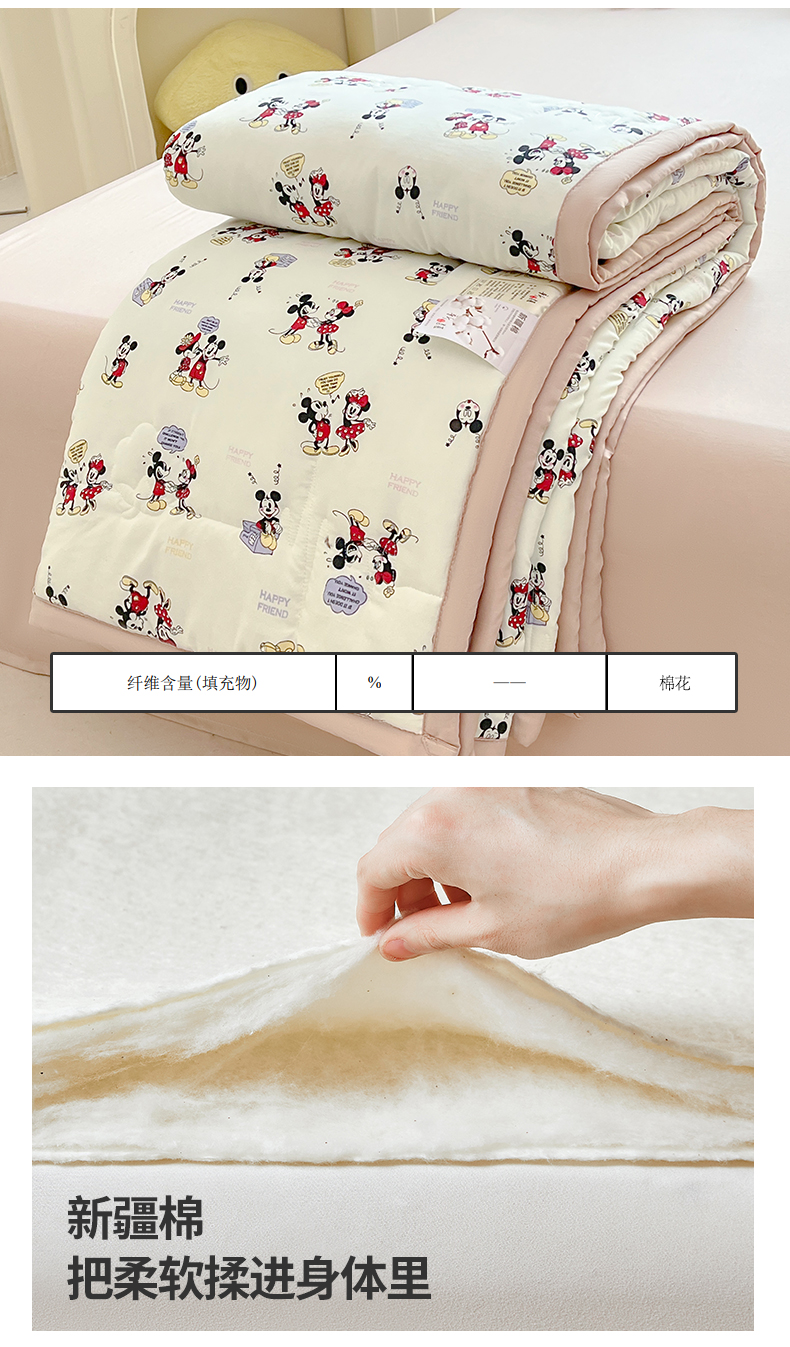 商品名称:西域种棉人·千百笠 2025新款A类新疆棉花夏凉被加宽包边水洗棉卡通印花吸湿透气棉花夏被空调被 凌香 米奇