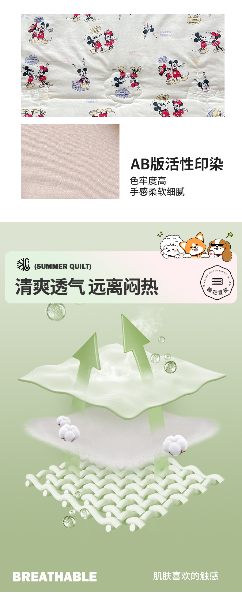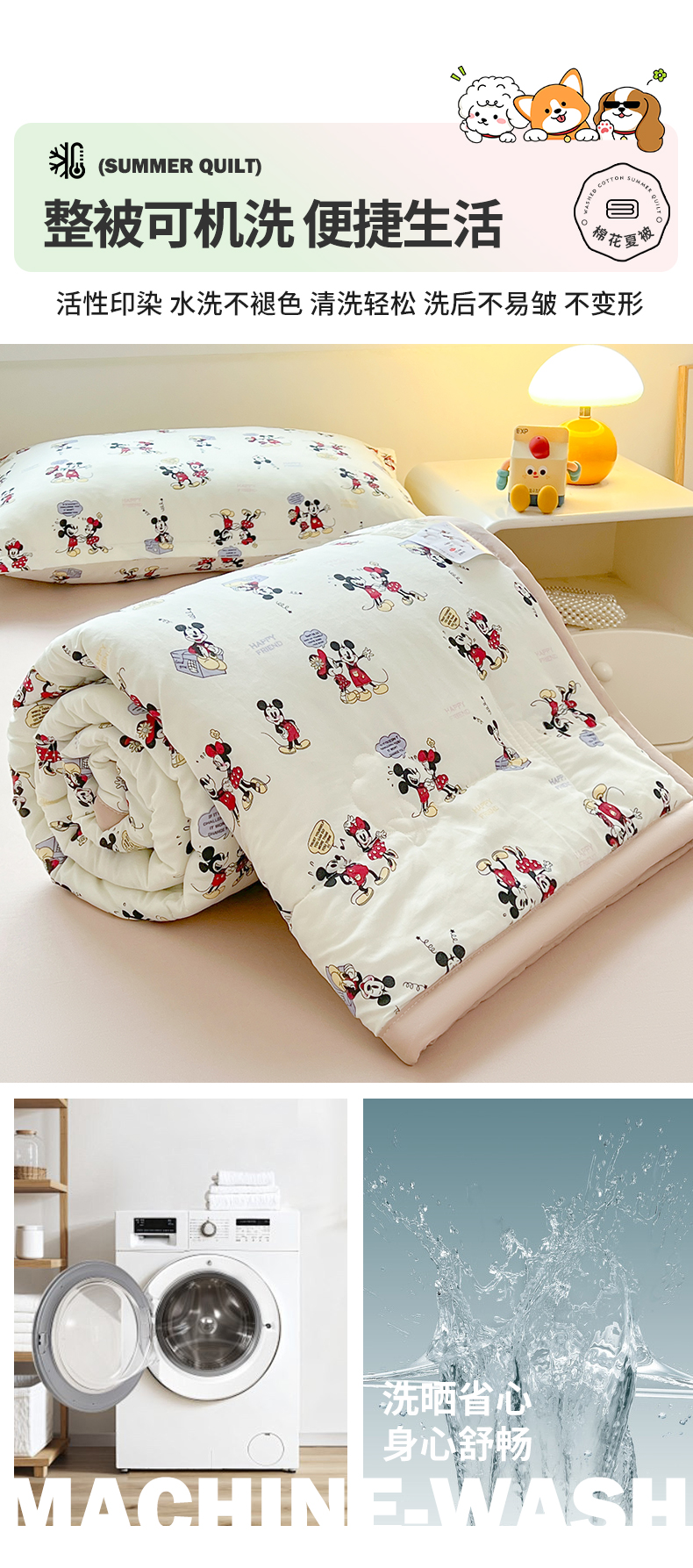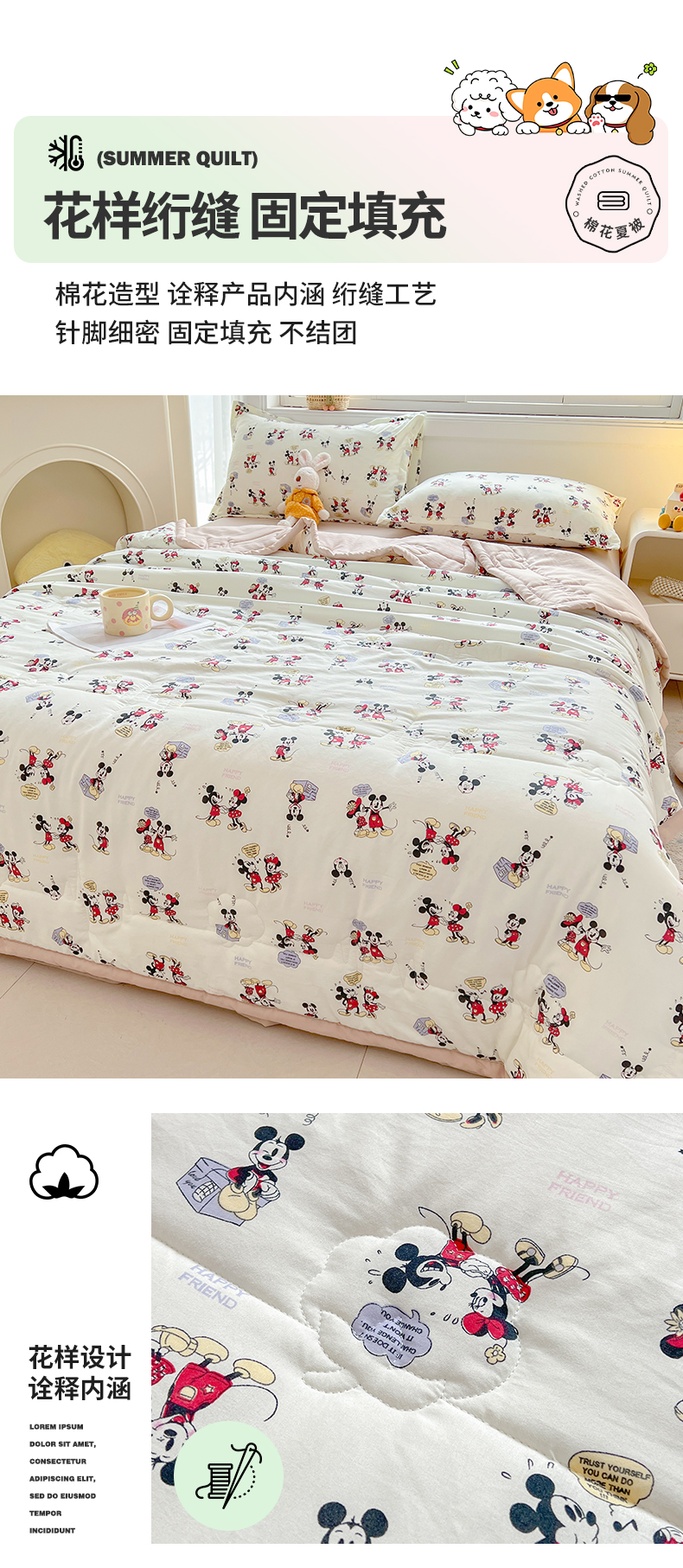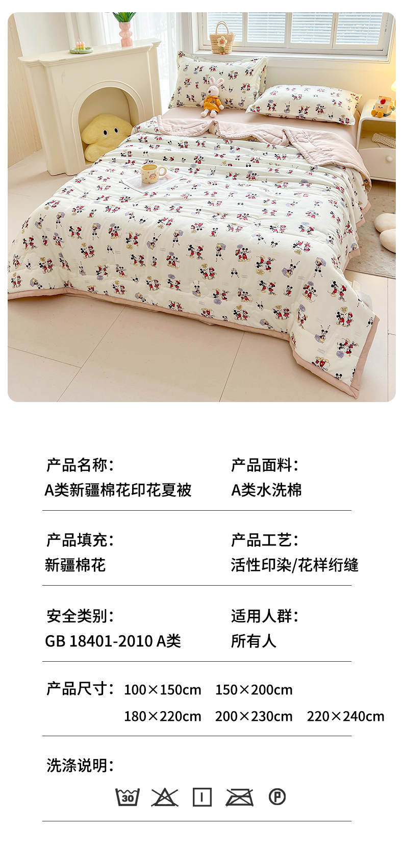 商品名称:西域种棉人·千百笠 2025新款A类新疆棉花夏凉被加宽包边水洗棉卡通印花吸湿透气棉花夏被空调被 凌香 米奇