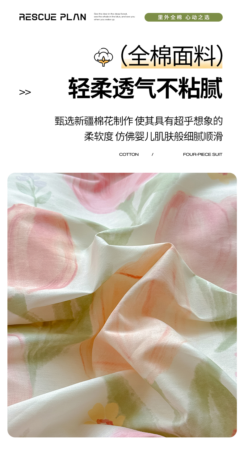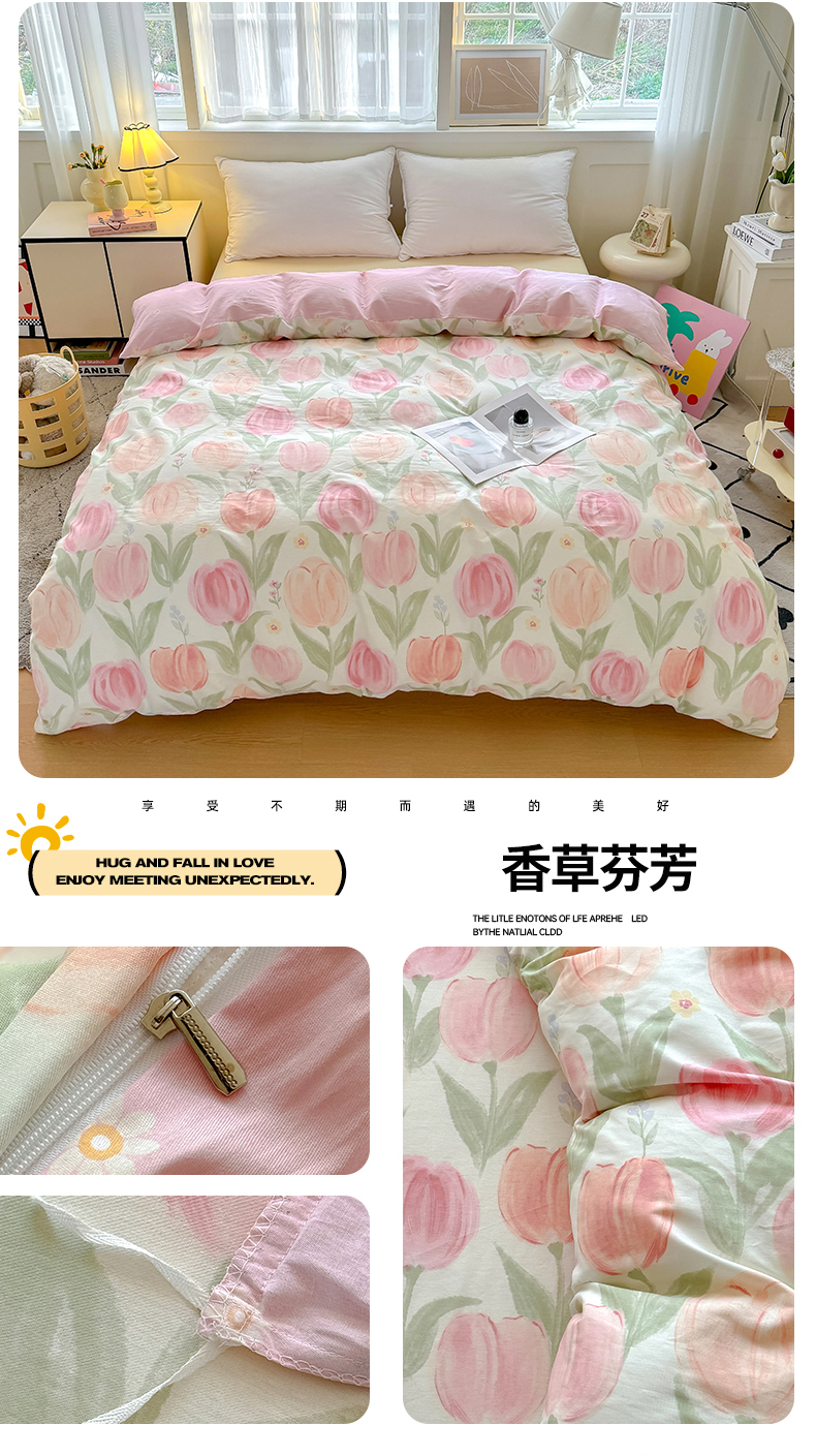 商品名称:红粉佳人家纺 2025春夏新款A类全棉纯棉12868纯棉单被套 香草芬芳