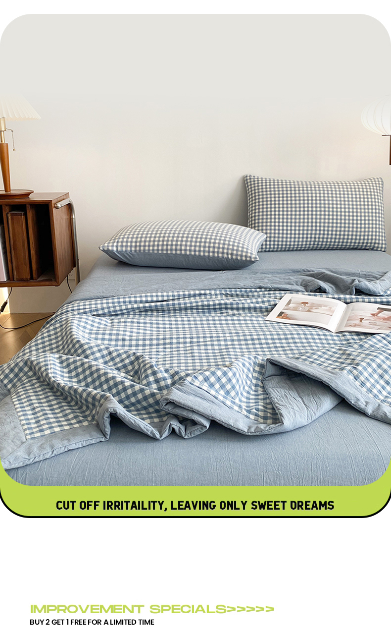 (总)青螺2024全棉水洗棉双面色织100%新疆棉花夏被四件套,宝莉小格,芳华兰,格森 橘,格森 兰,凯瑟琳 粉,洛卡 灰,沐夏,乔治 兰,星空粉,星空米